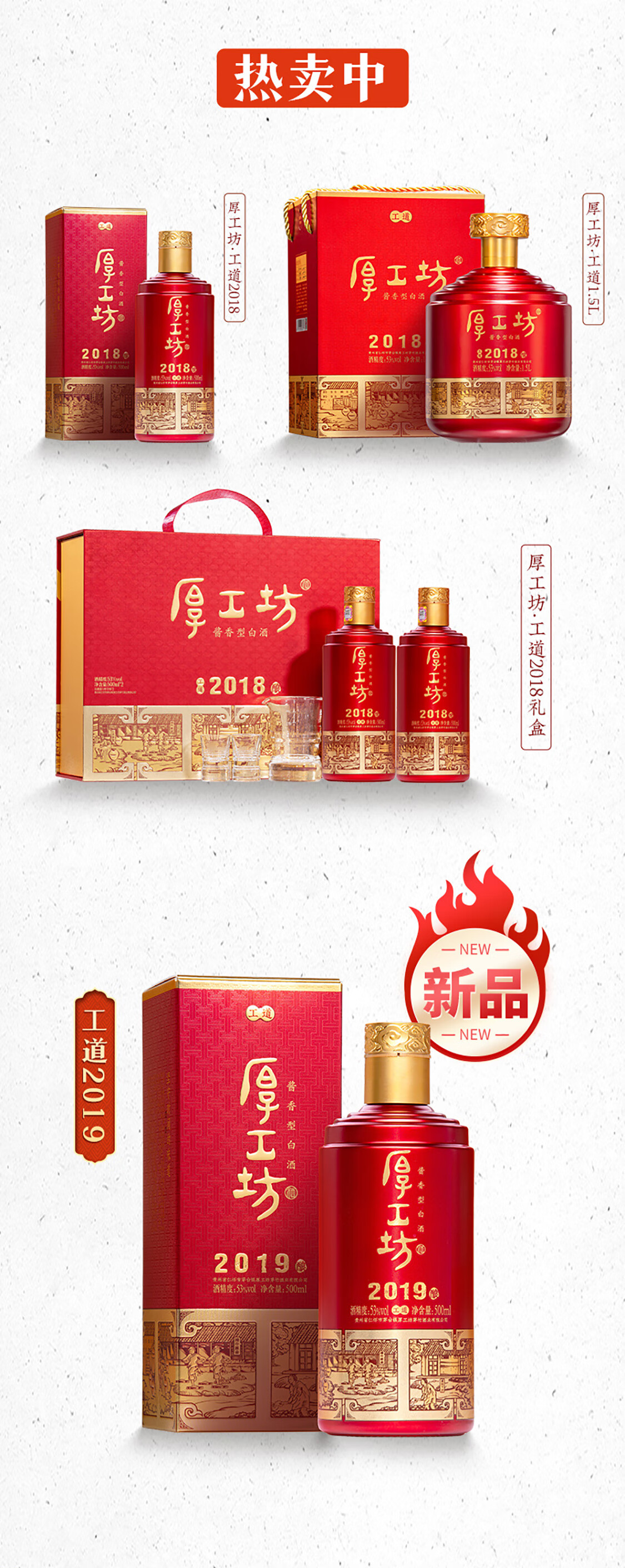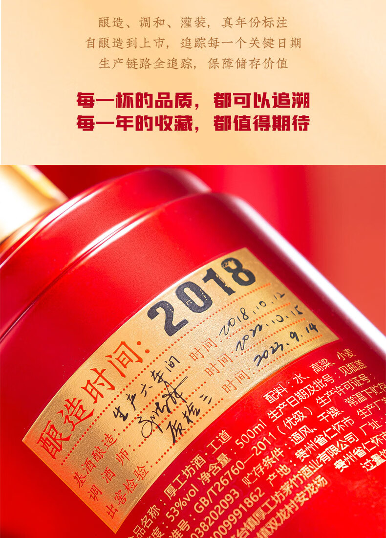 厚工坊【中秋送礼】工道2019 酱香型53度白酒 贵州大曲纯粮食坤沙白酒 53度 500mL 1瓶 (工道2019)*1瓶