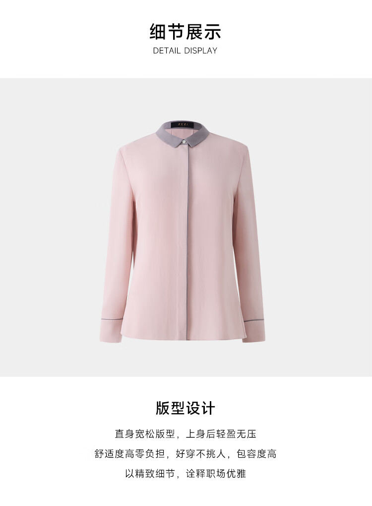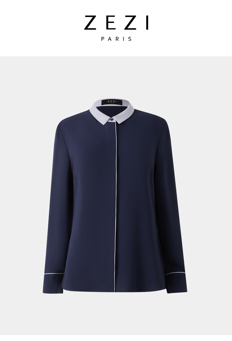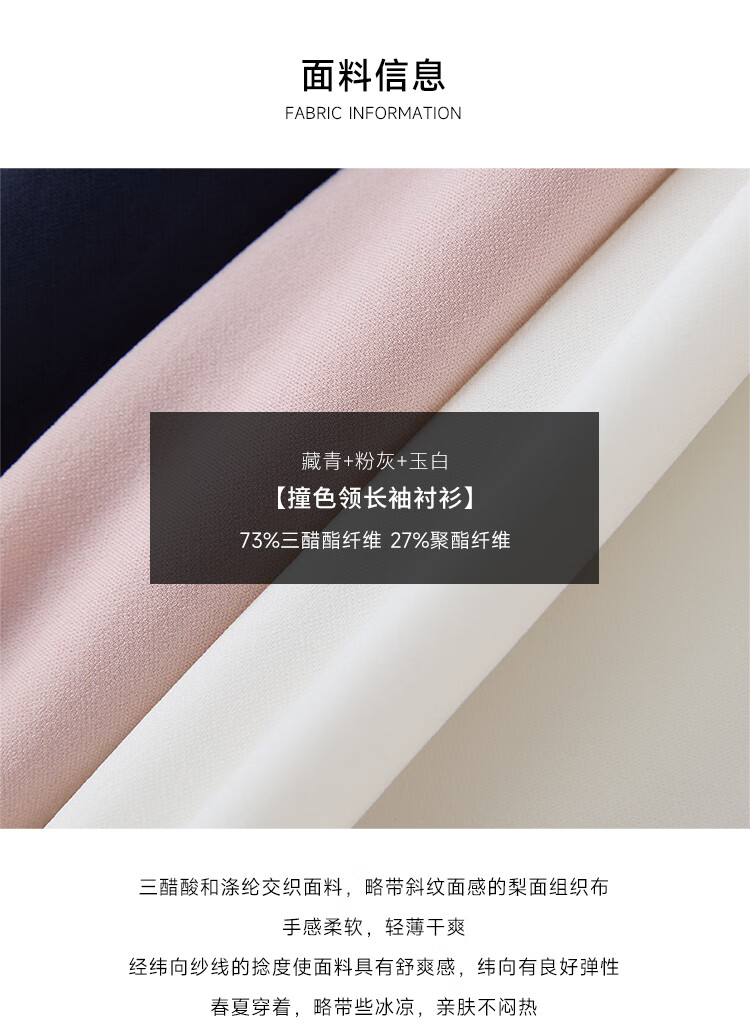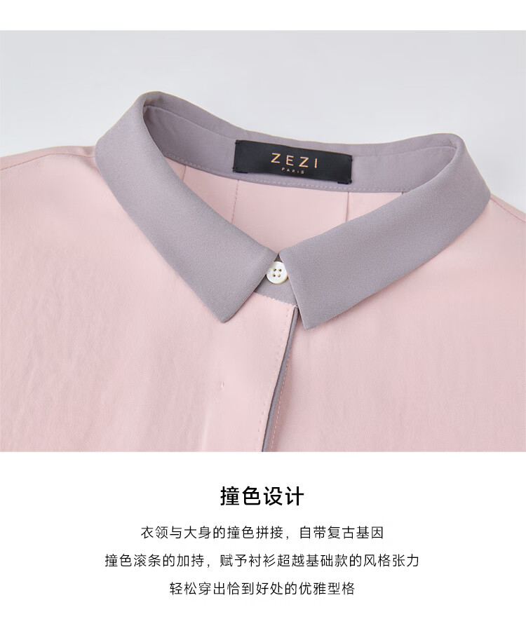 ZEZI三醋酯撞色领长袖衬衫女宽松显瘦衬衣休闲百搭通勤上衣2025秋新 玉白 L (120-130斤)