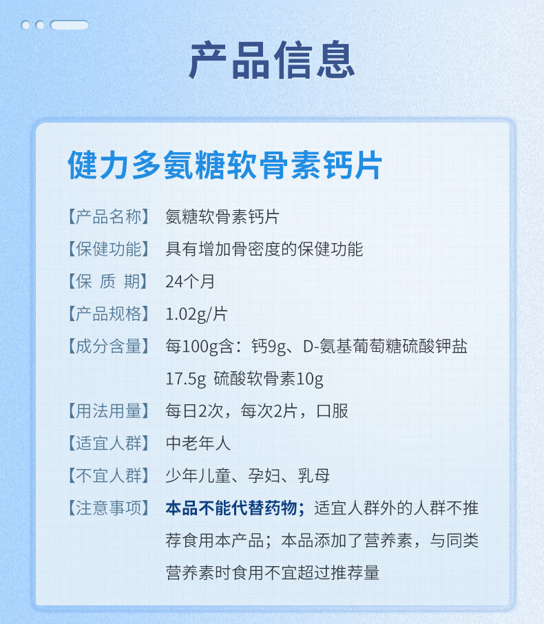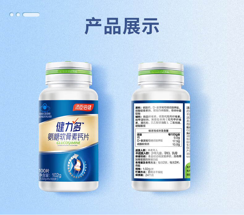 汤臣倍健健力多氨糖软骨素钙片中老年男女补氨糖增加骨密度 氨糖100粒