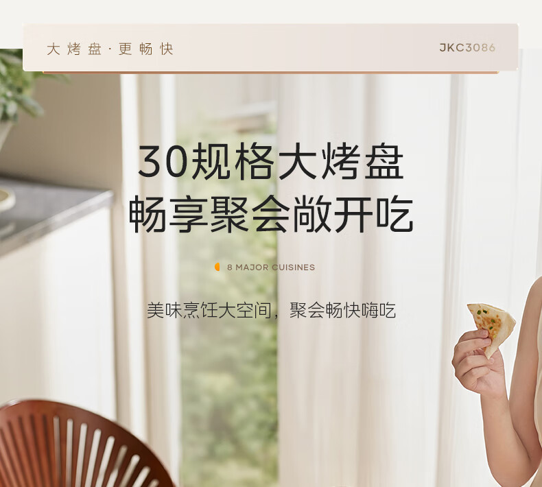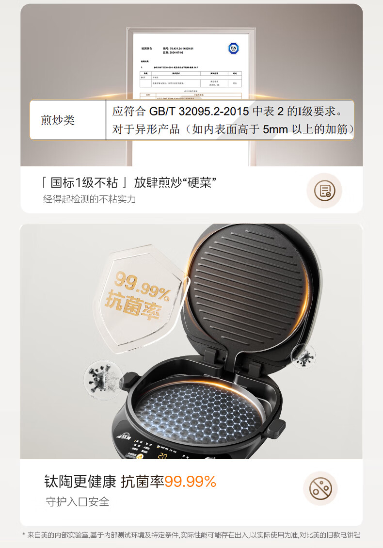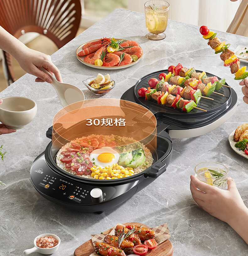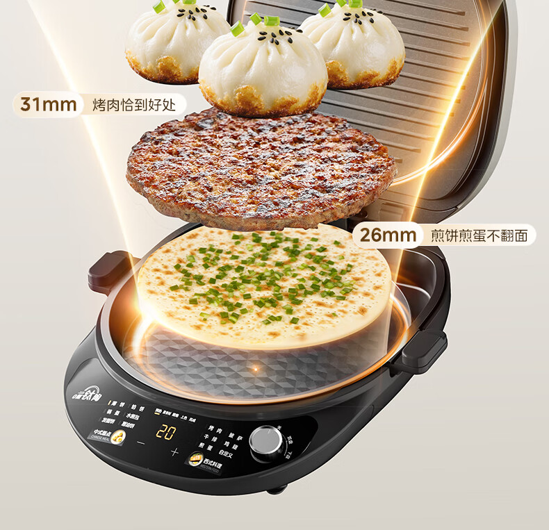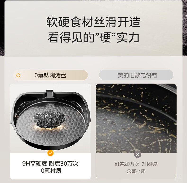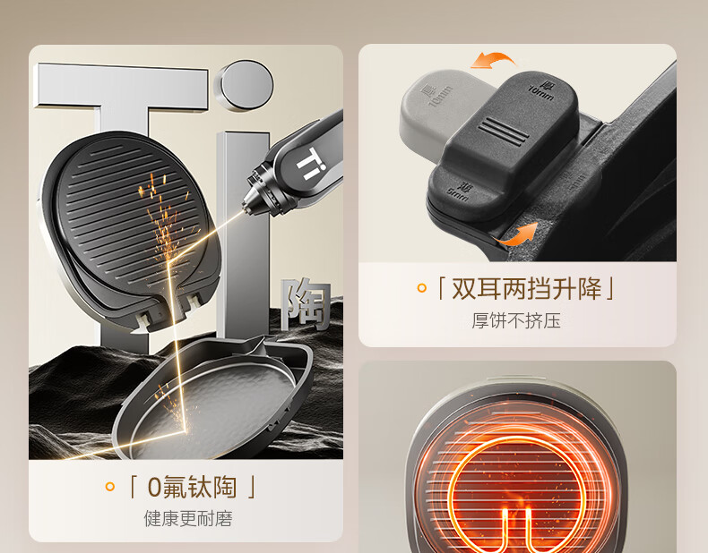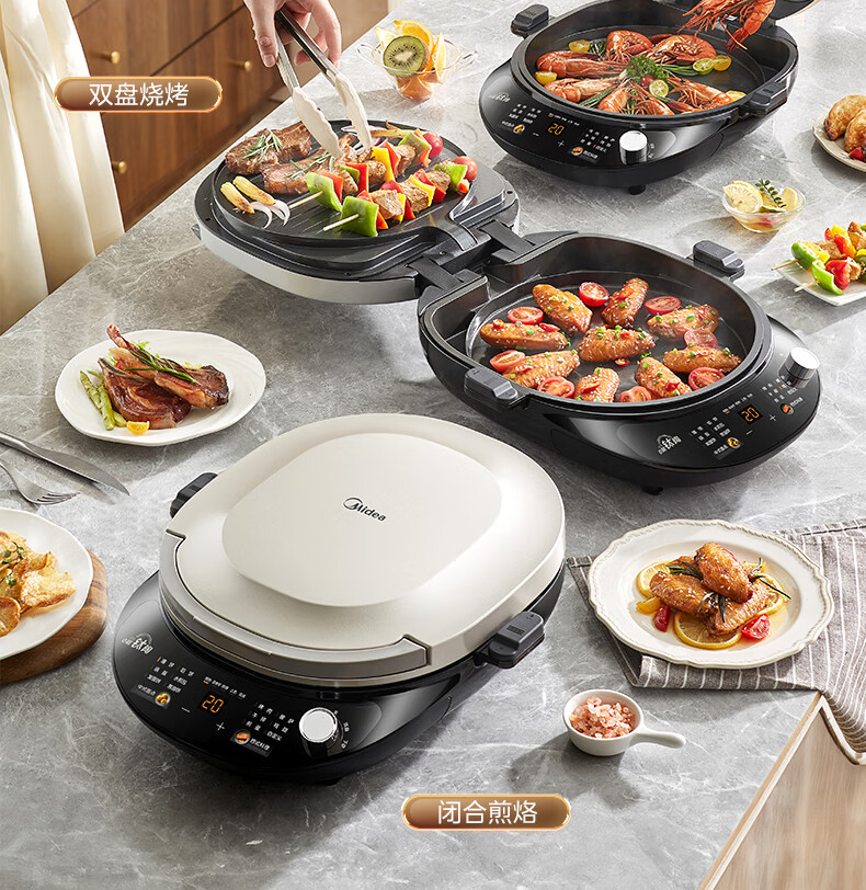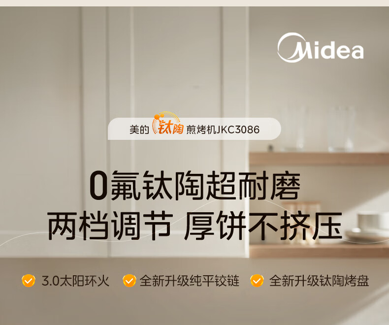 美的(Midea)电饼档 双面加热烙饼锅 早餐机 加大加深可拆三明治煎烤煎饼薄饼机0氟钛陶匀火烤盘 【钛陶瓷升级】MC-JKC3086