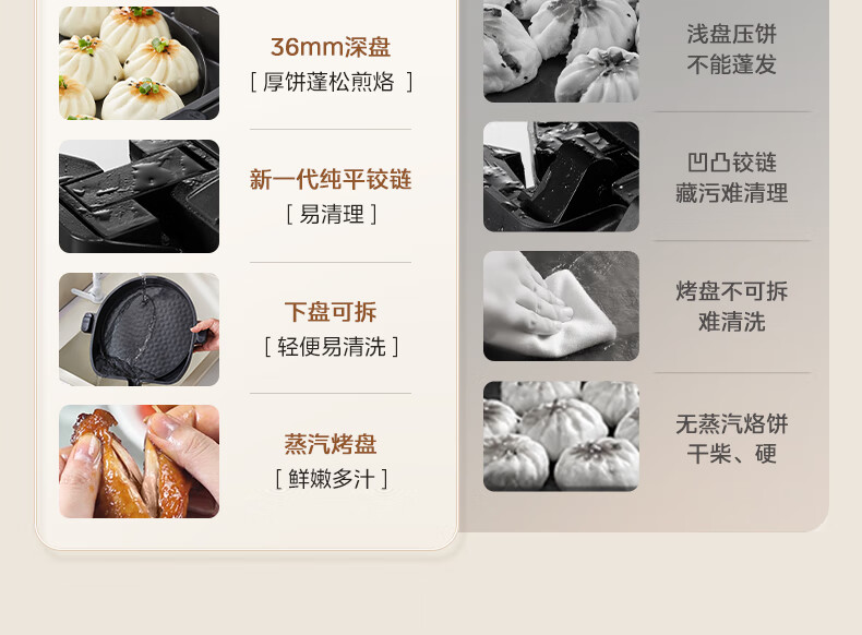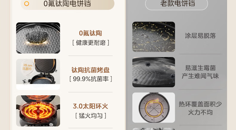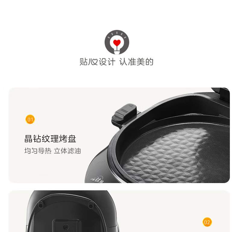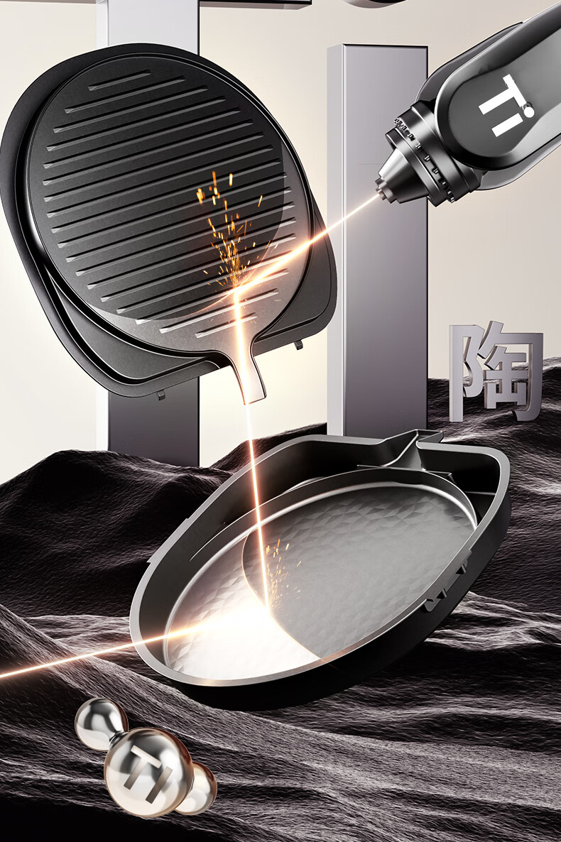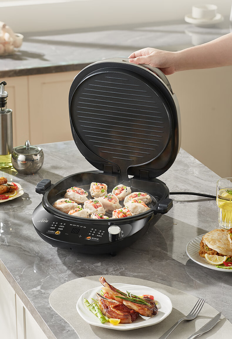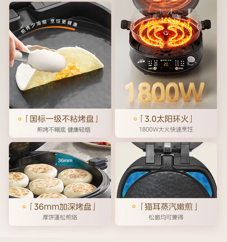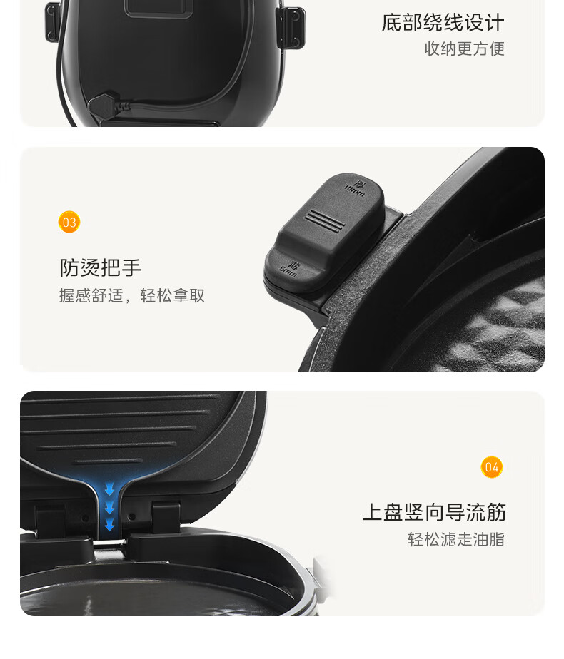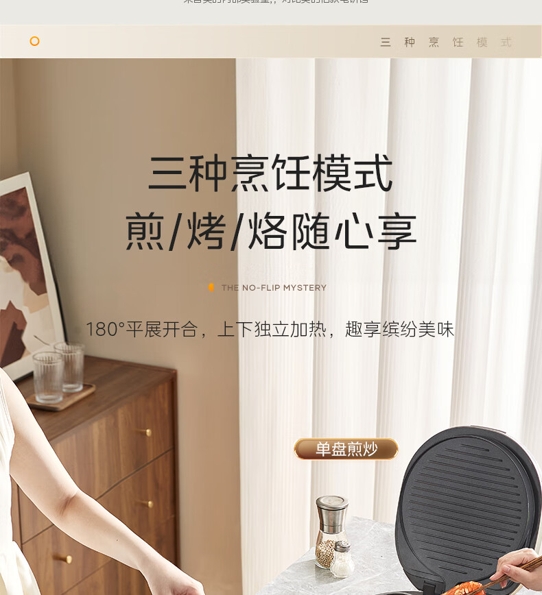 美的(Midea)电饼档 双面加热烙饼锅 早餐机 加大加深可拆三明治煎烤煎饼薄饼机0氟钛陶匀火烤盘 【钛陶瓷升级】MC-JKC3086
