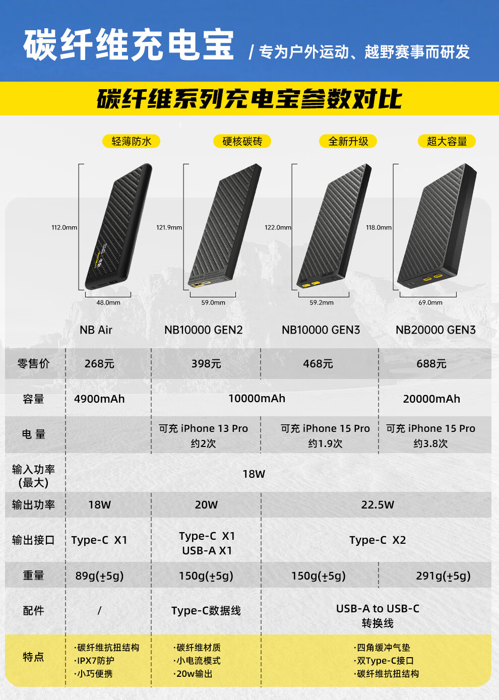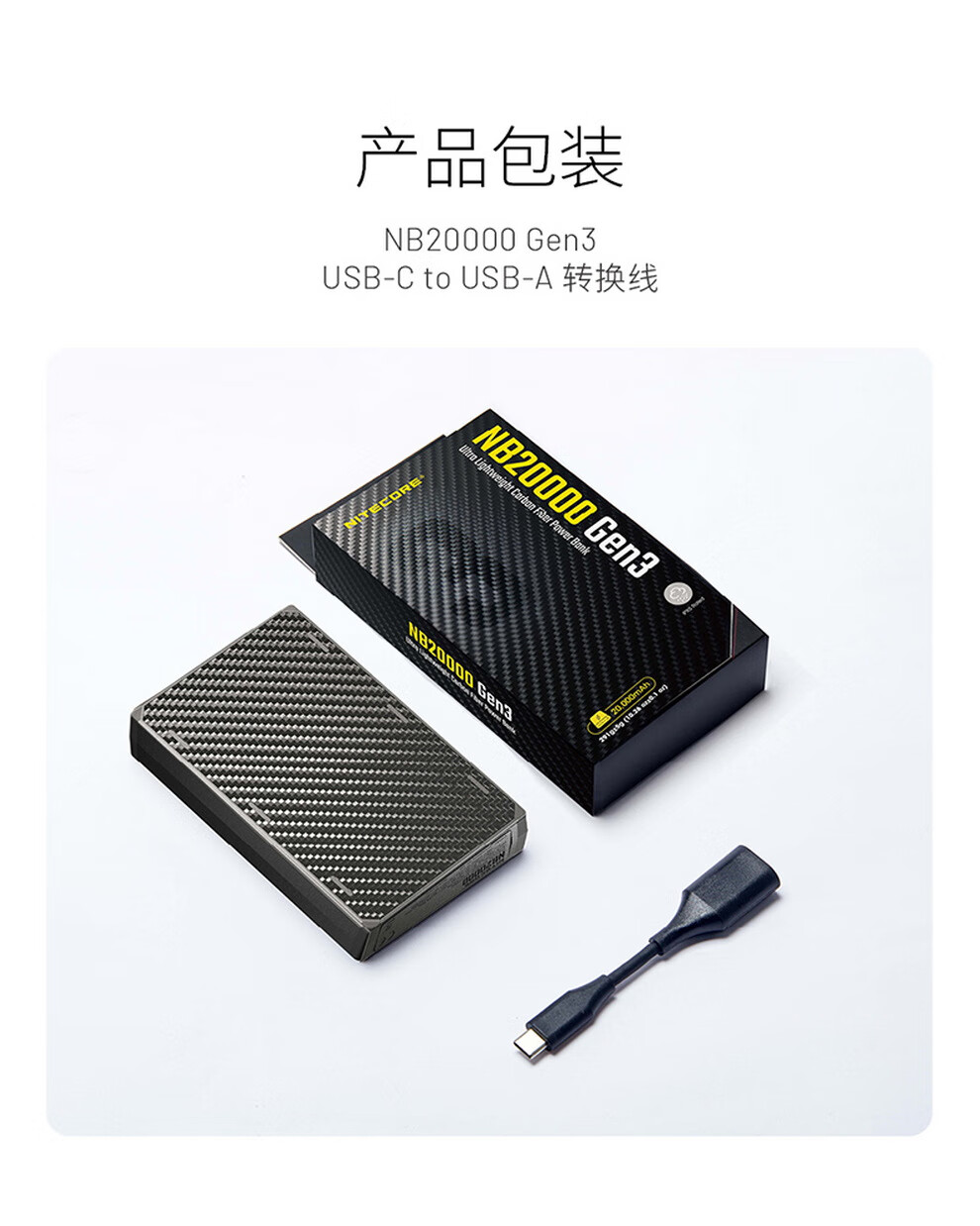 奈特科尔(NITECORE)新3C认证NB20000 GEN3碳纤维充电宝可上飞机户外轻薄轻量化越野跑 NB20000 GEN3第三代