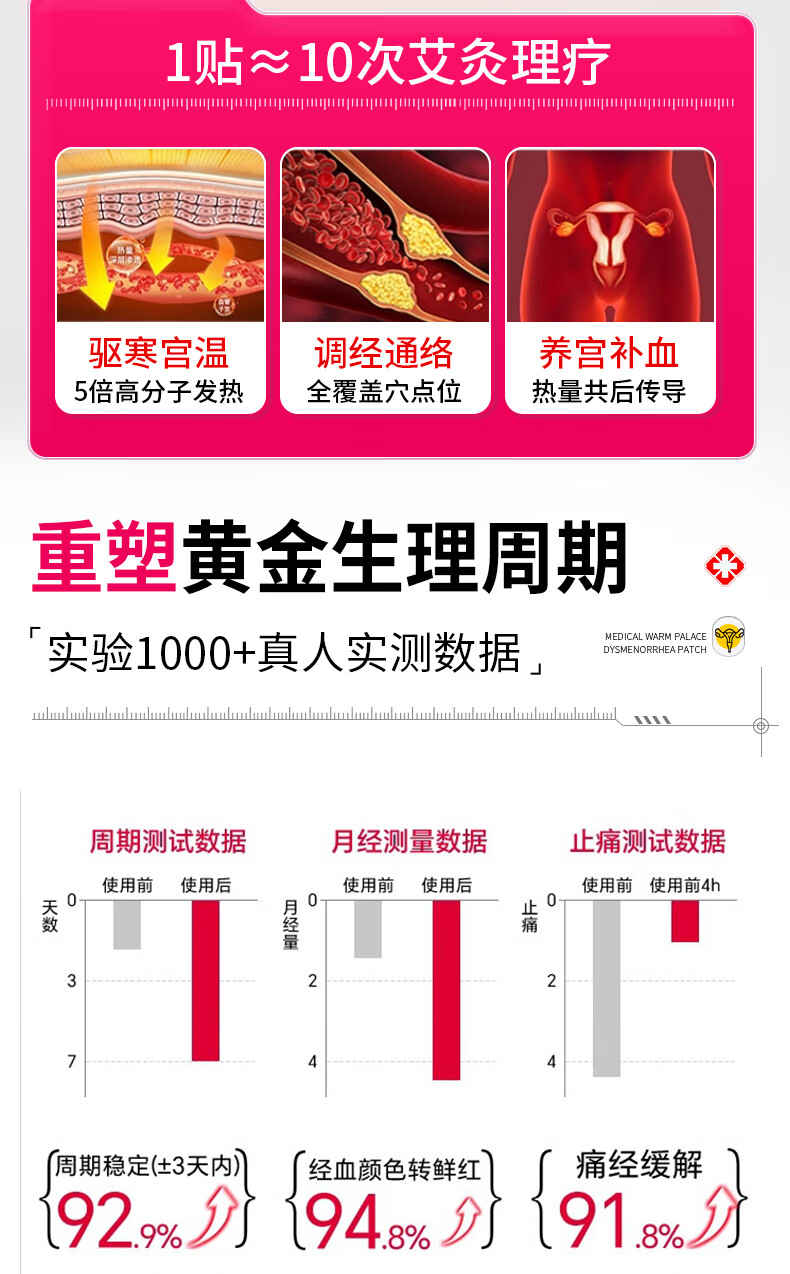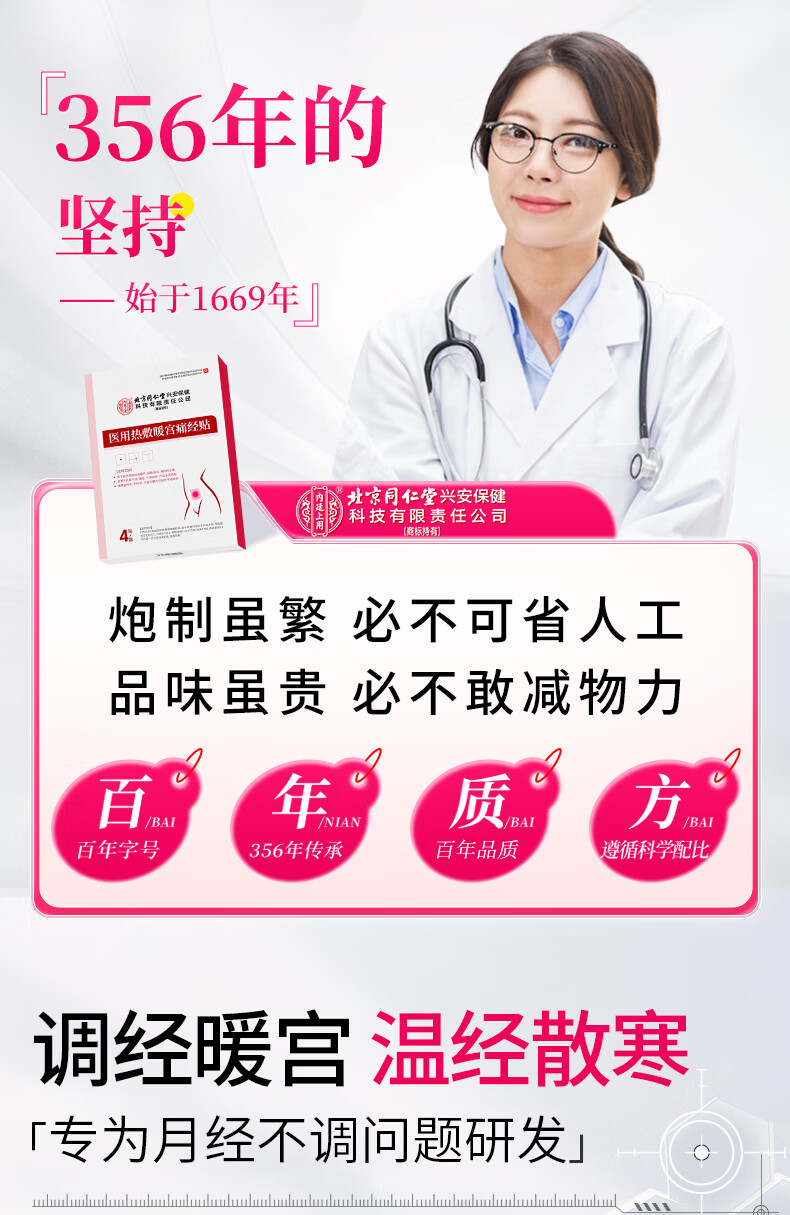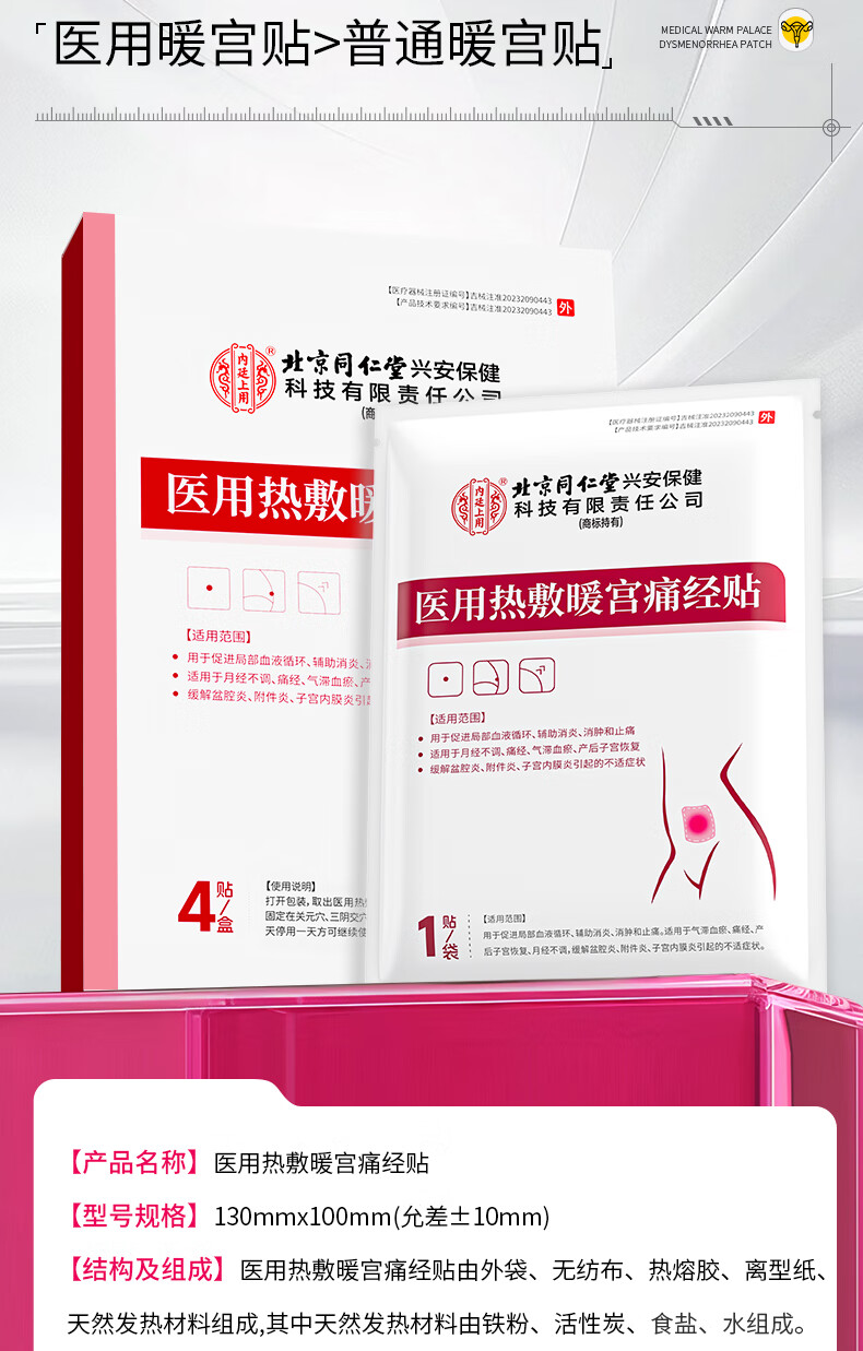 内廷上用北京同仁堂医用热敷暖宫痛经贴月经不调体质虚寒调经暖宫贴 体验装-1盒装【4贴/盒】