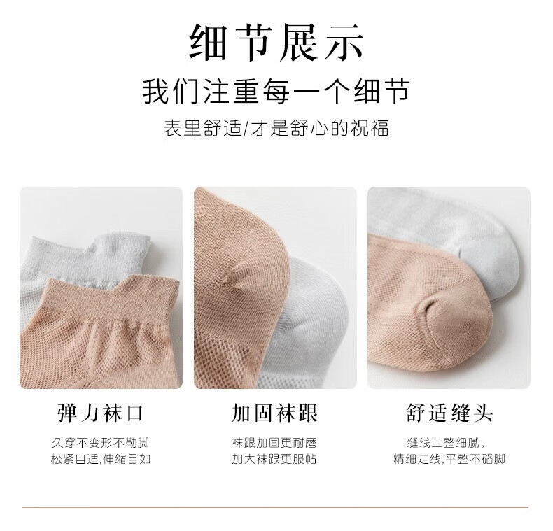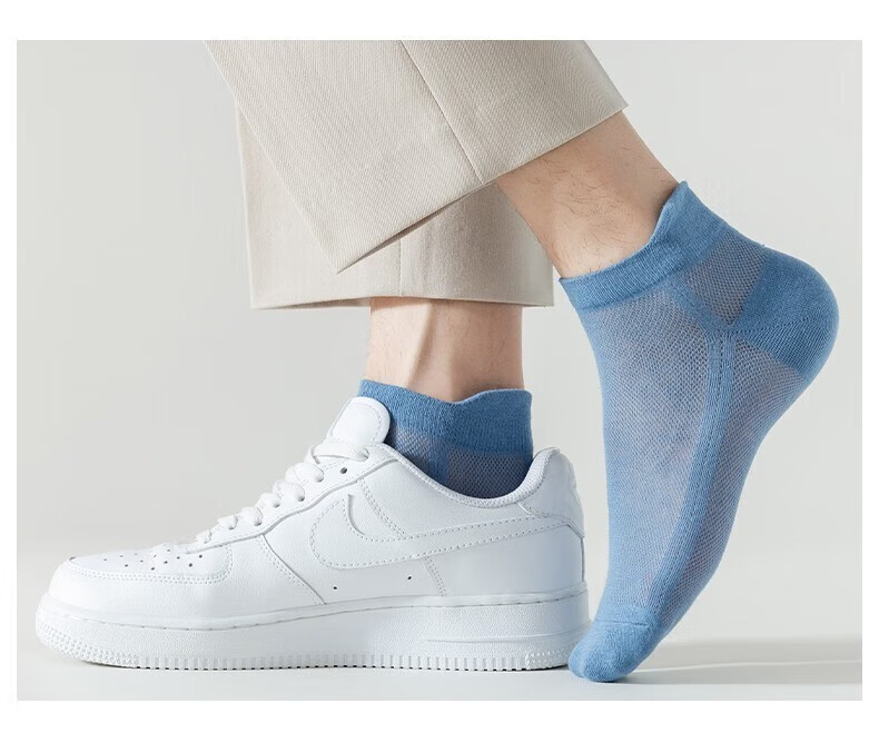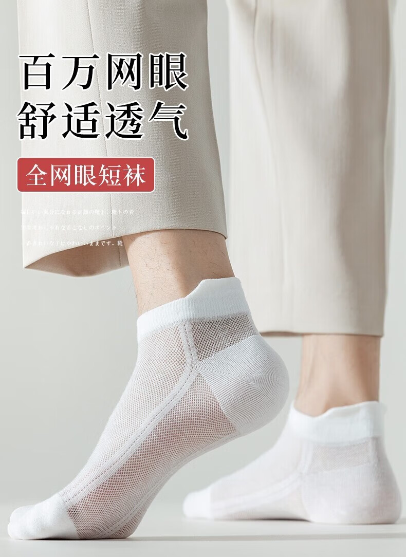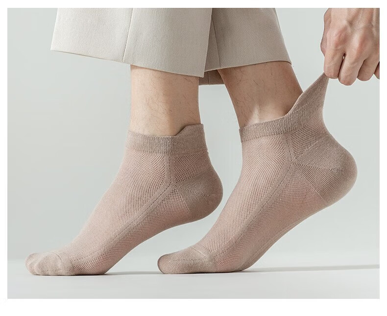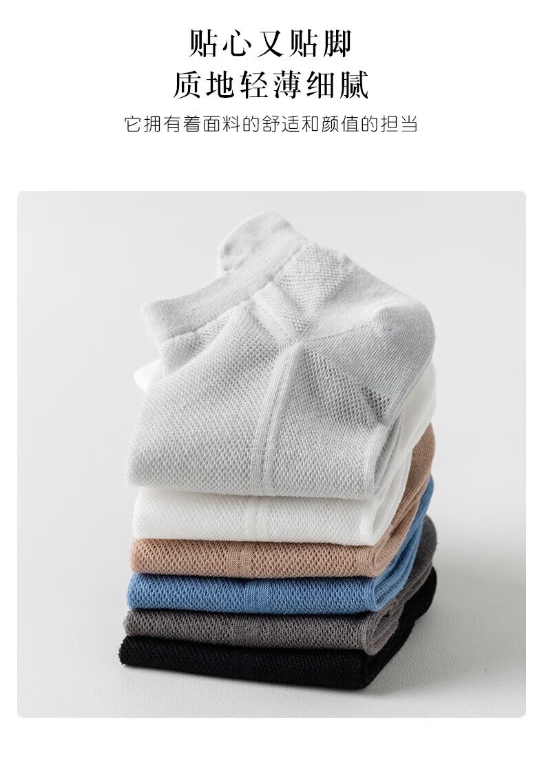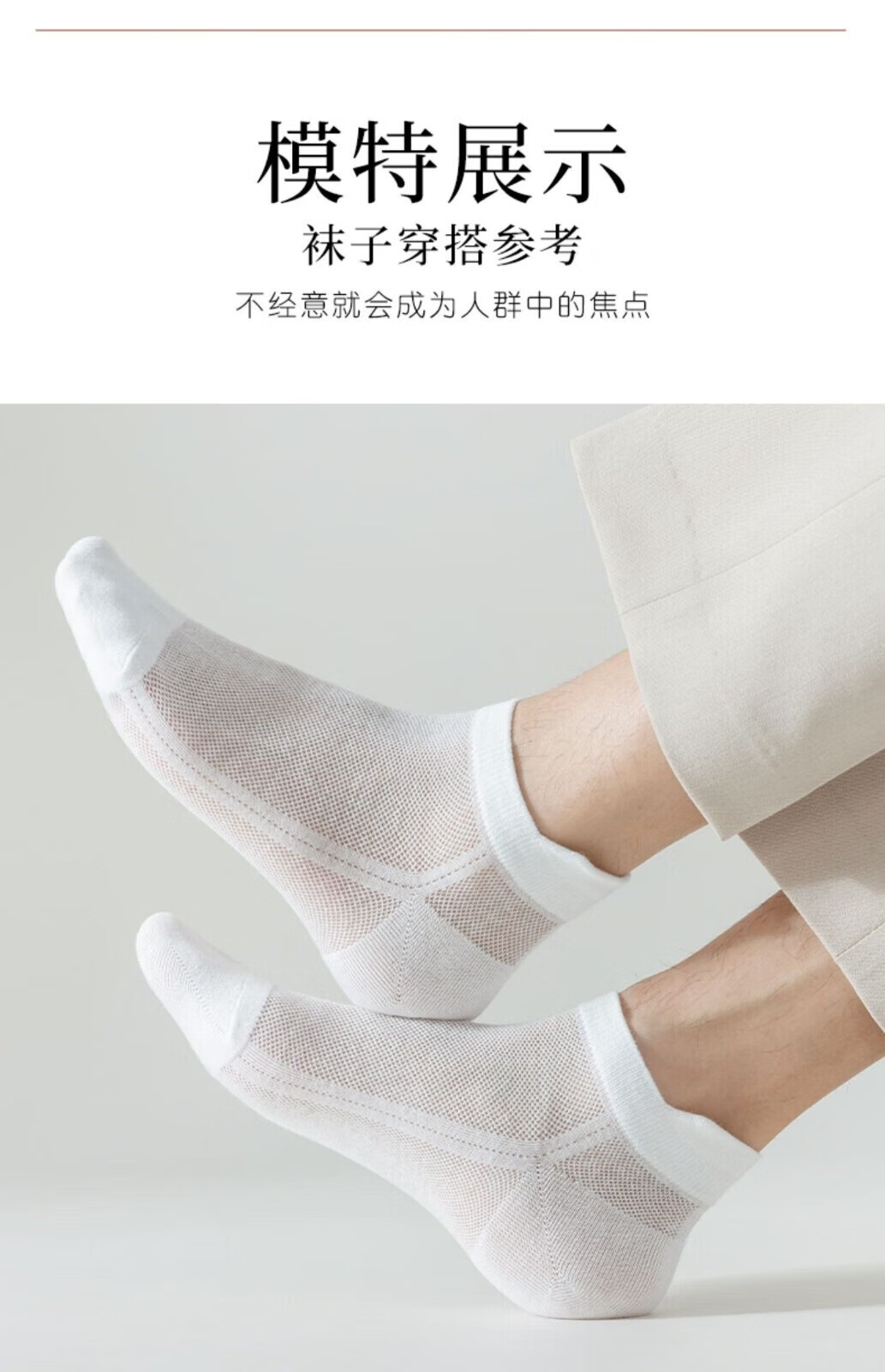 雅鹿5/10双袜子男士短袜夏天纯色低帮夏季薄款运动透气浅口船袜 男提耳网眼短袜10双 均码