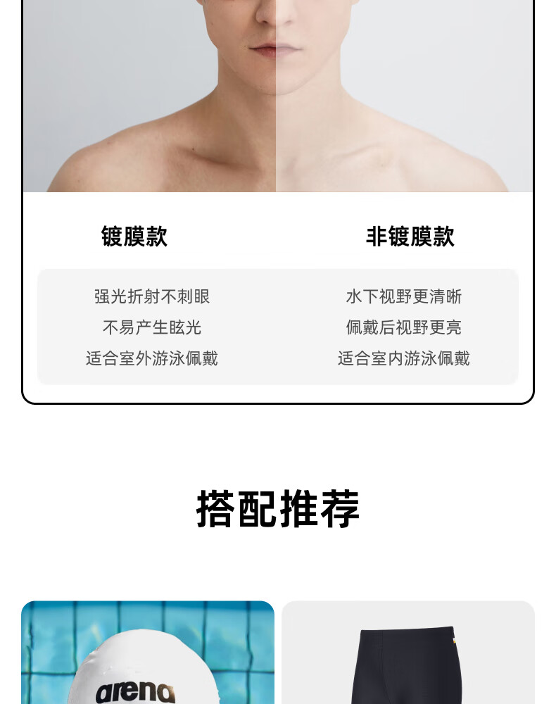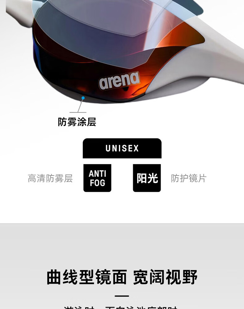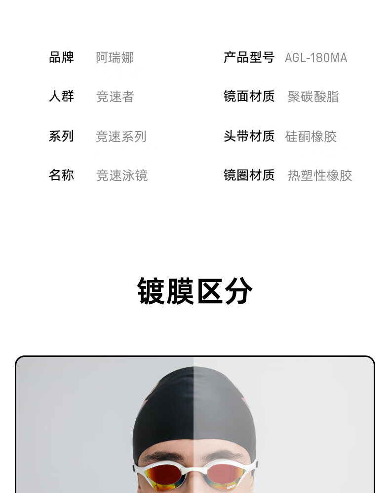 阿瑞娜(arena)进口泳镜眼镜蛇防水防雾高清竞技镀膜游泳眼镜比赛训练专业 白色镀膜进口专业(180MA经典款)