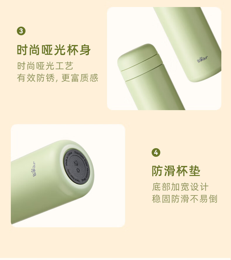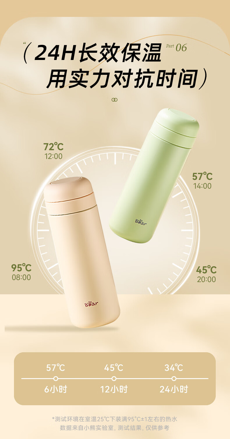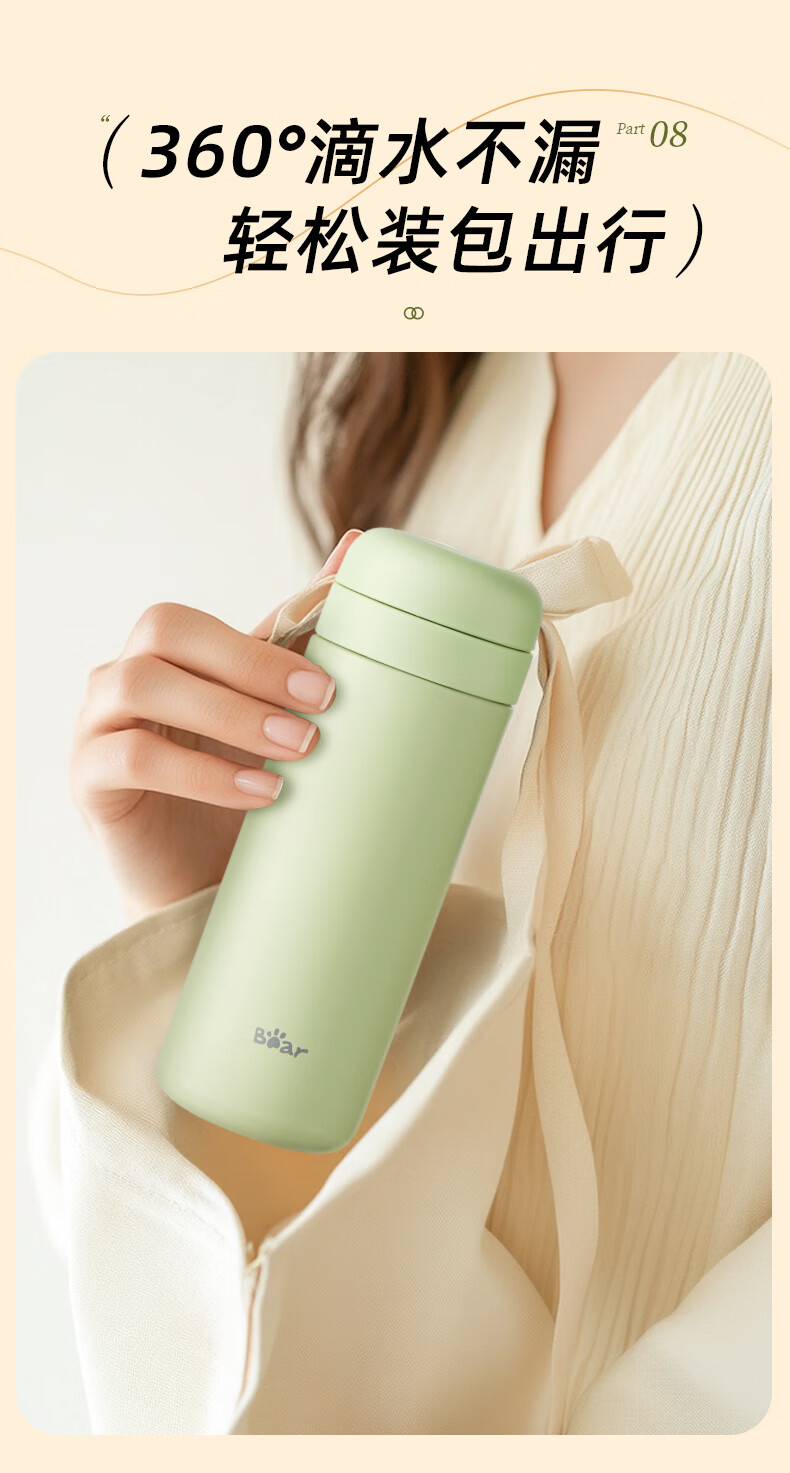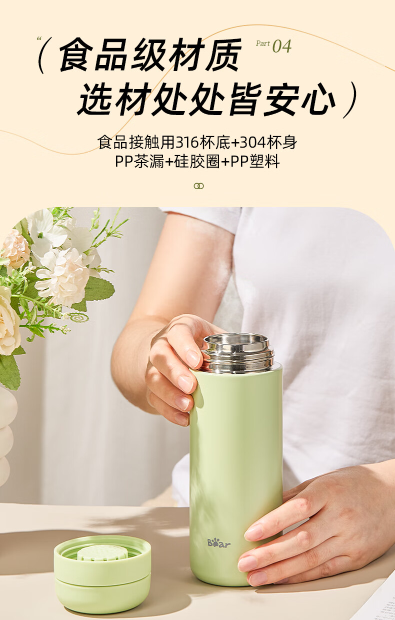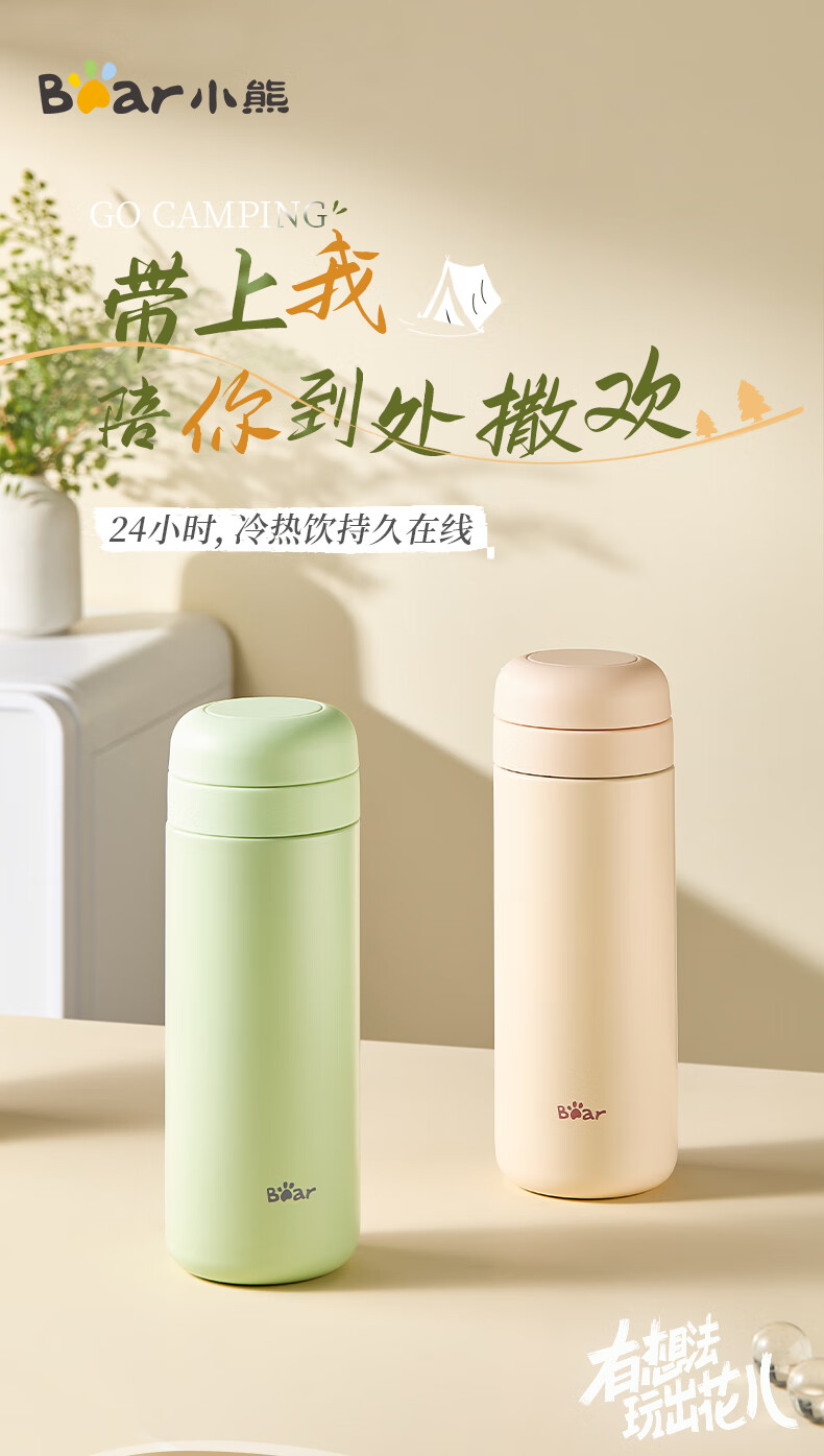 小熊(Bear)保温杯水杯男士女儿童咖啡316不锈钢长效保温保冷24H车载生日礼物 CX-JB060-P02绿色 480ml