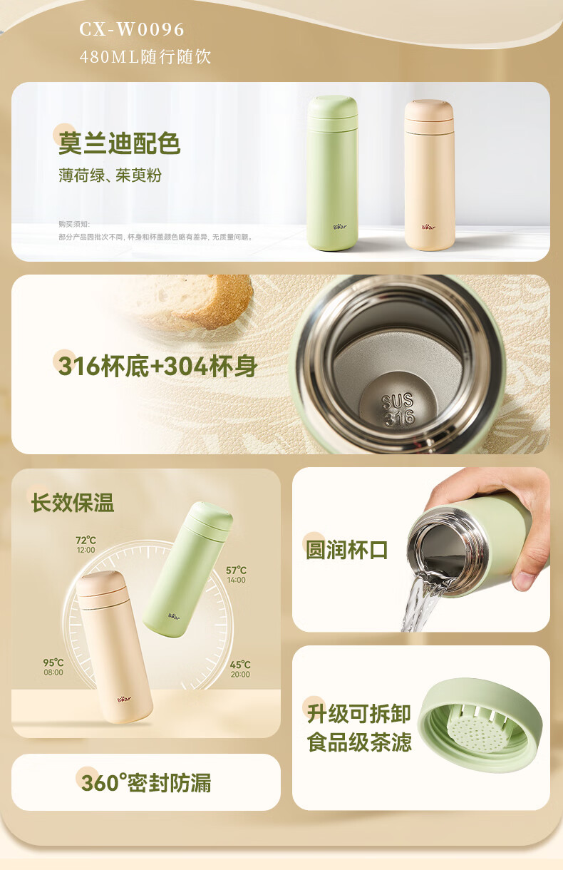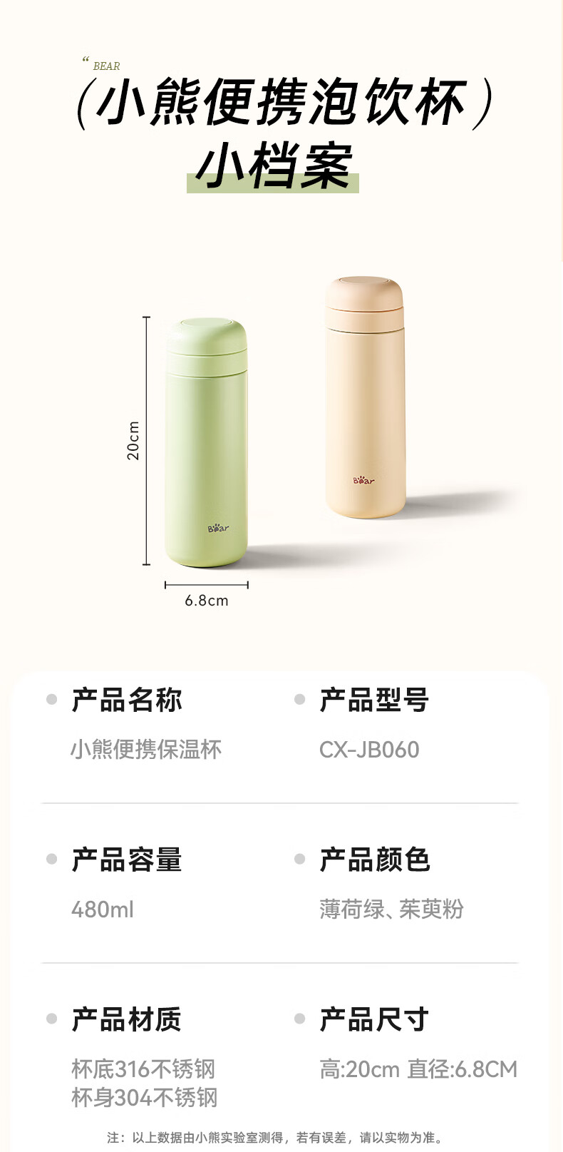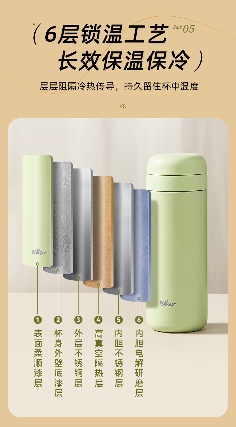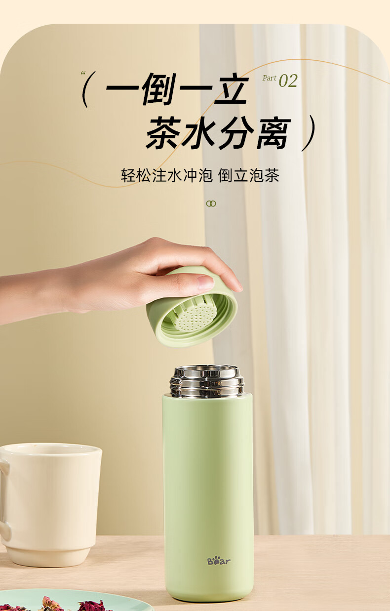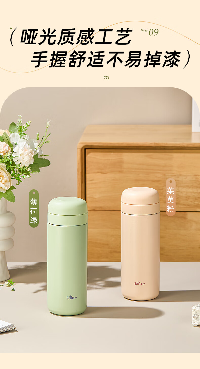 小熊(Bear)保温杯水杯男士女儿童咖啡316不锈钢长效保温保冷24H车载生日礼物 CX-JB060-P02绿色 480ml