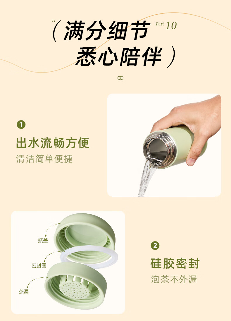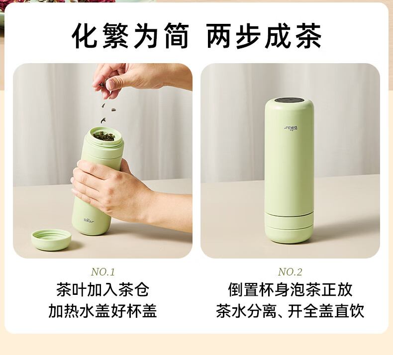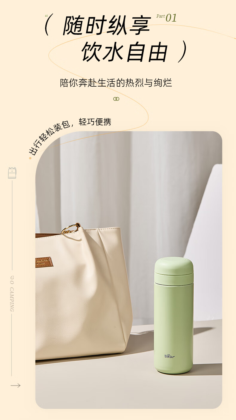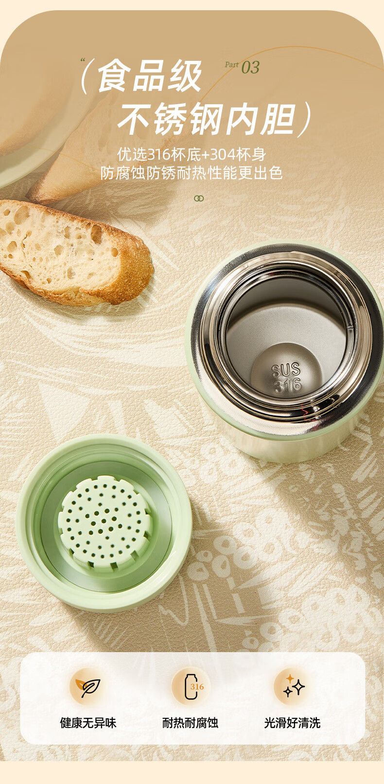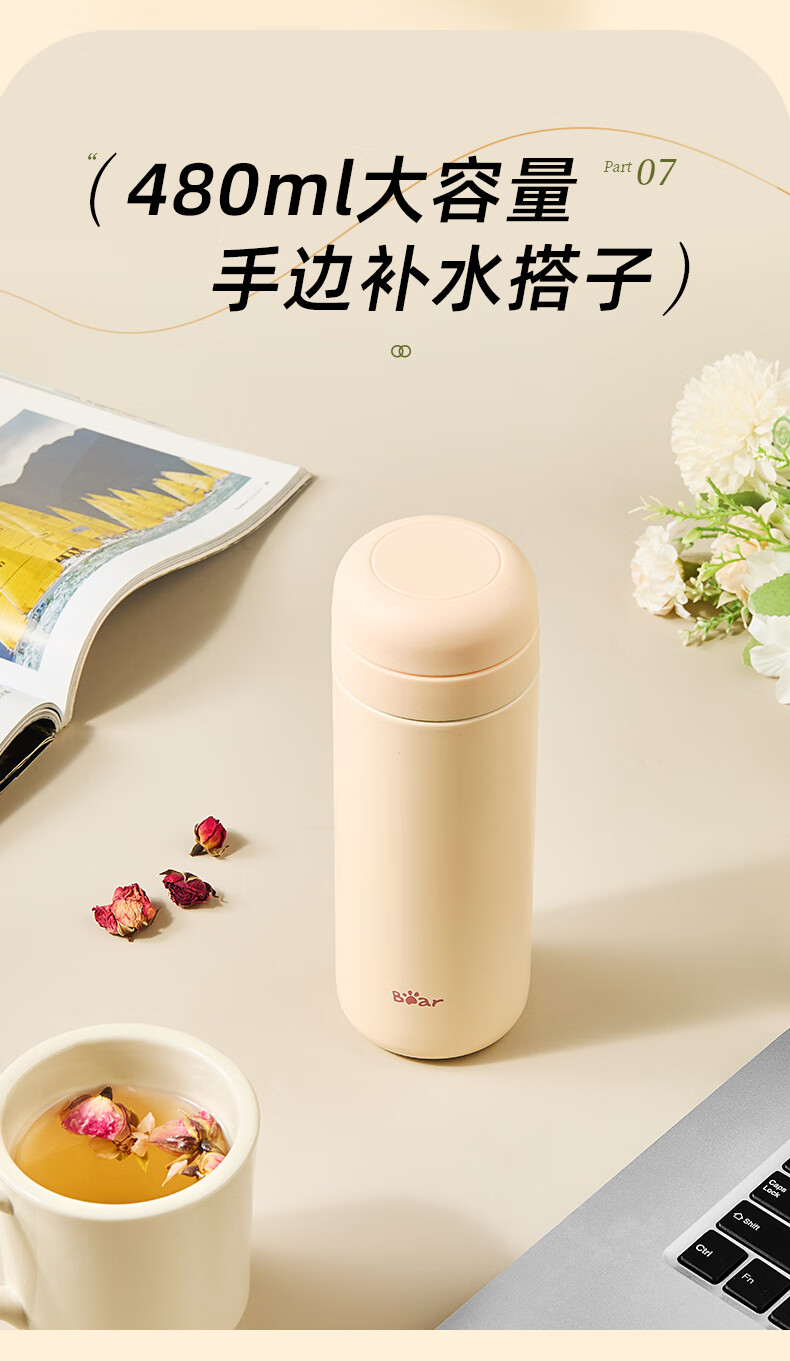 小熊(Bear)保温杯水杯男士女儿童咖啡316不锈钢长效保温保冷24H车载生日礼物 CX-JB060-P02绿色 480ml