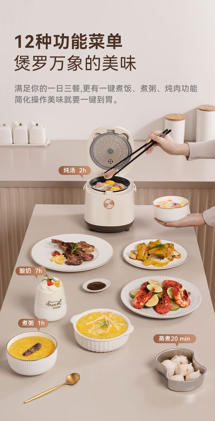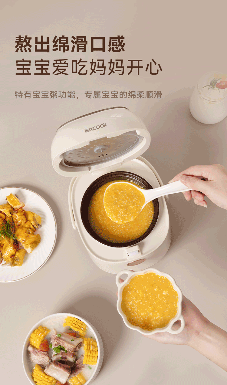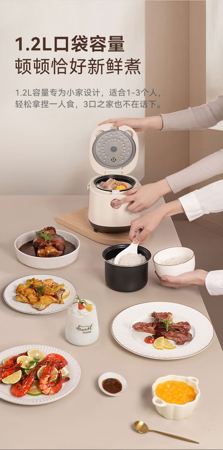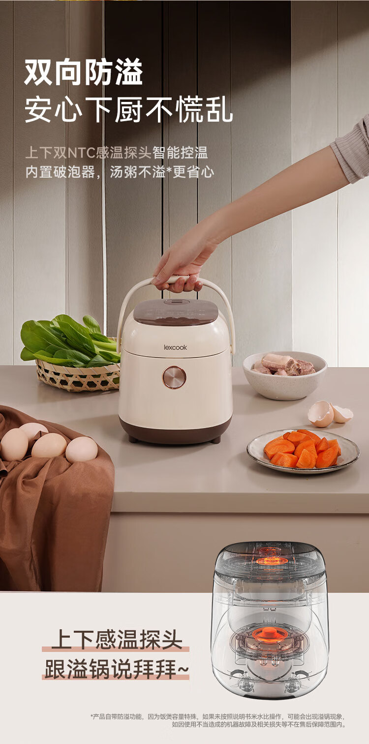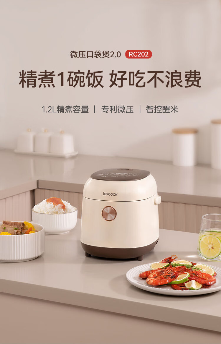 莱小厨(Lexcook) 微压电饭煲1.2L家用迷你小型1-2人多功能智能婴儿煮粥饭煲宝宝辅食电饭锅 奶白色 1.2L
