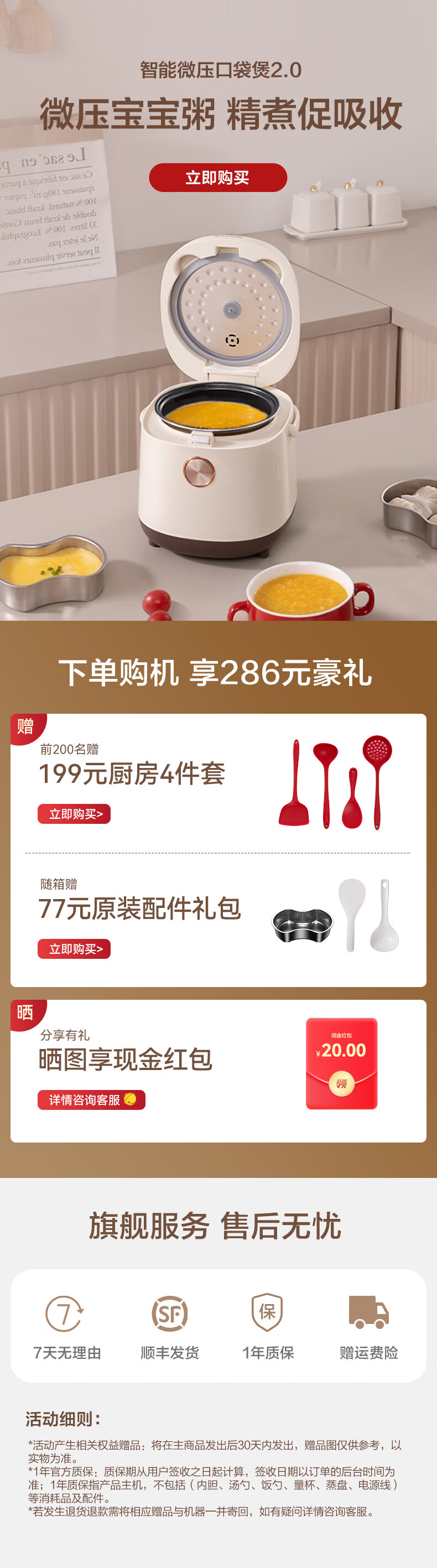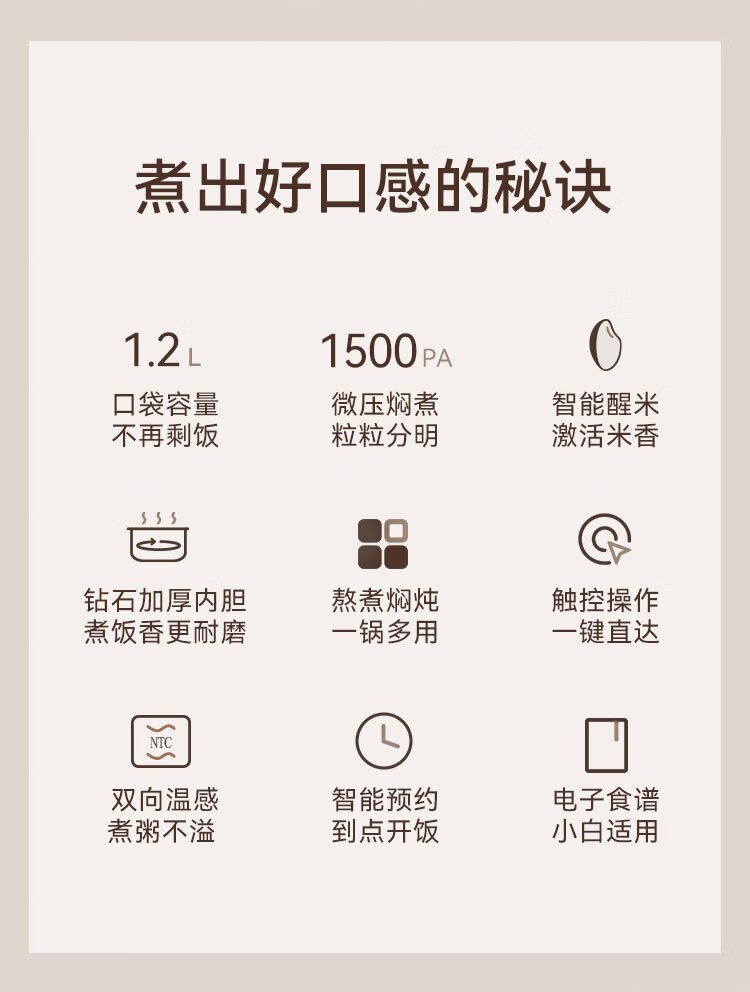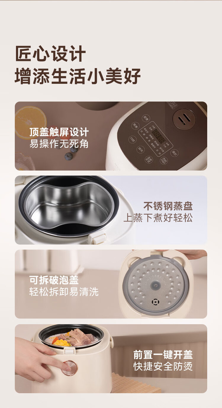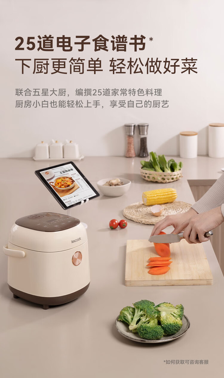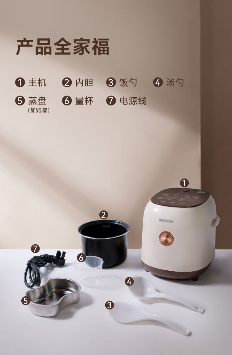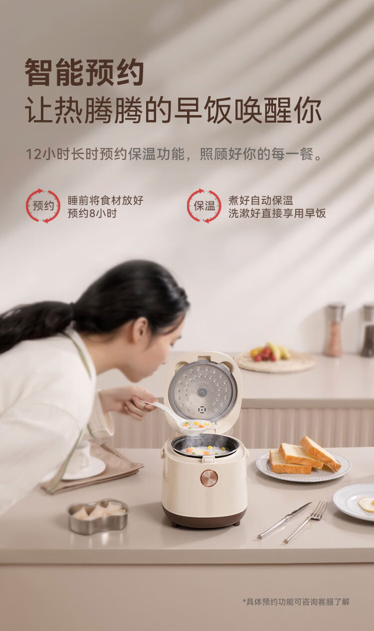 莱小厨(Lexcook) 微压电饭煲1.2L家用迷你小型1-2人多功能智能婴儿煮粥饭煲宝宝辅食电饭锅 奶白色 1.2L