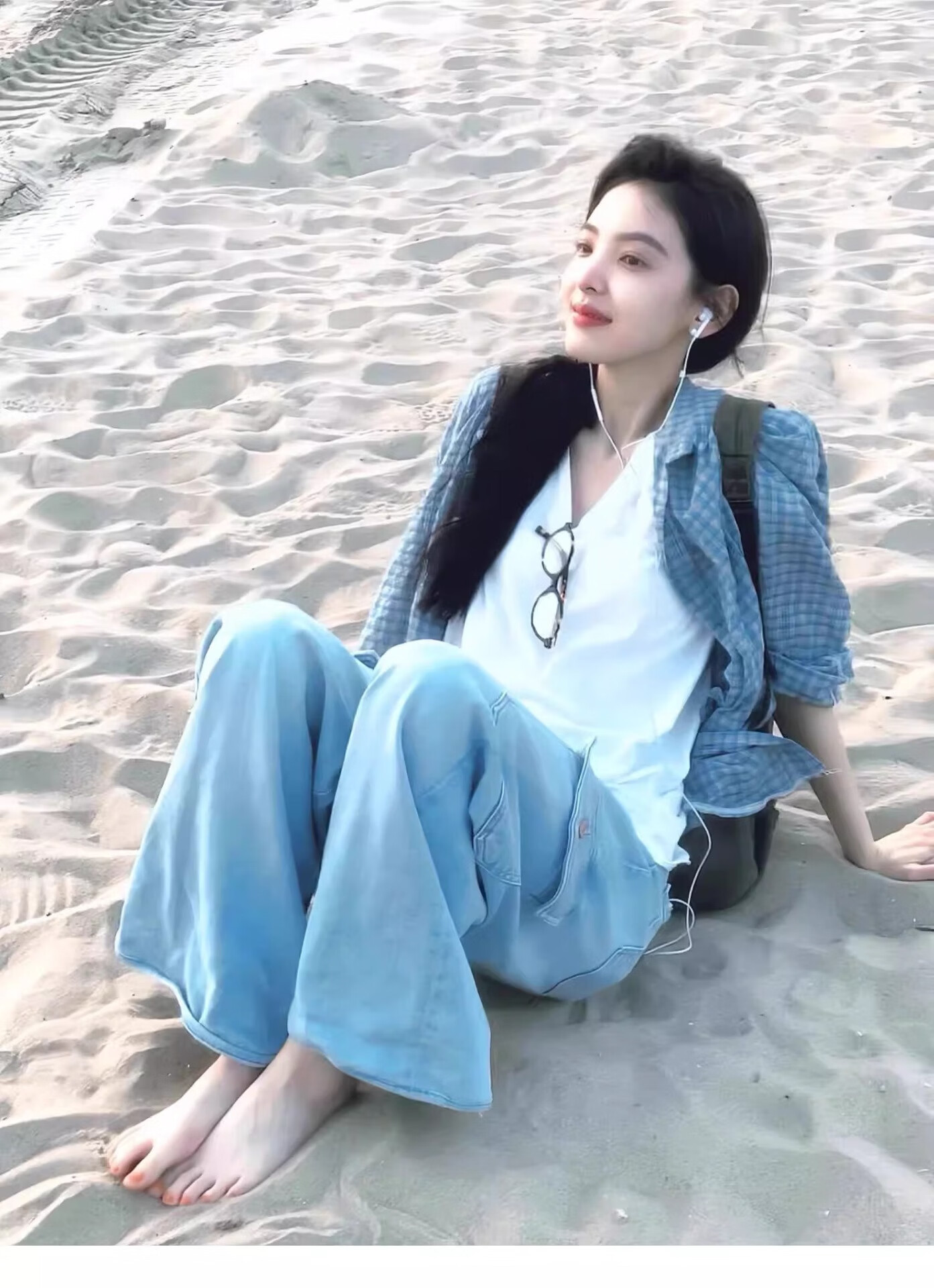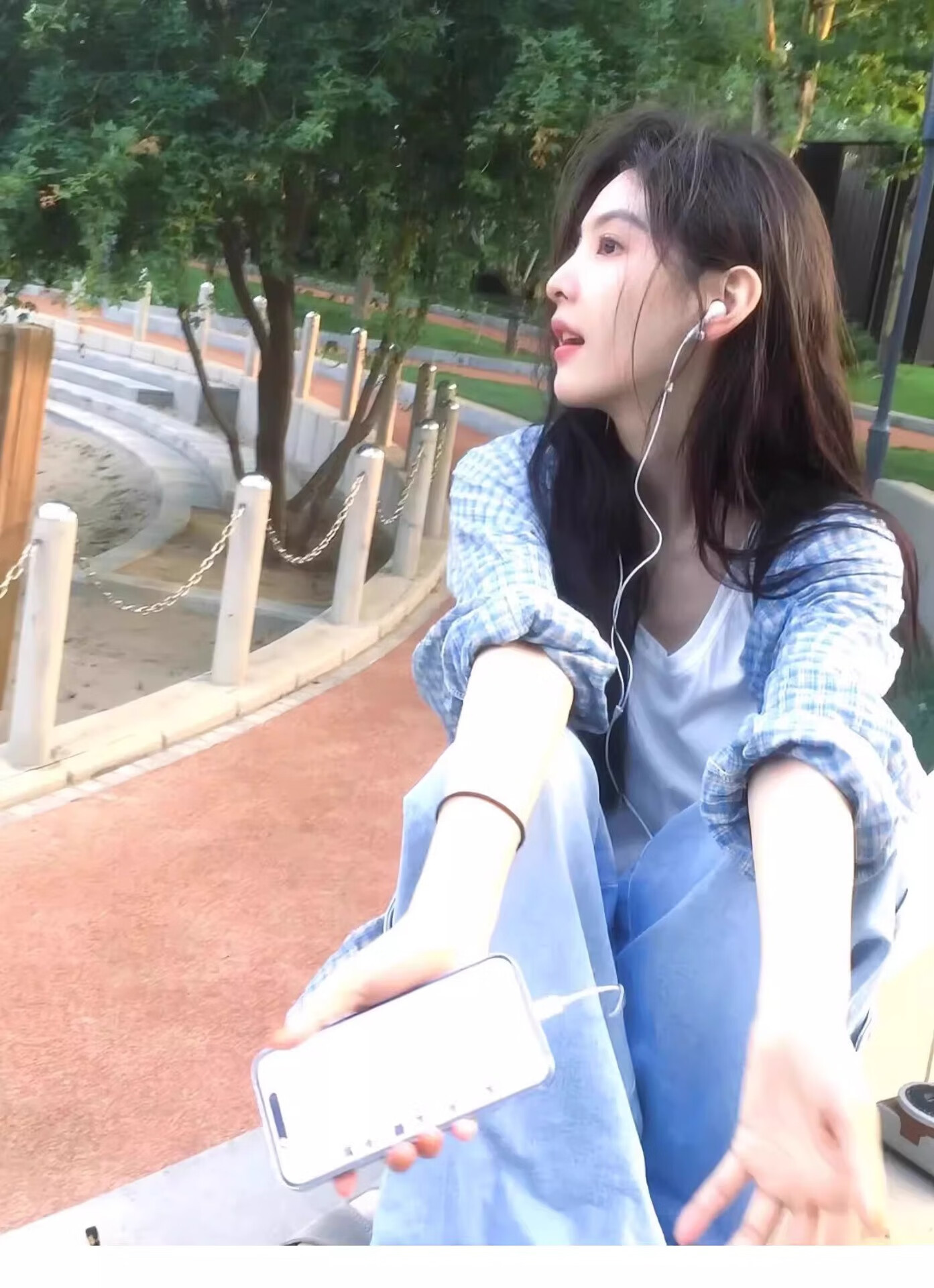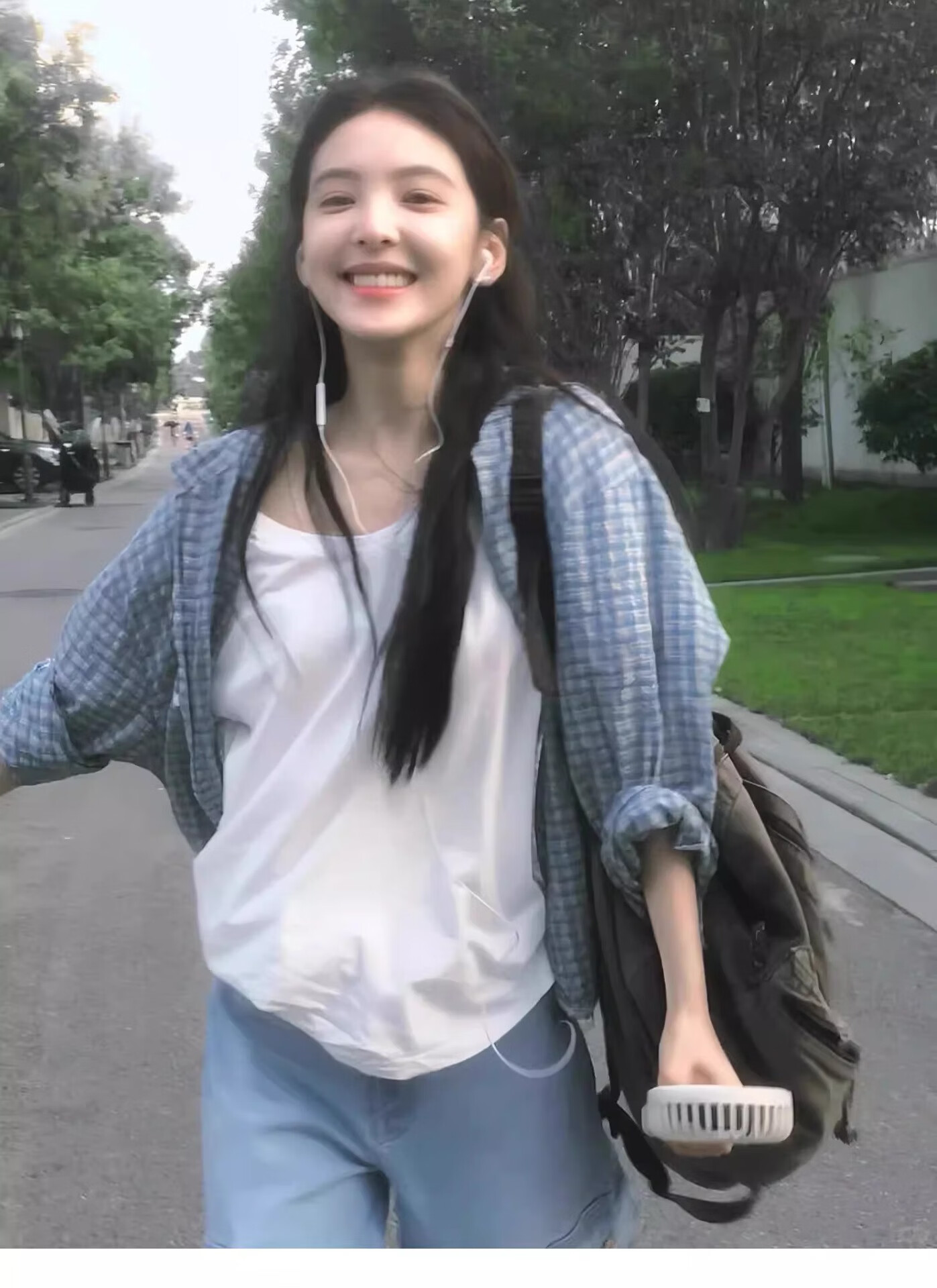 【优选】慵懒风休闲蓝色格子衬衫女2025早秋新款宽松百搭长袖防晒 蓝色 S