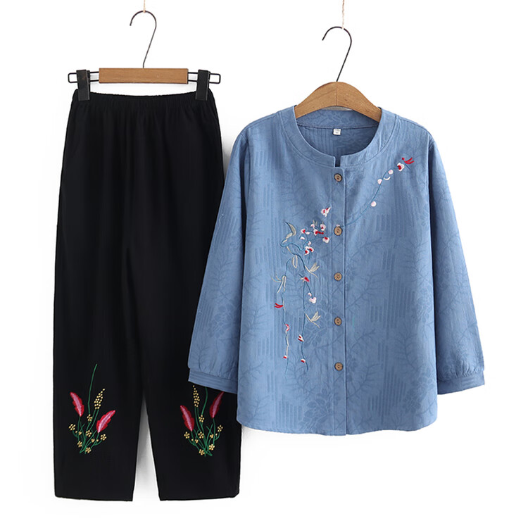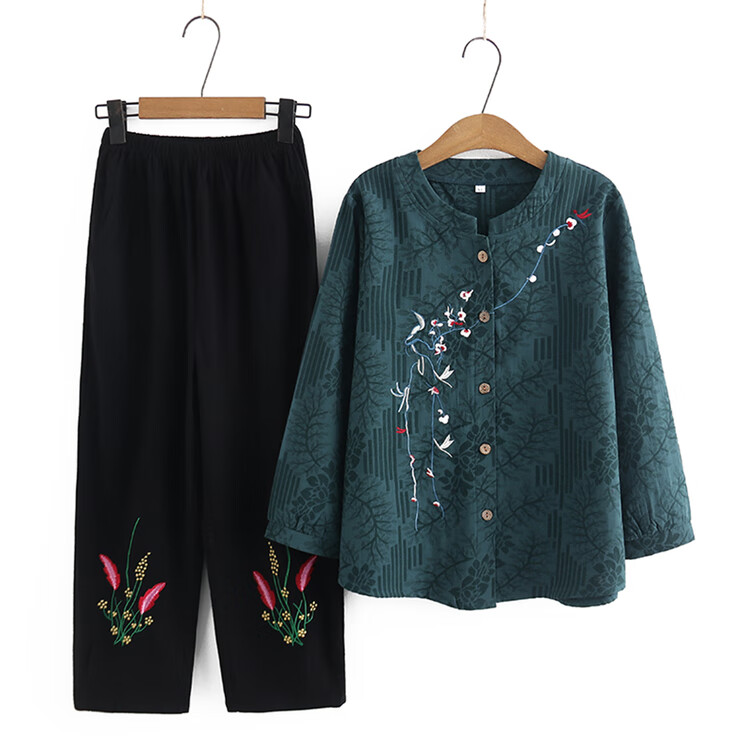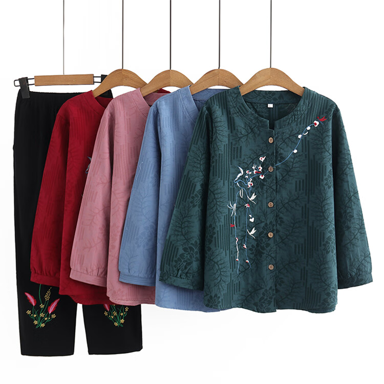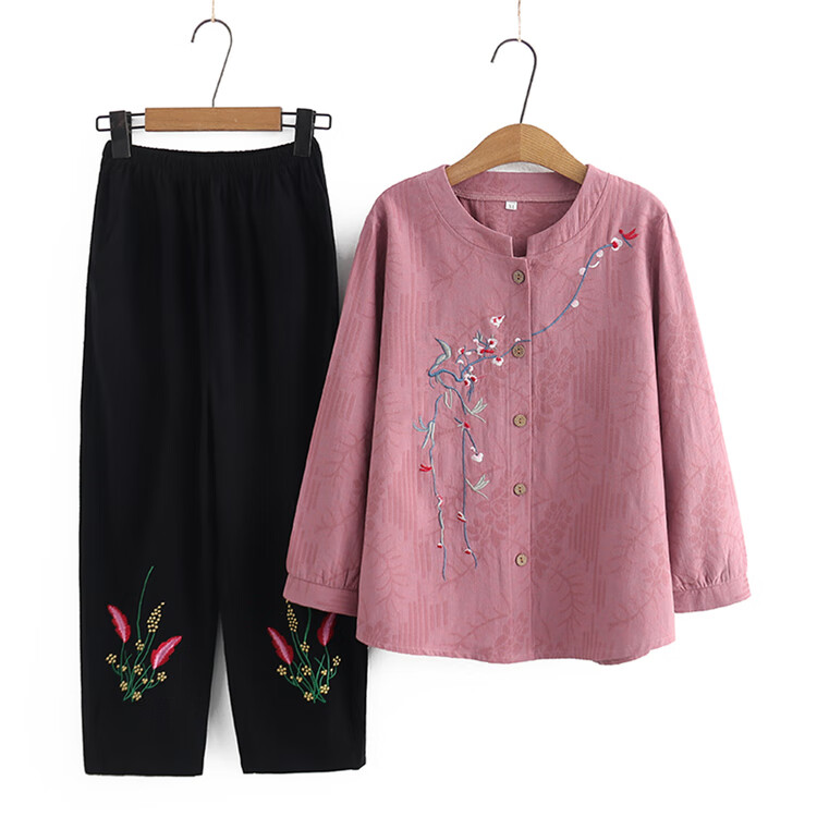 兰铂丽斯奶奶套装春秋款长袖衬衫中老年人秋季女装衣服妈妈秋装上衣两件套 皮粉色 066款 XL 建议105斤之内