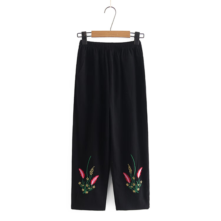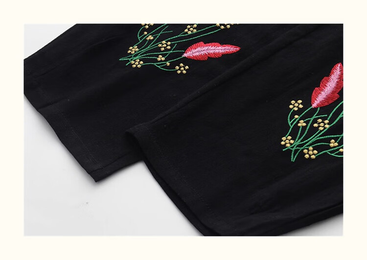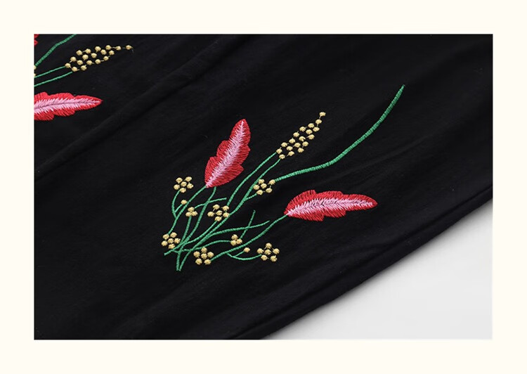 WHOOSIS(不知其名)蔷薇藤蔓刺绣短袖T恤夏季休闲百搭男女校园潮 黑色 【现货】 XL 三标齐全