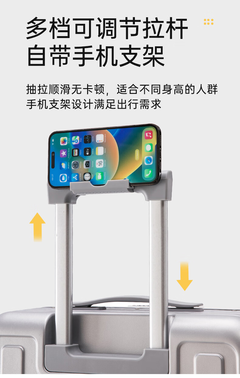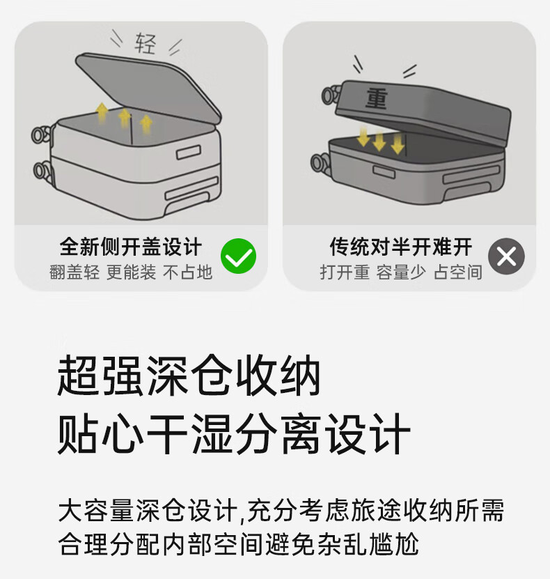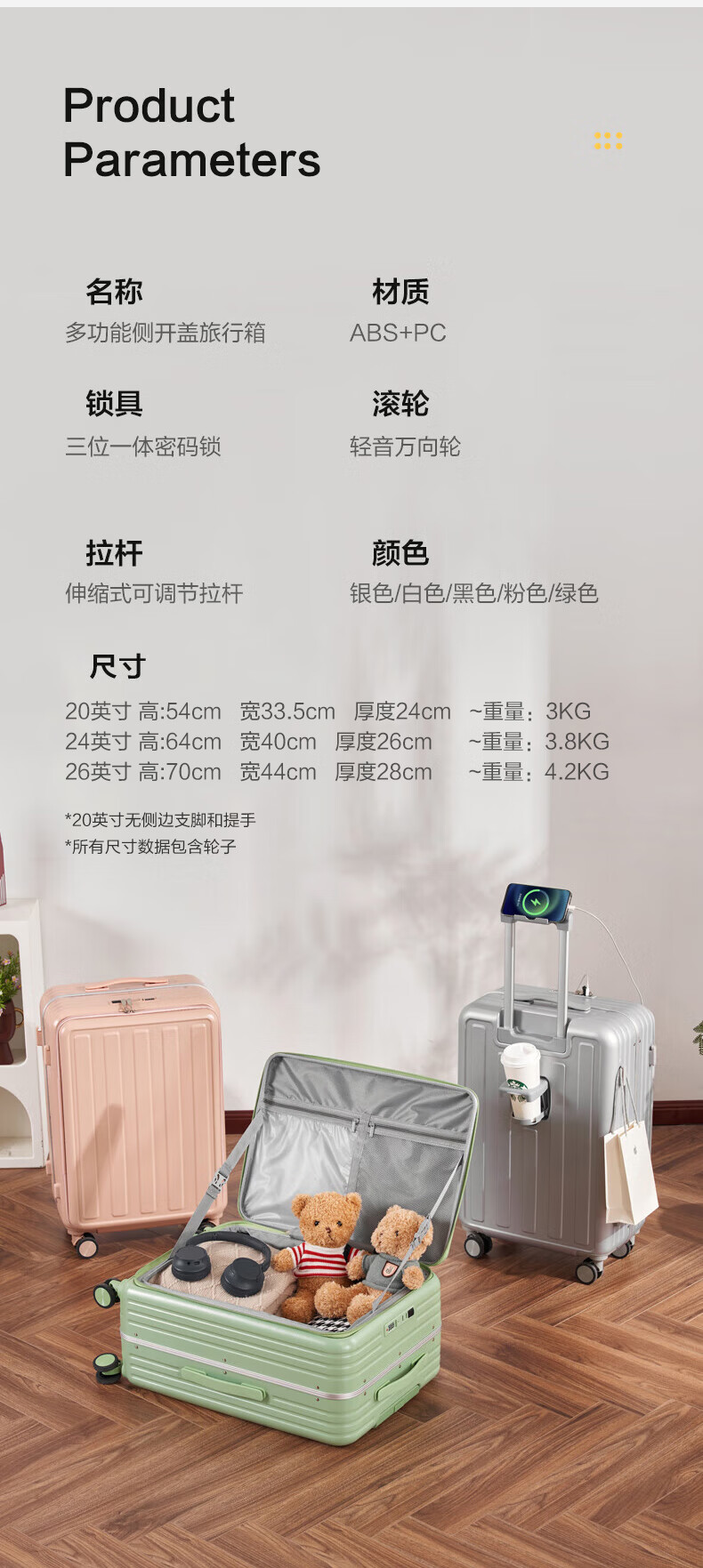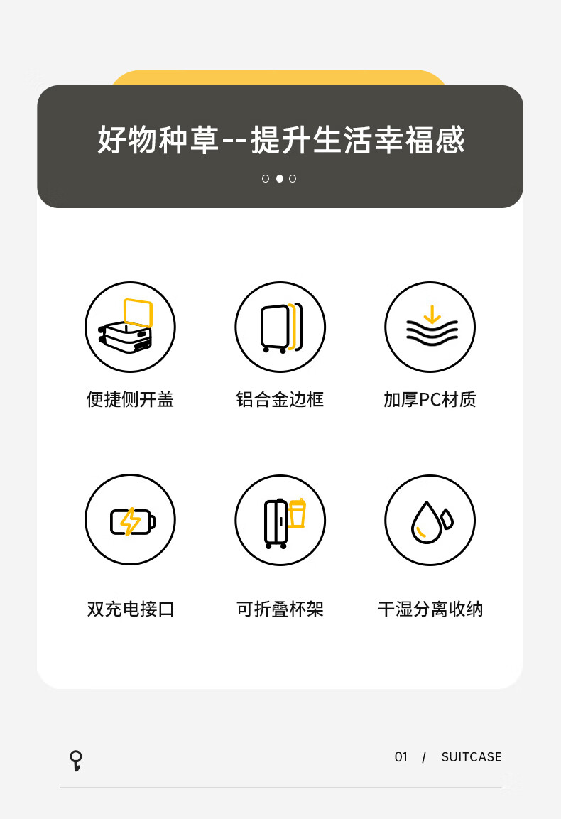 REDOO侧开盖行李箱多功能铝框拉杆箱大容量男女密码箱登机旅行箱子皮箱 米白色【侧开+USB+杯架+手机架】 20英寸 登机箱【无侧提支脚挂钩】
