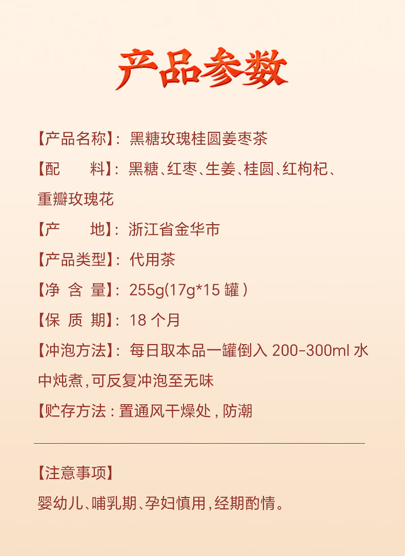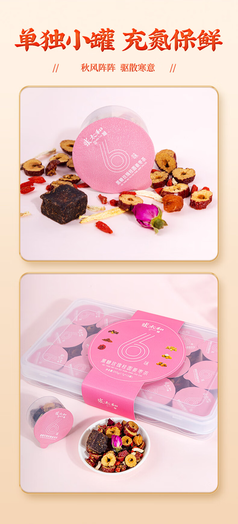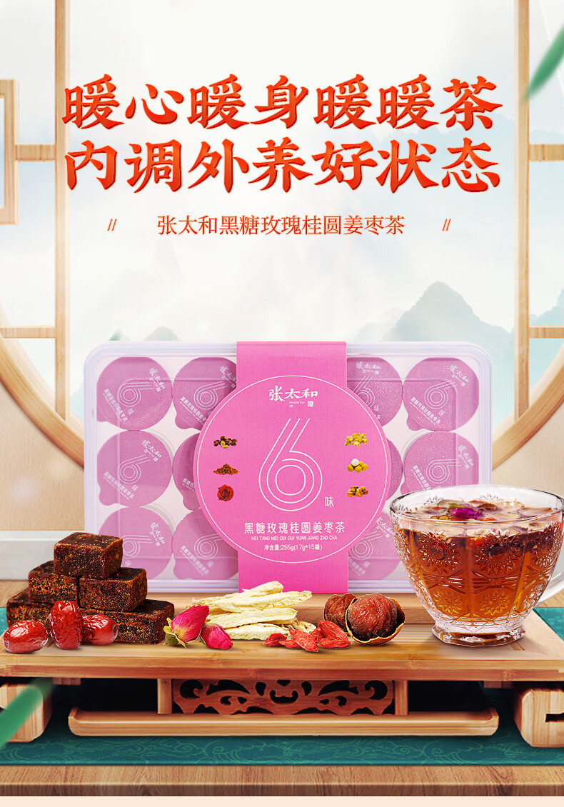 张太和 黑糖玫瑰桂圆姜枣茶 17g*15罐礼盒 红糖姜枣茶桂圆红枣茶泡水 黑糖玫瑰桂圆姜枣茶255g礼盒送礼袋