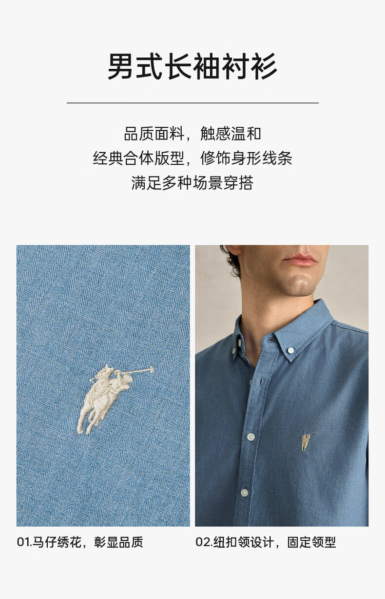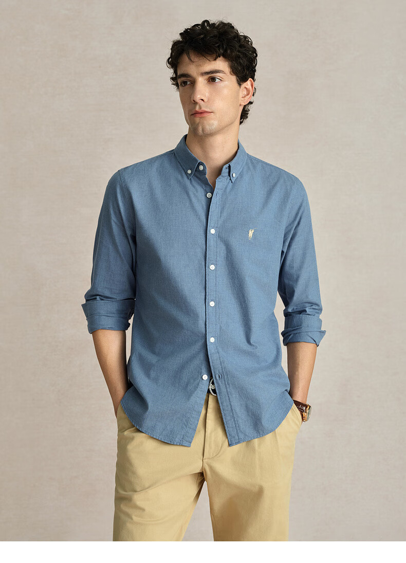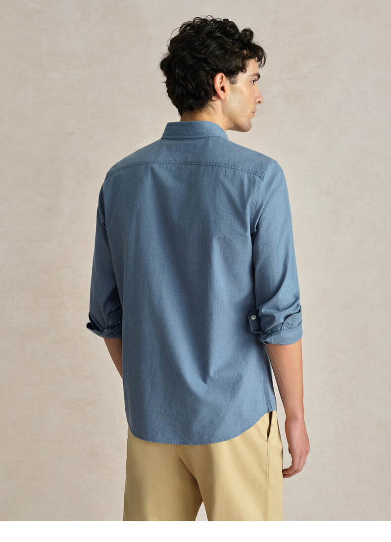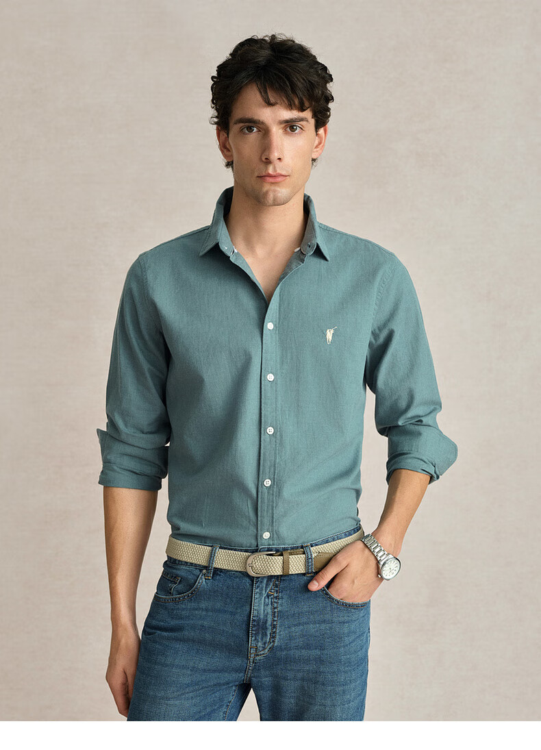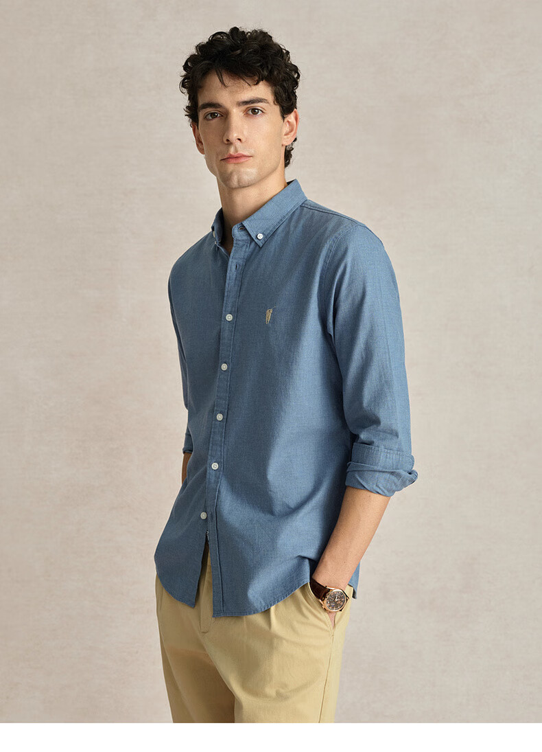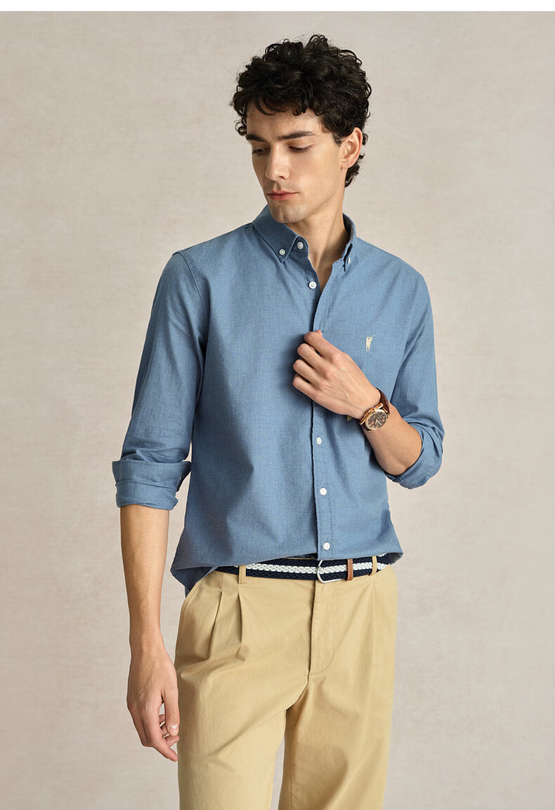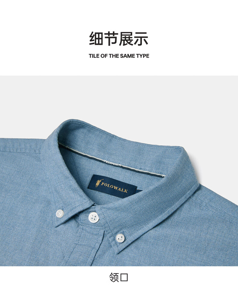 POLOWALK纯棉长袖衬衫男士2024秋季新款商务休闲质感衬衣男外套 浅牛仔蓝 XL