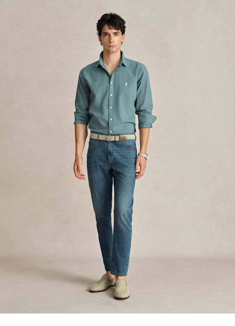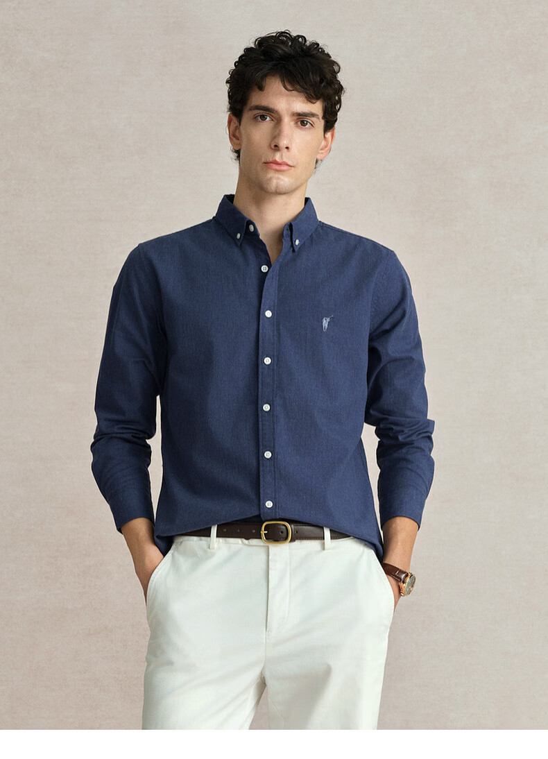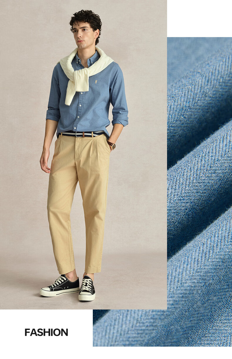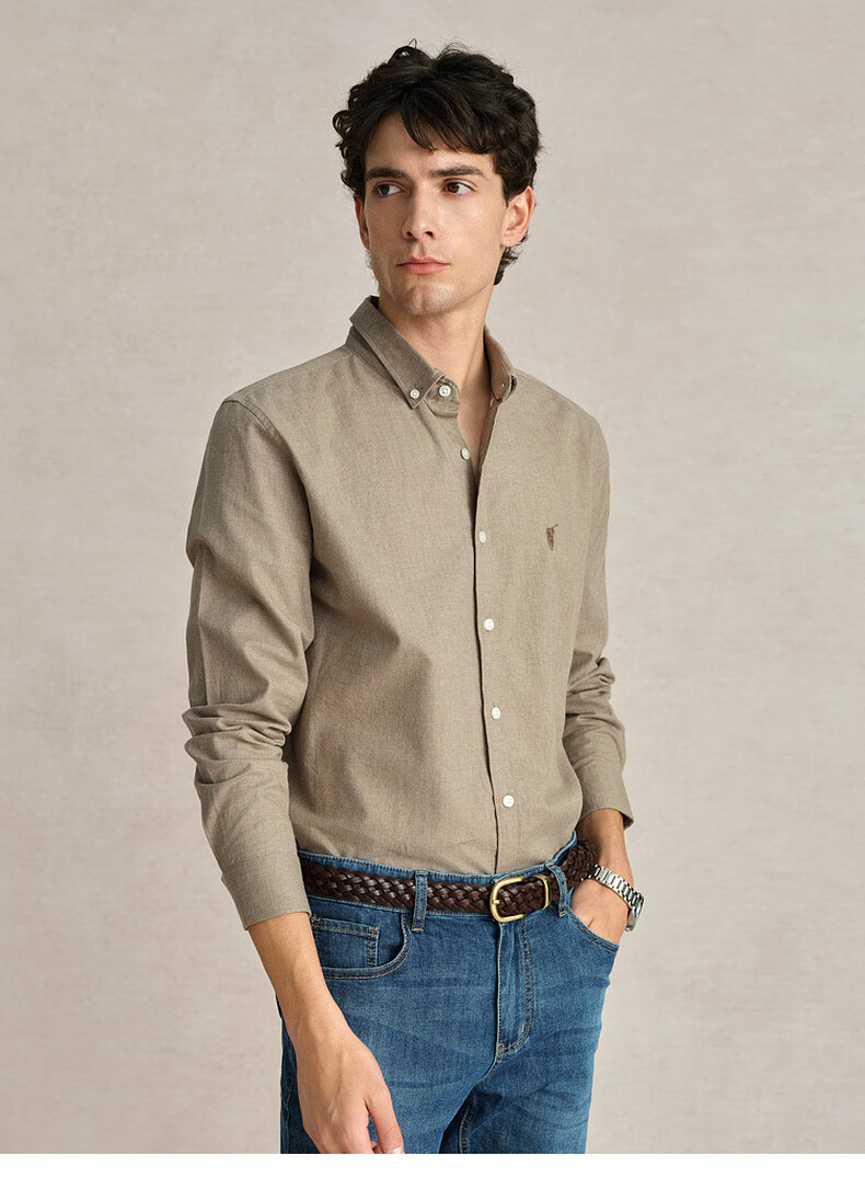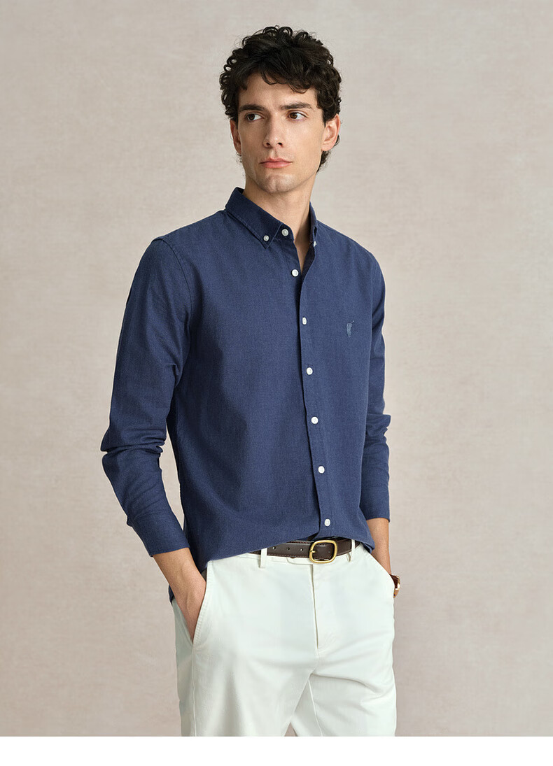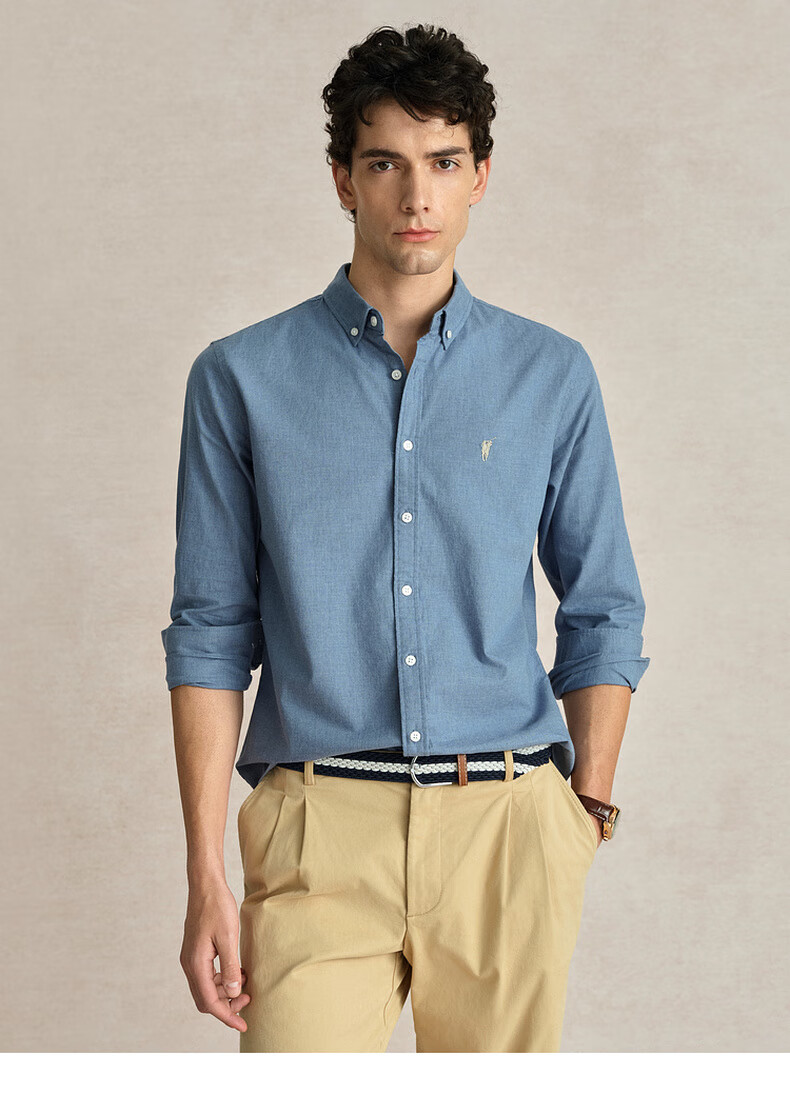 POLOWALK纯棉长袖衬衫男士2024秋季新款商务休闲质感衬衣男外套 浅牛仔蓝 XL