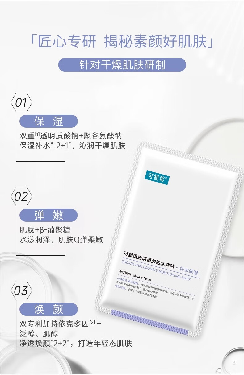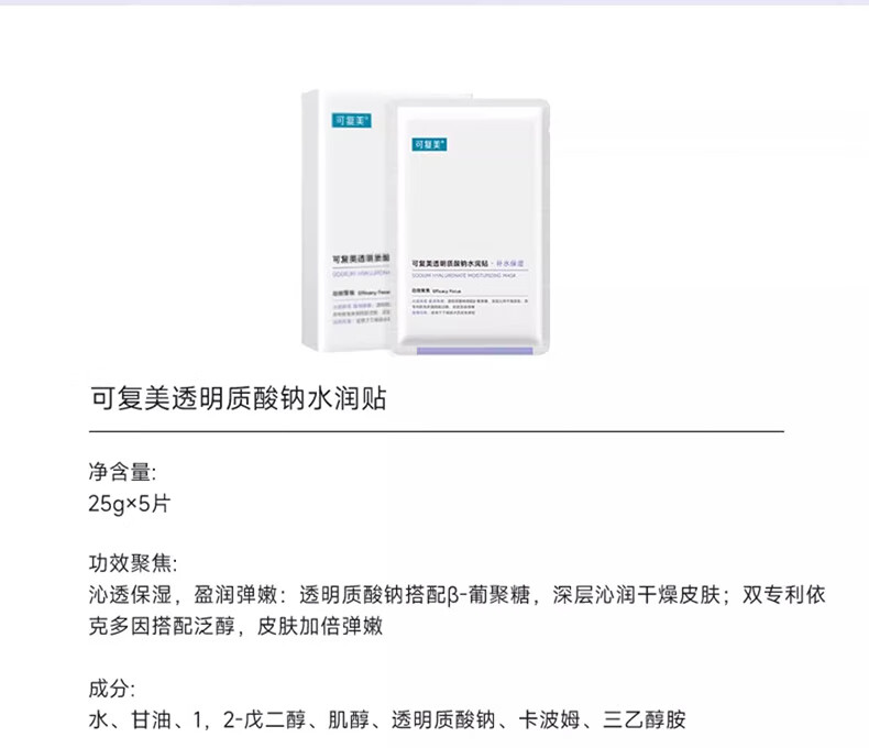 可复美面膜透明质酸钠水润贴大水膜5片 修护润泽【临期清仓】