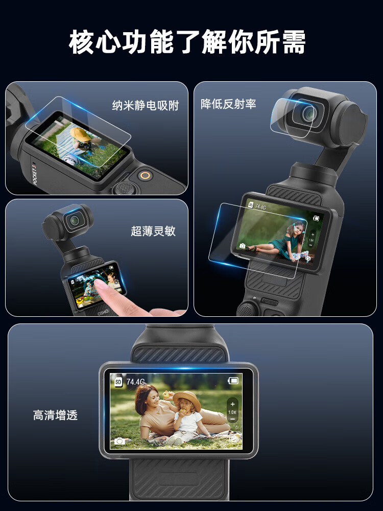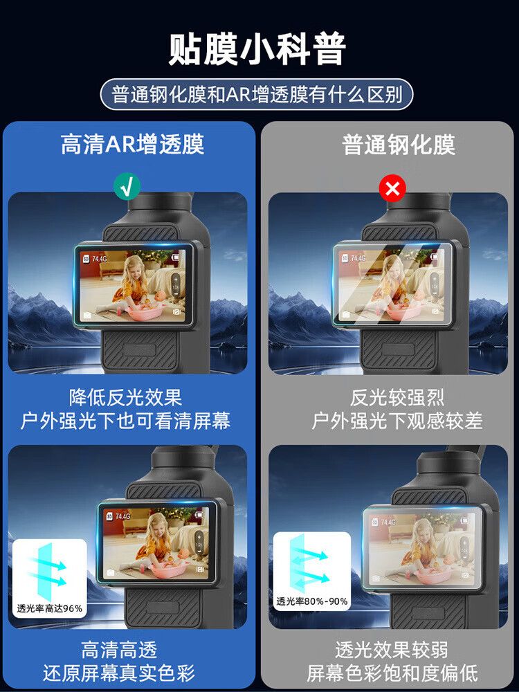 莞膜适用大疆Pocket3AR增透贴膜osmopocket2镜头屏幕膜高清保护贴膜 AR高清增透膜(镜头+屏幕)2套 大疆Pocket3