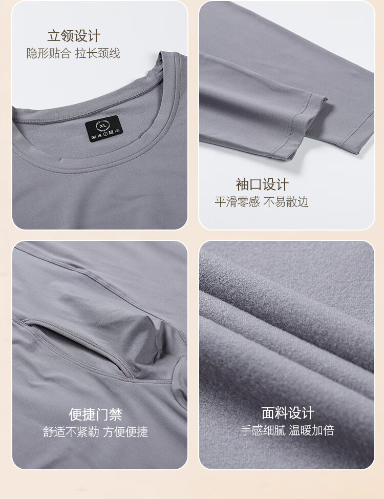 诗莉奥(SHILIAO)女士无痕保暖内衣套装德AB面双面绒磨毛男秋衣秋裤女保暖衣 AB面牛仔蓝无痕 男款 2XL