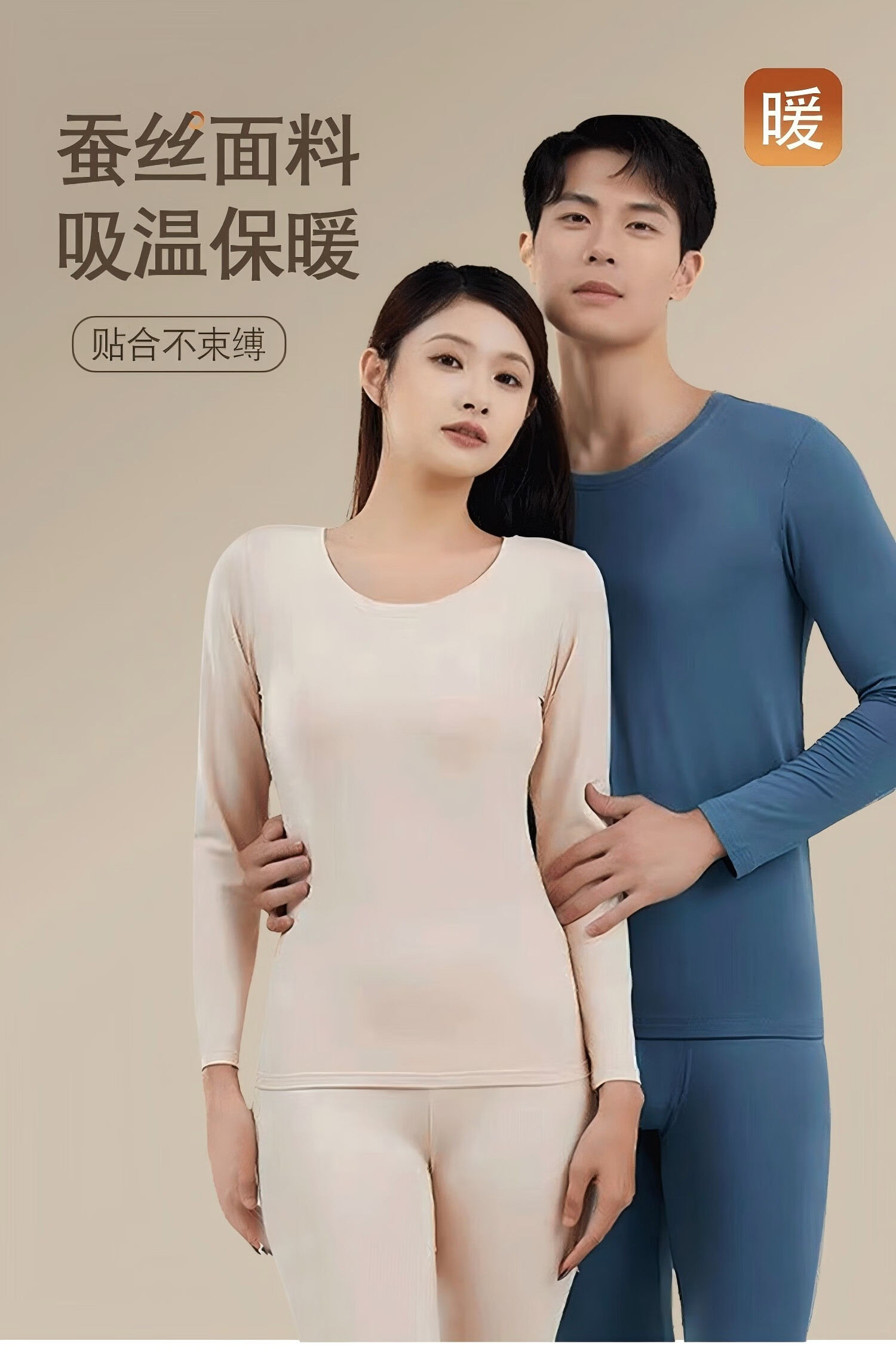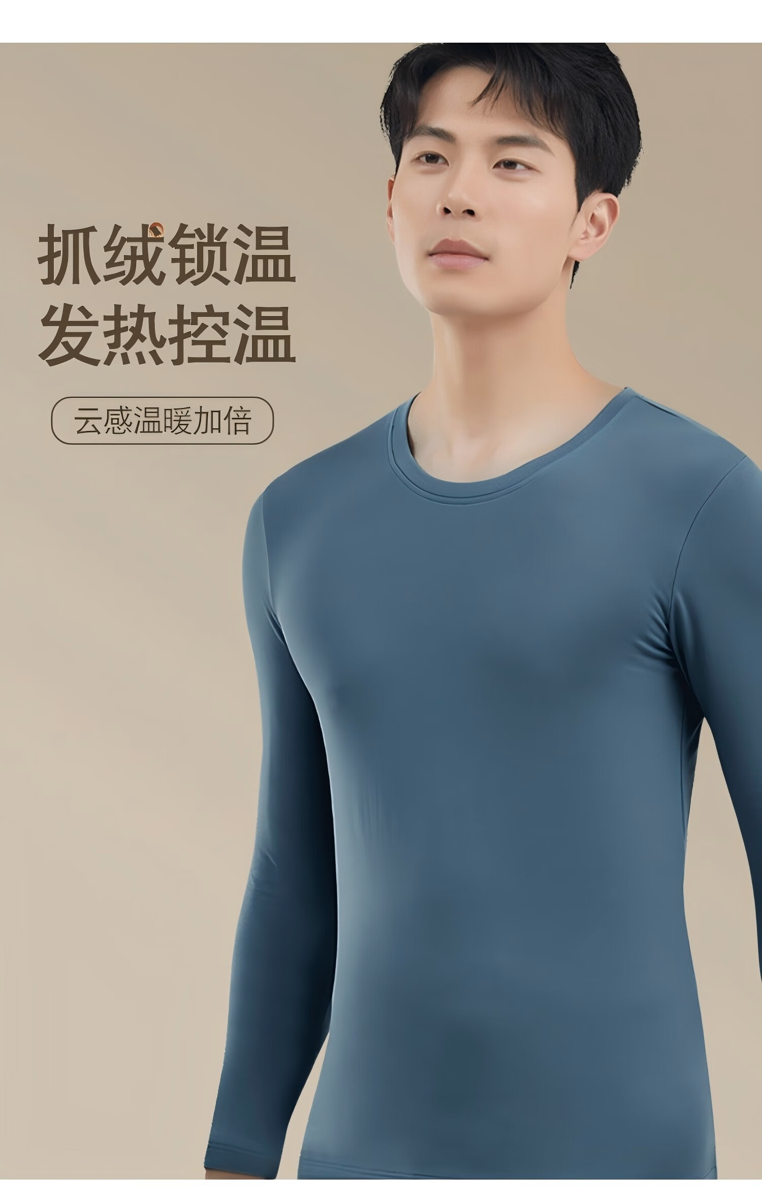 猫人情侣保暖 保暖内衣打底 暖冬必备 可外穿 轻薄秋裤 基础打底内衣 08M1001浅兰-男款 XL