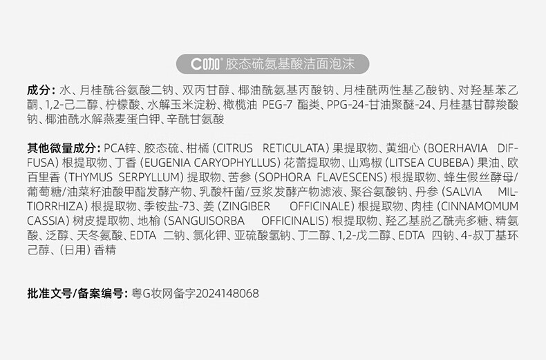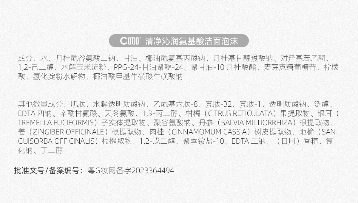 C咖清洁氨基酸泡沫洗面奶温和清洁净肤控油保湿男女洁面慕斯 【热销爆款】清洁面泡沫130ml