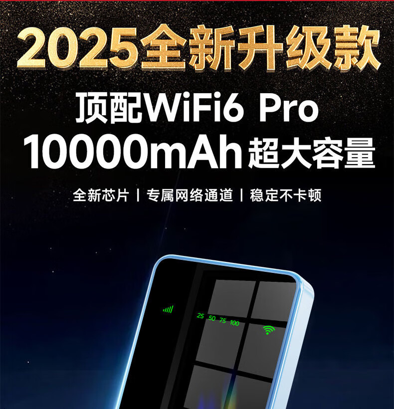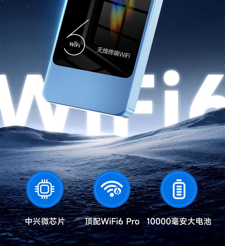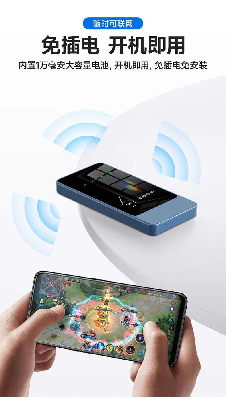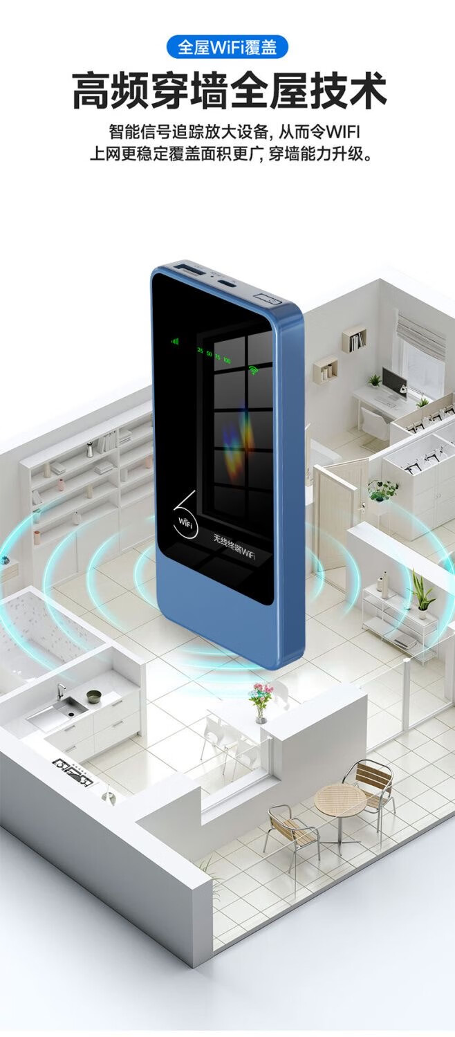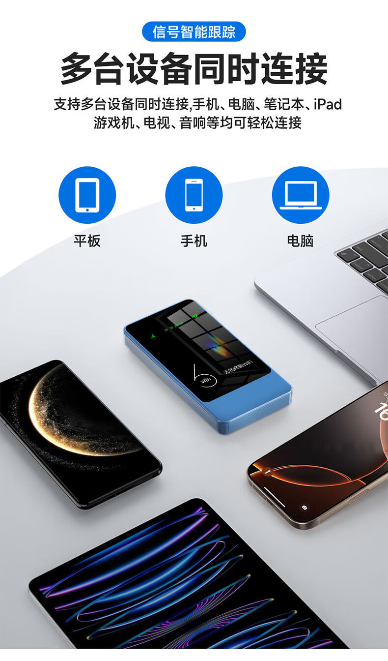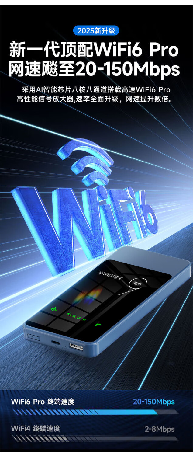 乔锐斯 移动随身wifi5Ghz无限流量2025款便携式热点无线网卡免插卡路由器车载WiFi全国通用 【下单送1500G】1万毫安可充电5Ghz-蓝色