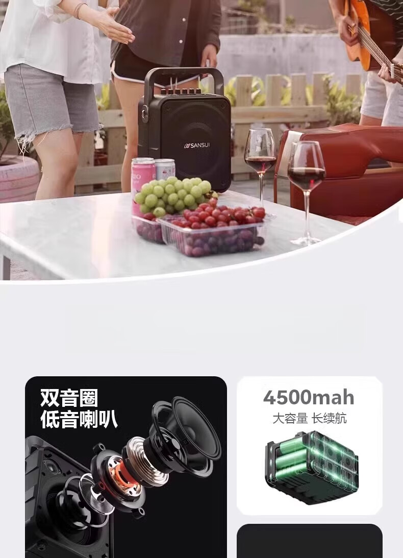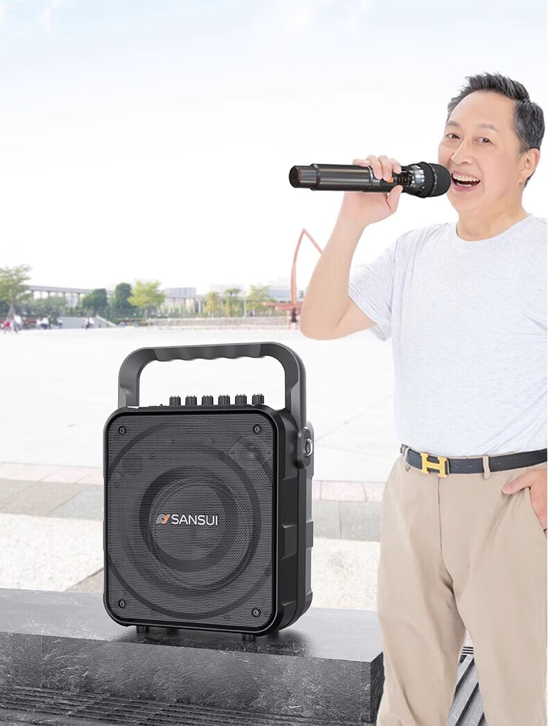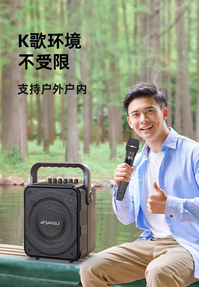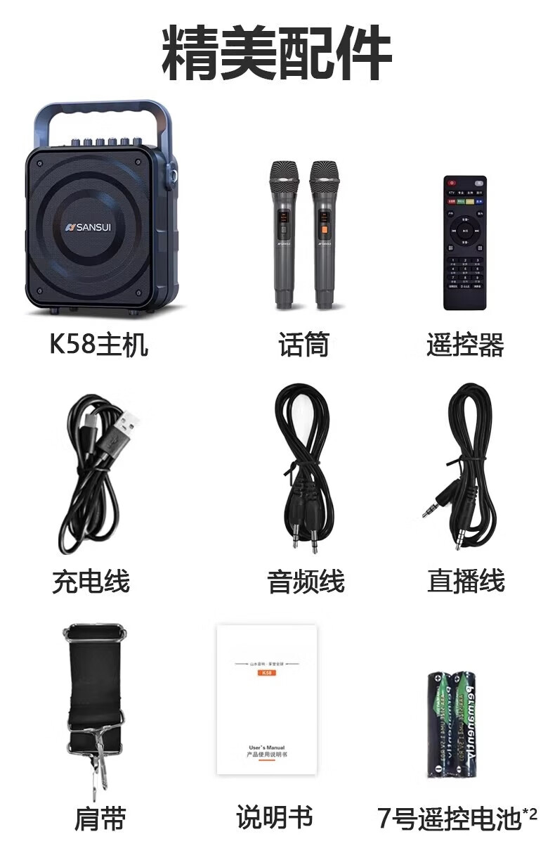 不见不散BV670 Plus蓝牙K歌音响【帮下歌】无线一体机户外大音量广场舞便携式音箱话筒自带声卡家庭KTV 星空黑【双麦版+32G空卡】