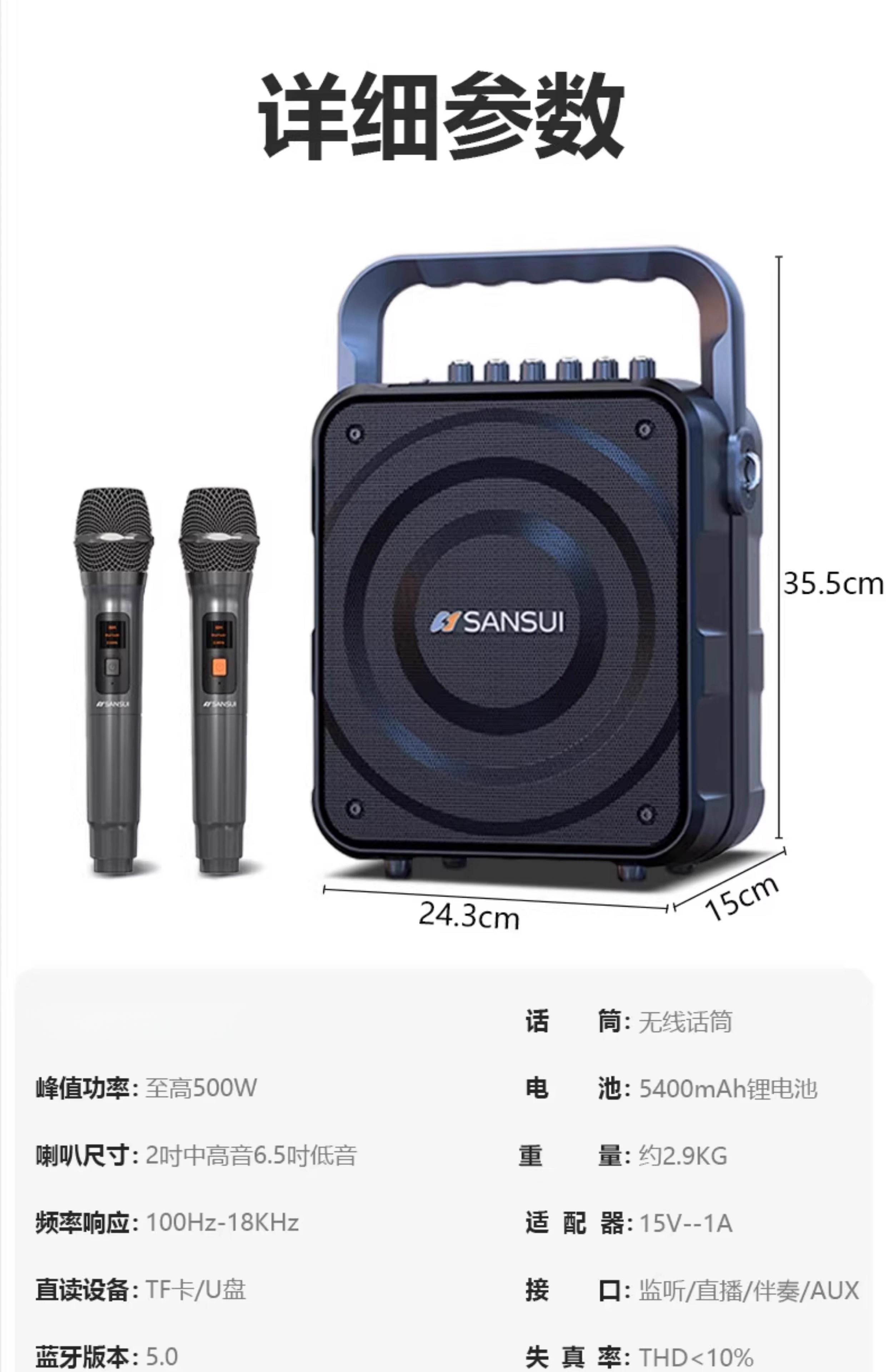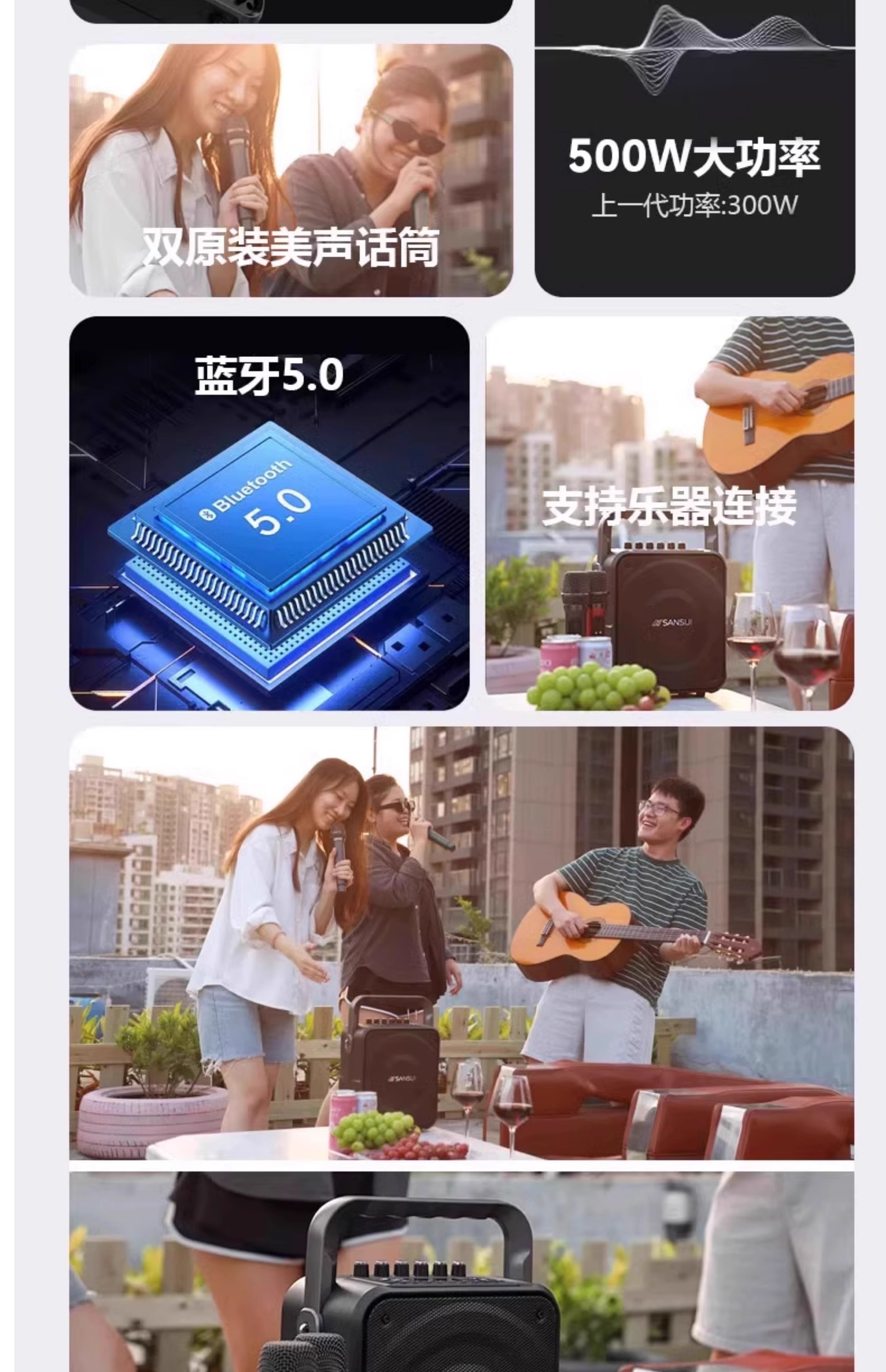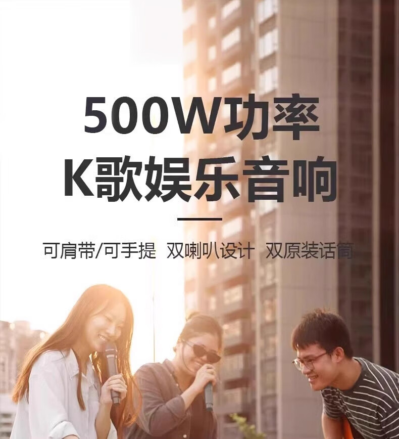 山头林村柏林之声户外便携款广场舞音响蓝牙新款音箱便携式话筒K歌一体机 旗舰版(500W大功率)充电话筒+耳