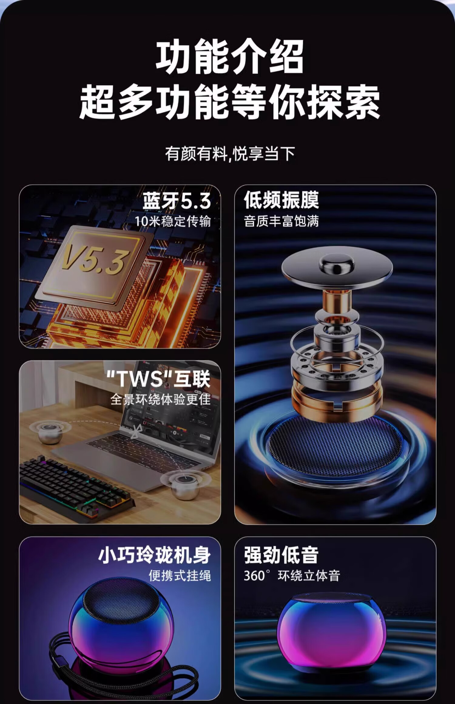 萨勒芬妮【赠挂绳丨随身音响低音炮】无线蓝牙音响mini超小大音量超长续航便携户外旅行运动音箱音乐播放器 【幻彩紫】低音小钢炮丨9D环绕音效 双重低音炮丨大音量丨超长续航