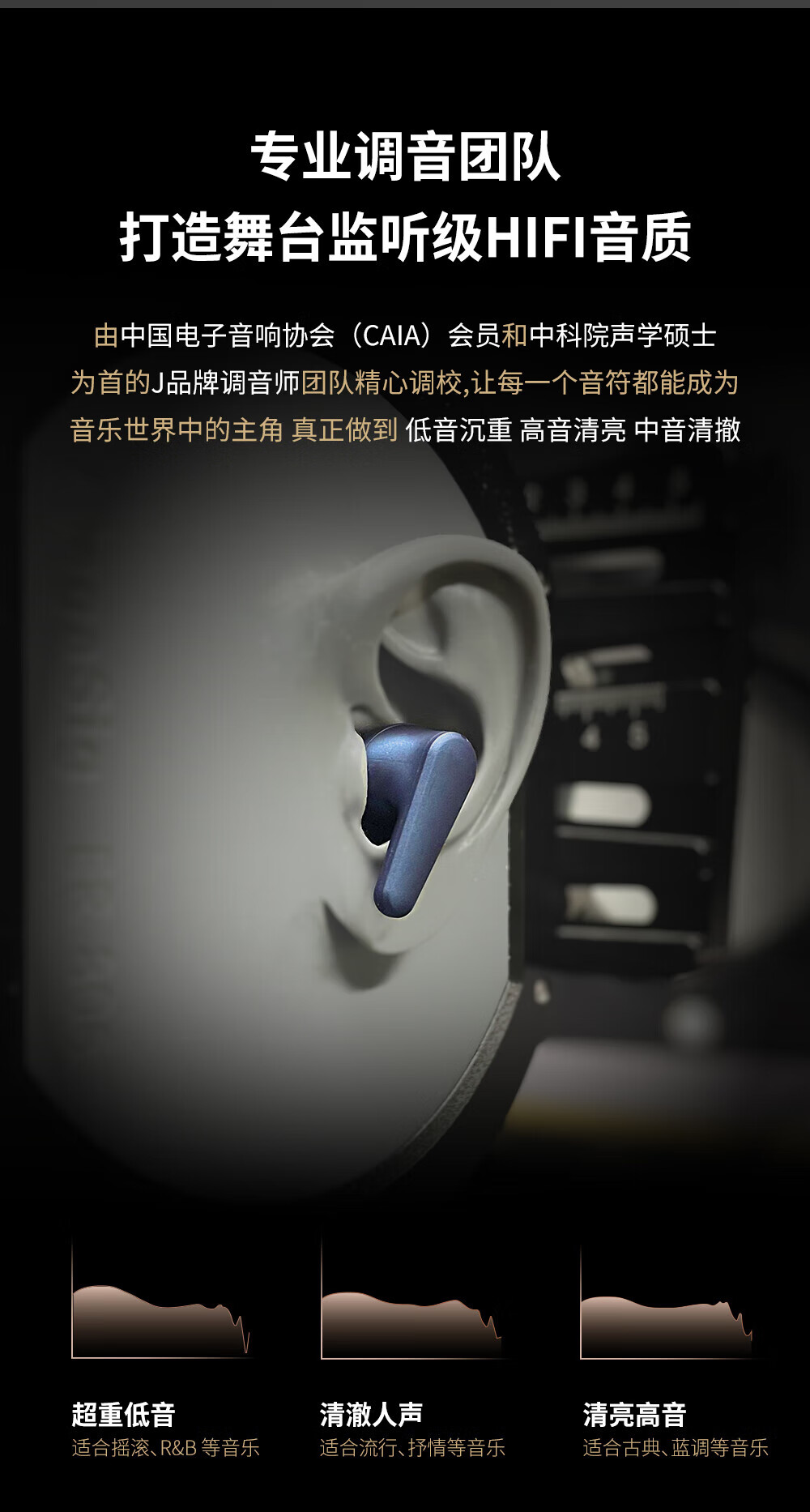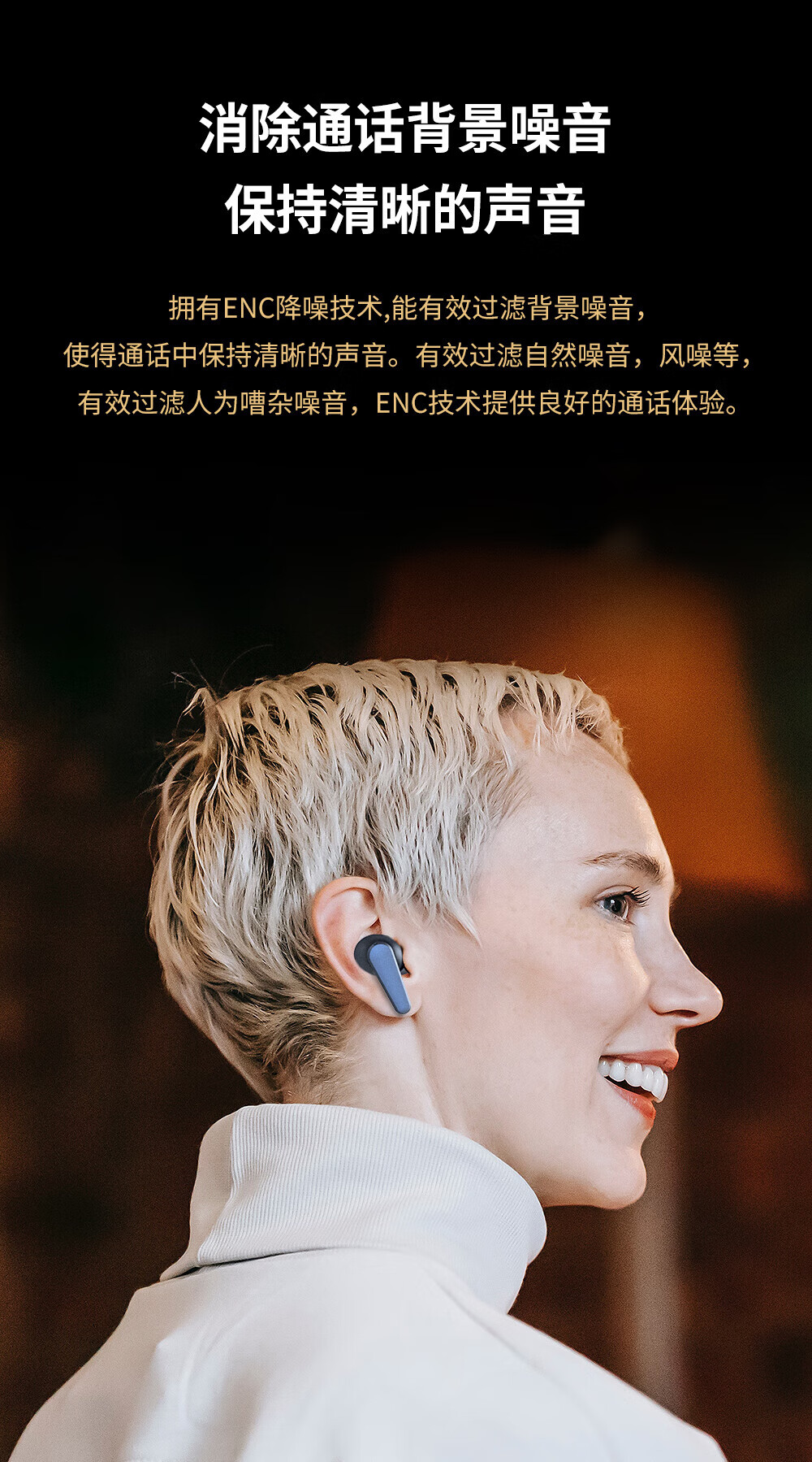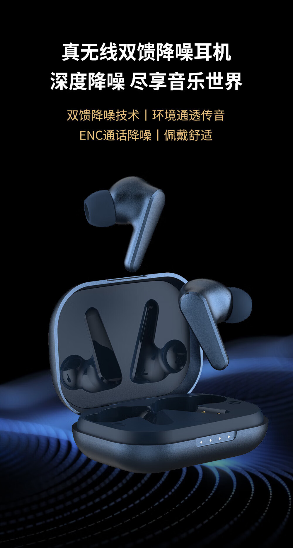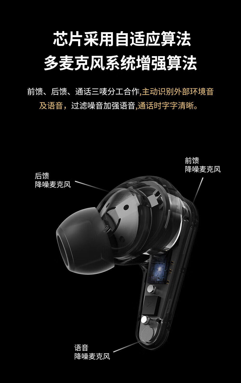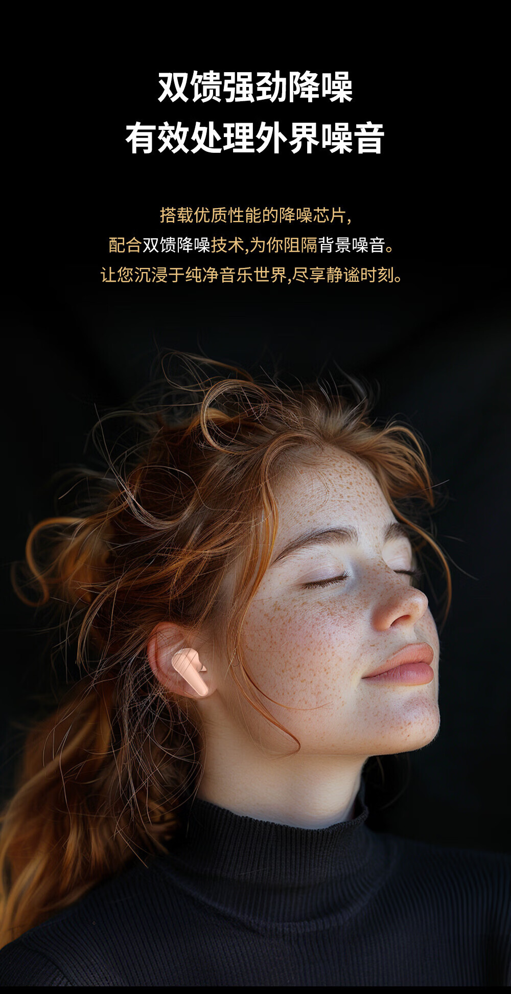 J(匠子)真无线6麦混合双馈数字降噪蓝牙耳机主动降噪环境通透高清通话低延迟触控支持无线充电 澎湃音质 TWN02粉色 TWN02