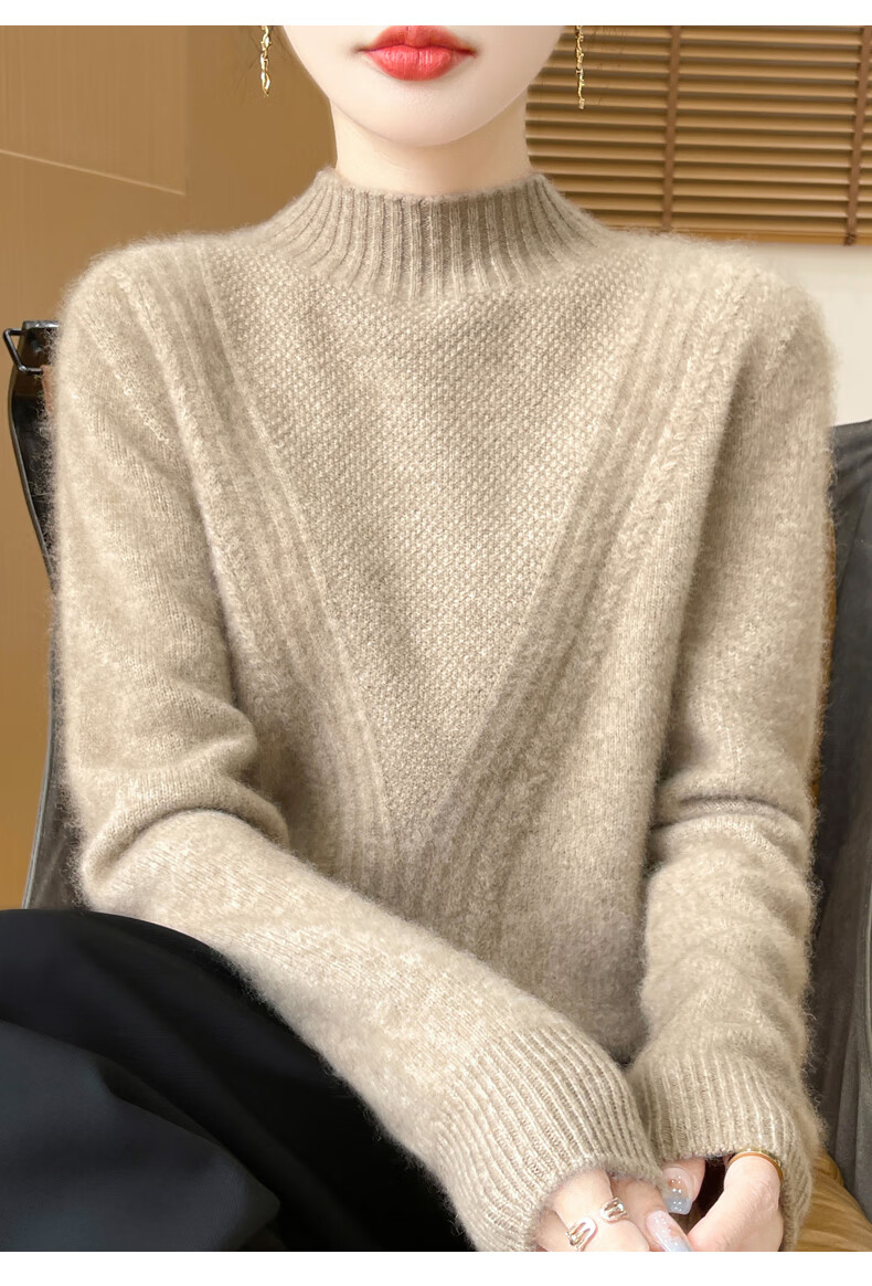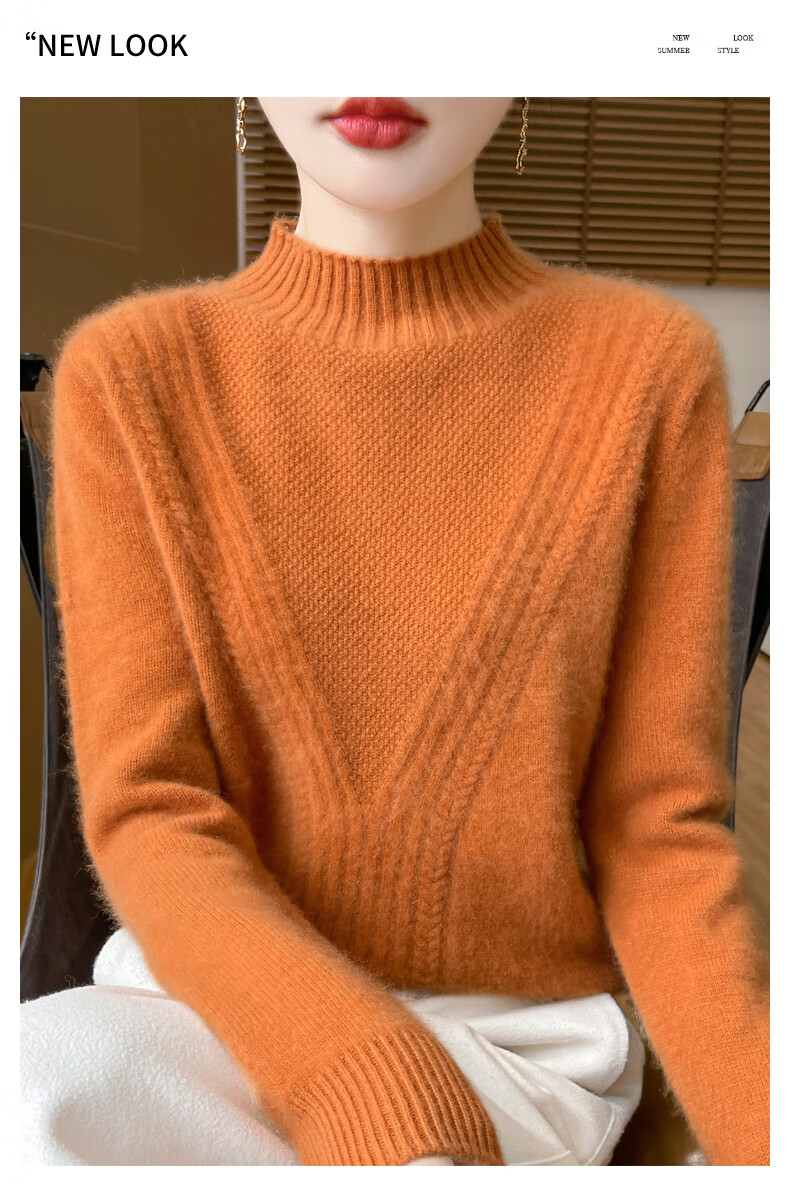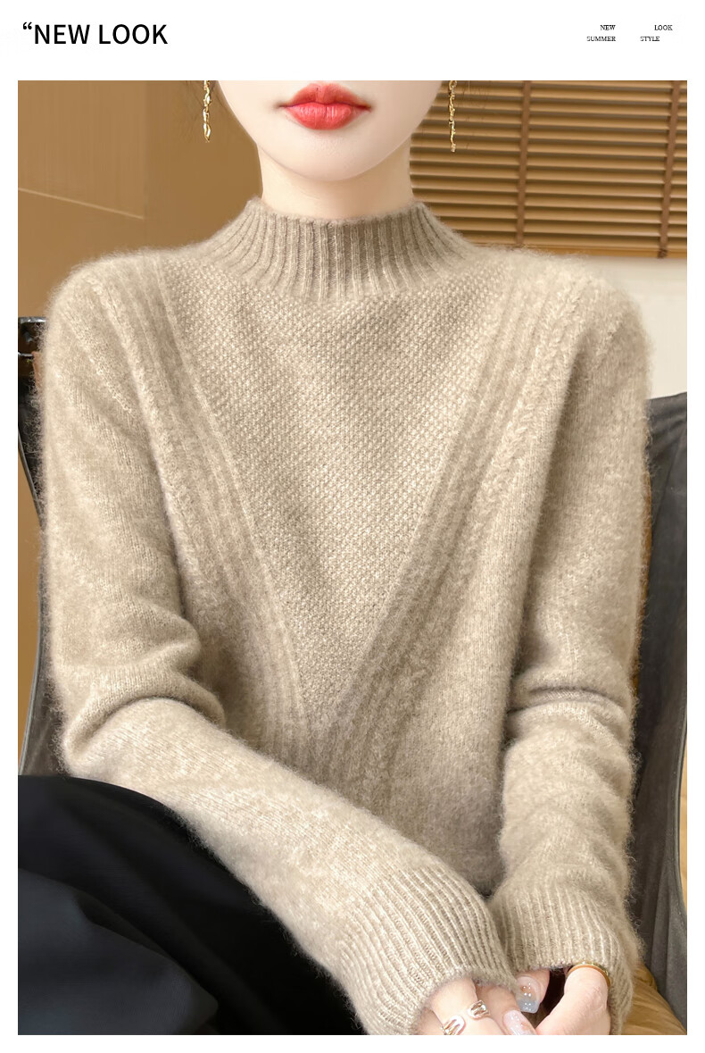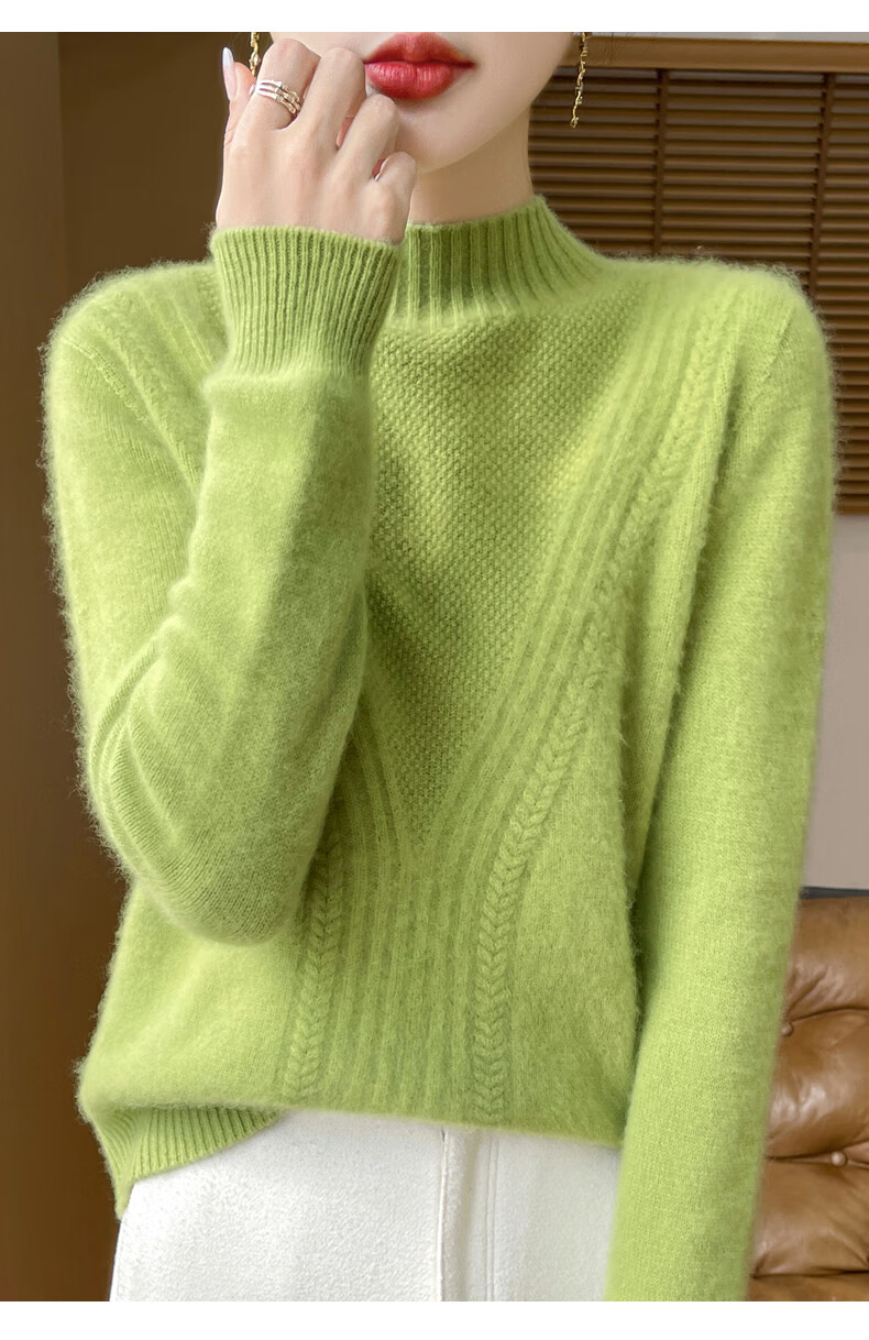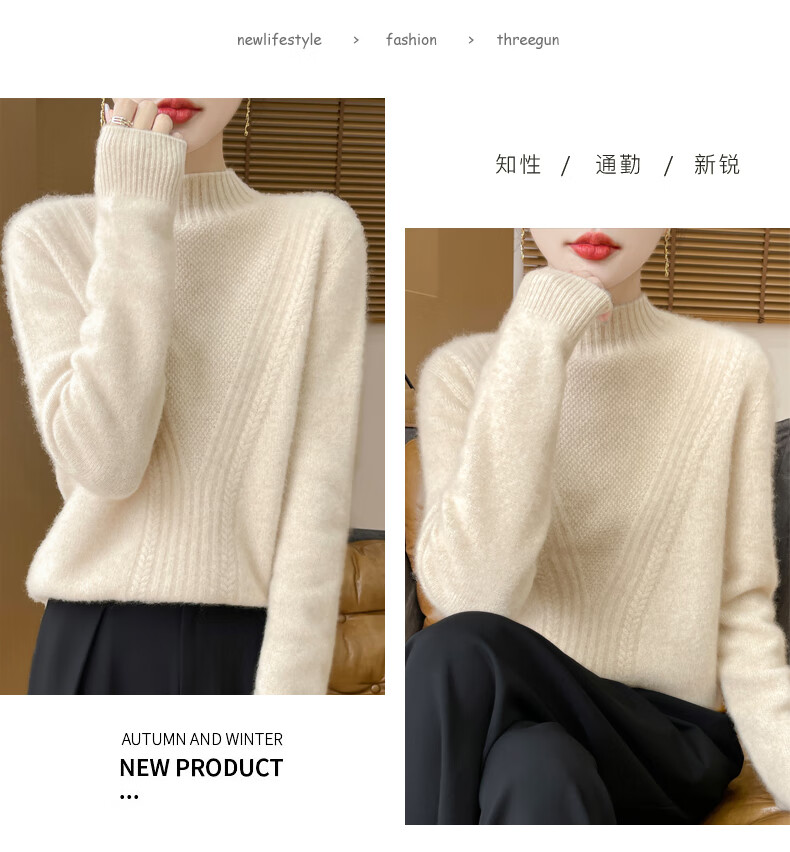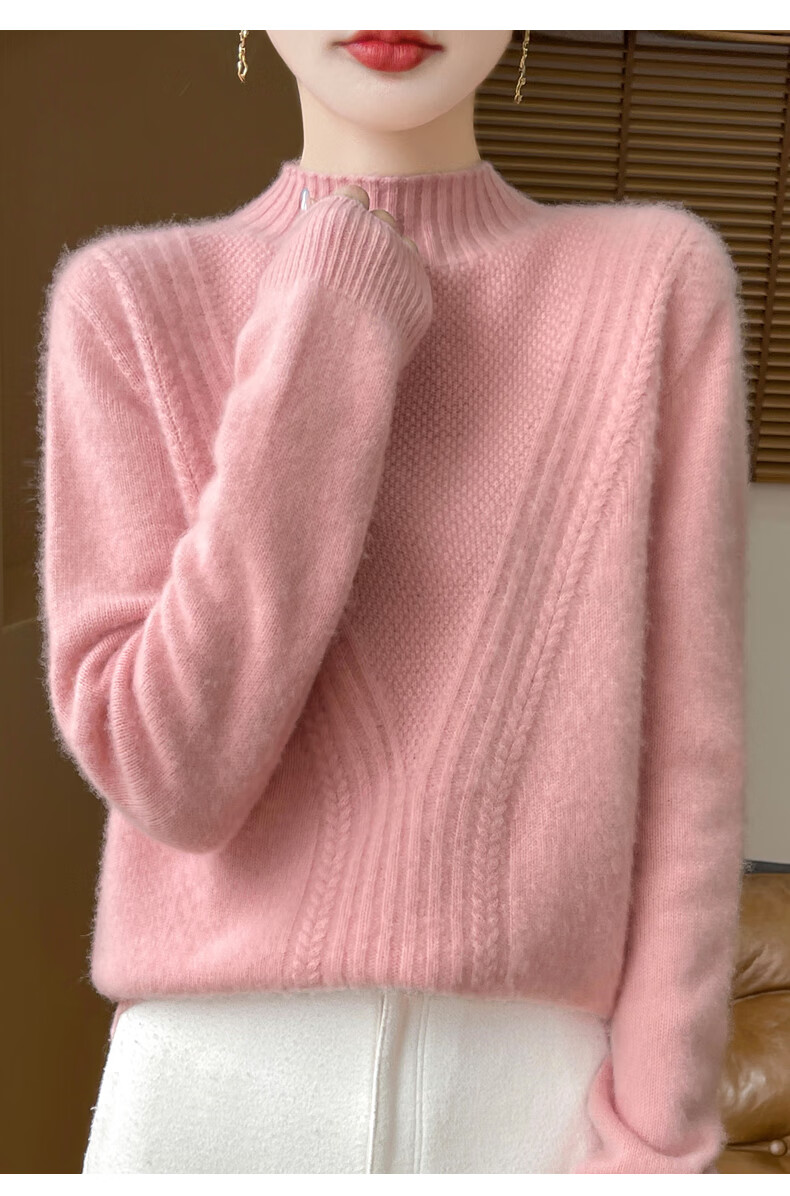 香影芬100%纯羊毛衫女套头半高领毛衣加厚扭花时尚秋冬羊毛针织打底衫女 白色 S (建议95斤以内)
