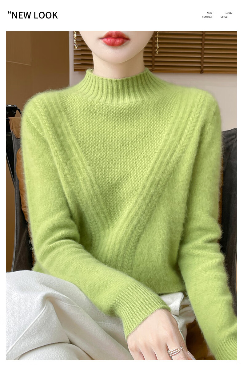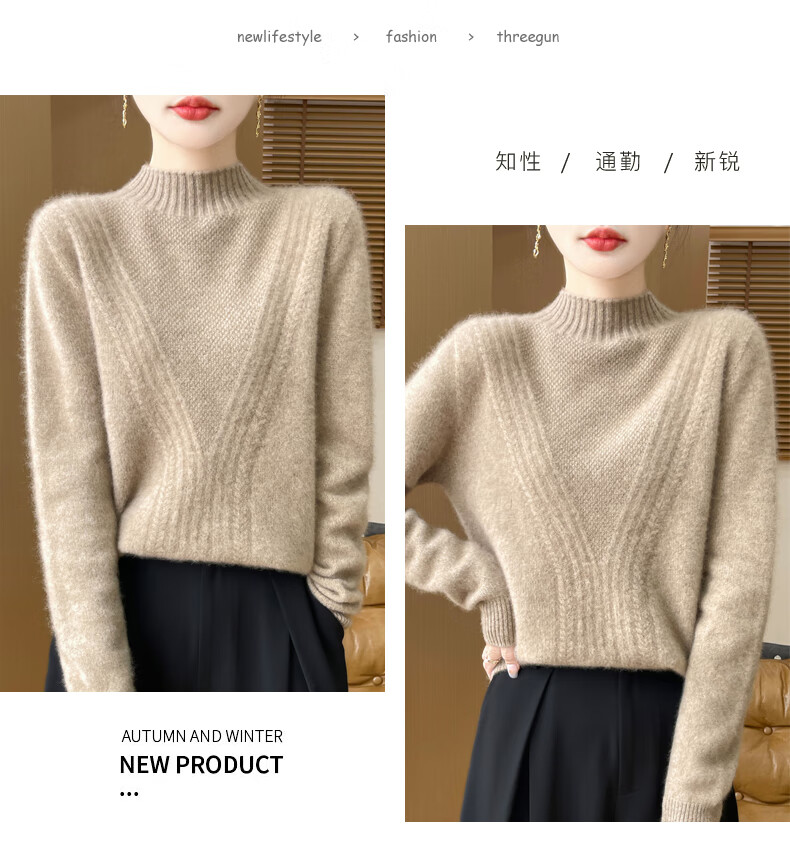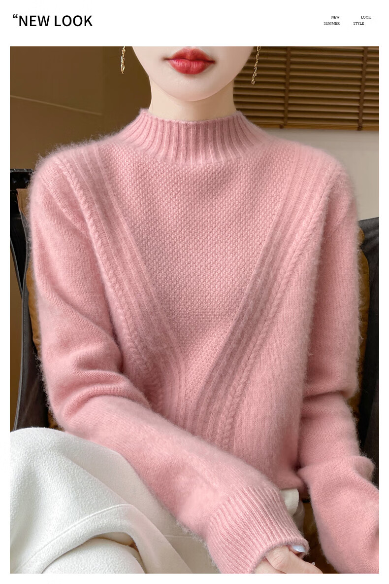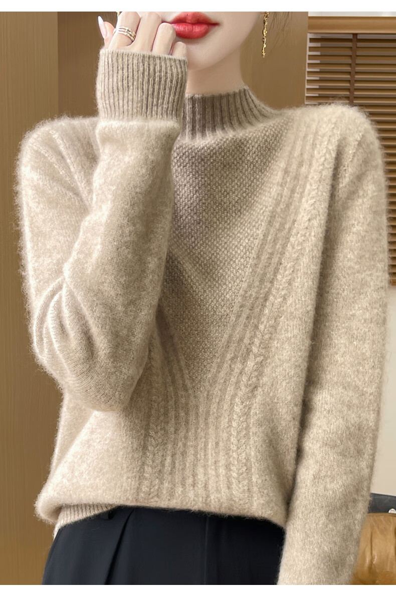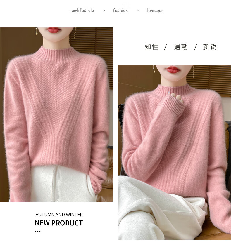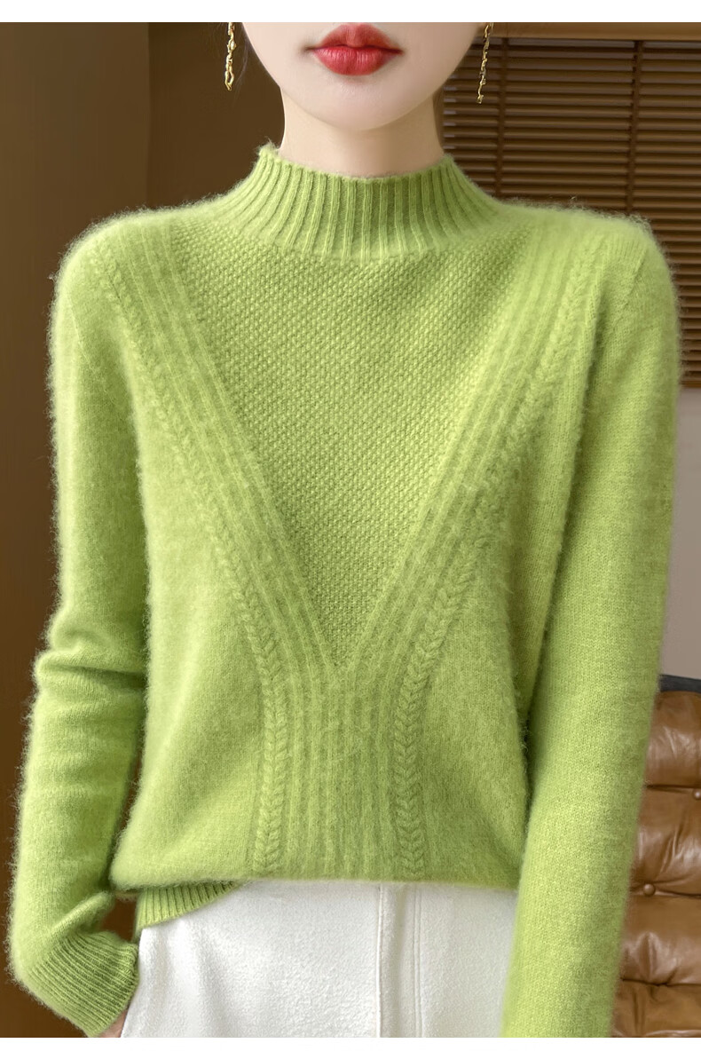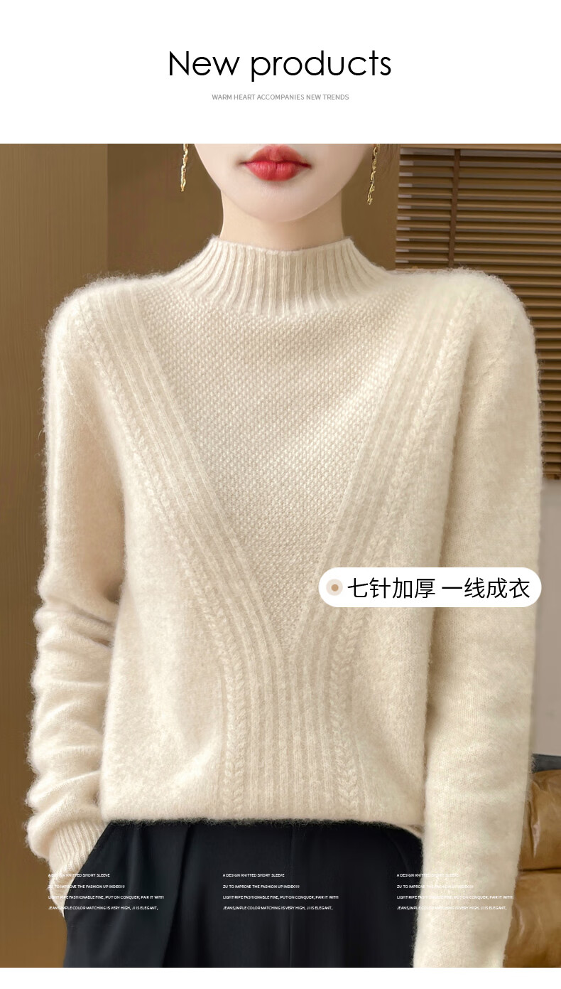 香影芬100%纯羊毛衫女套头半高领毛衣加厚扭花时尚秋冬羊毛针织打底衫女 白色 S (建议95斤以内)