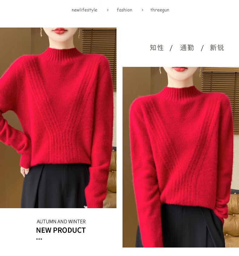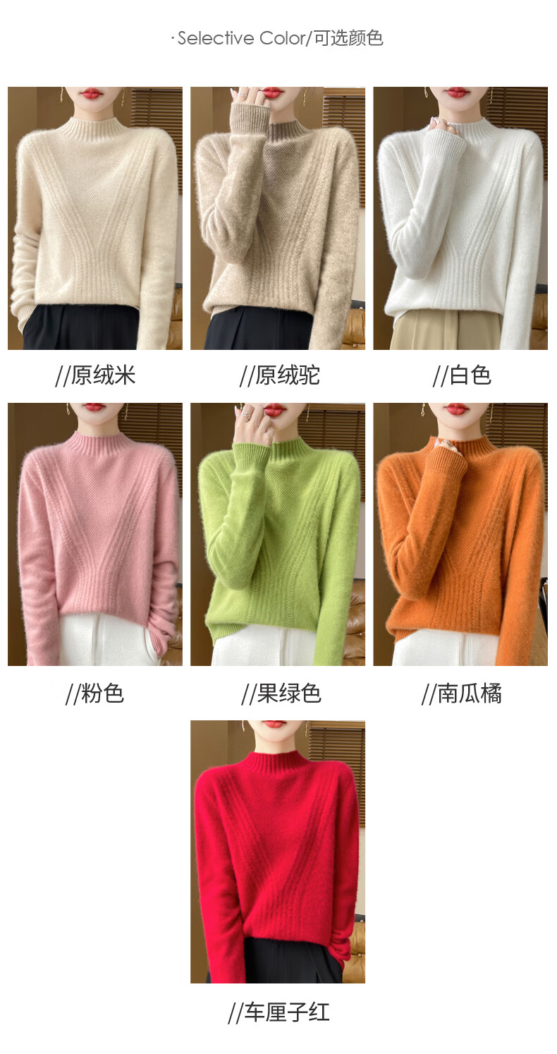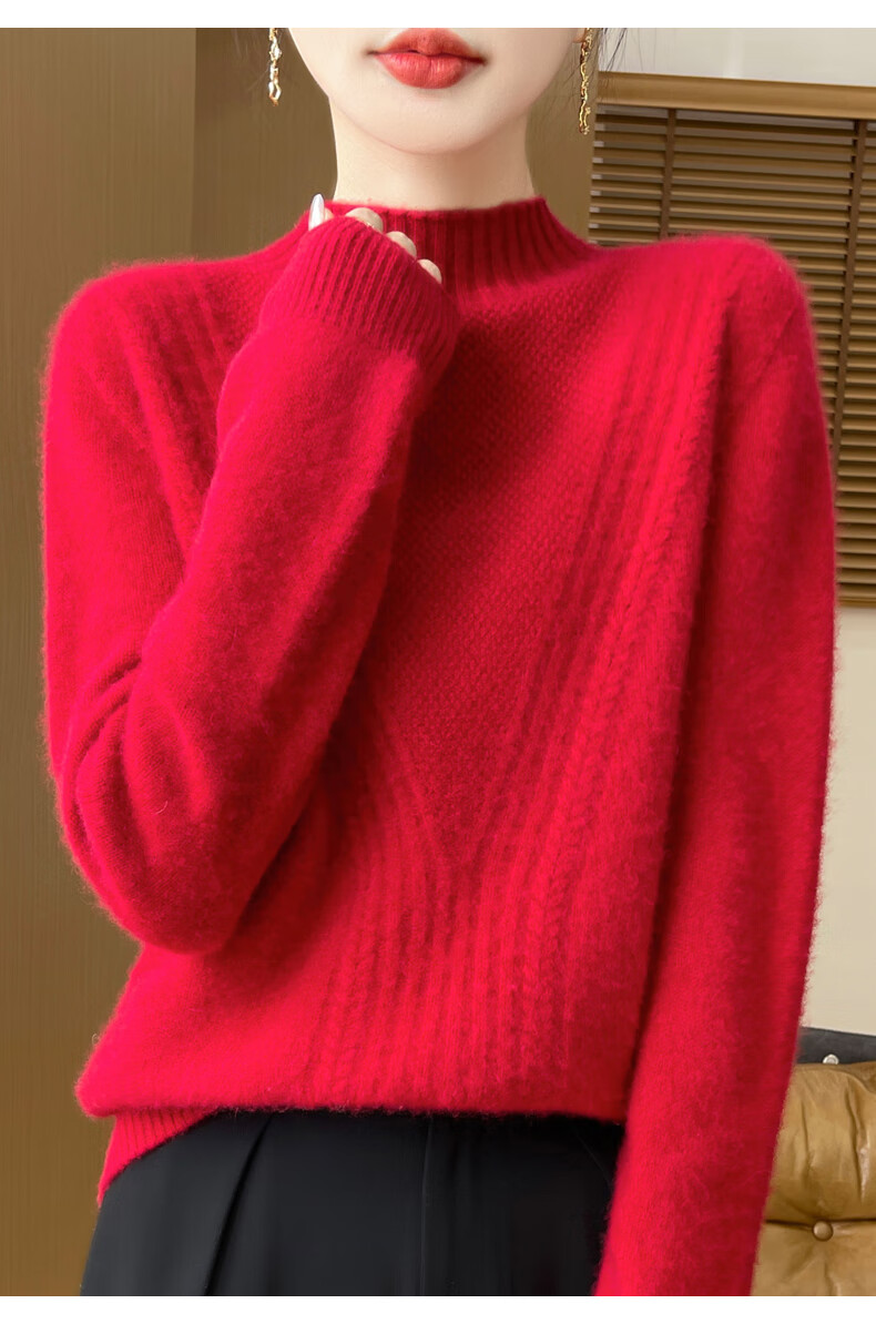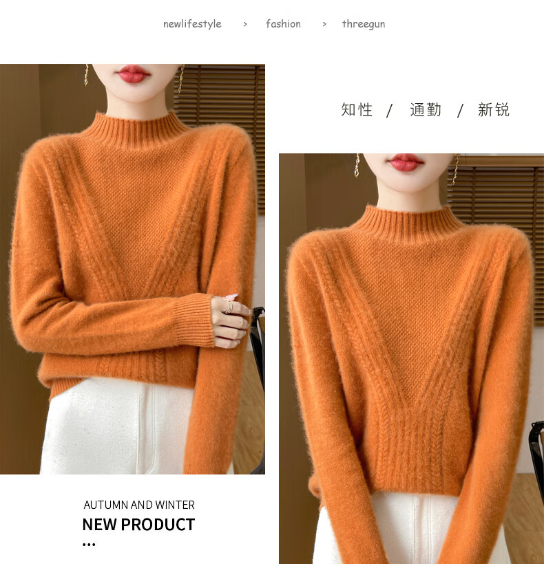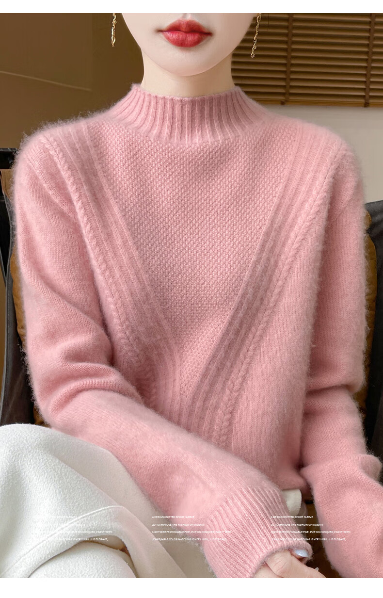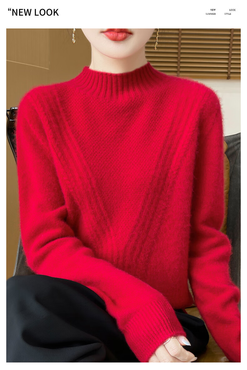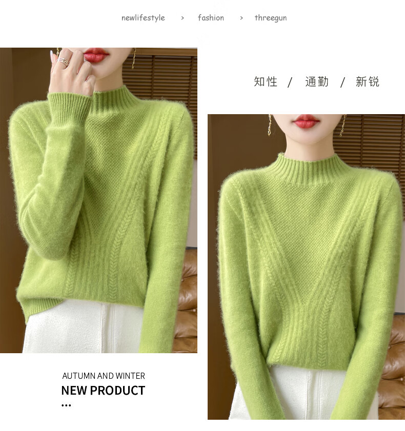 香影芬100%纯羊毛衫女套头半高领毛衣加厚扭花时尚秋冬羊毛针织打底衫女 白色 S (建议95斤以内)