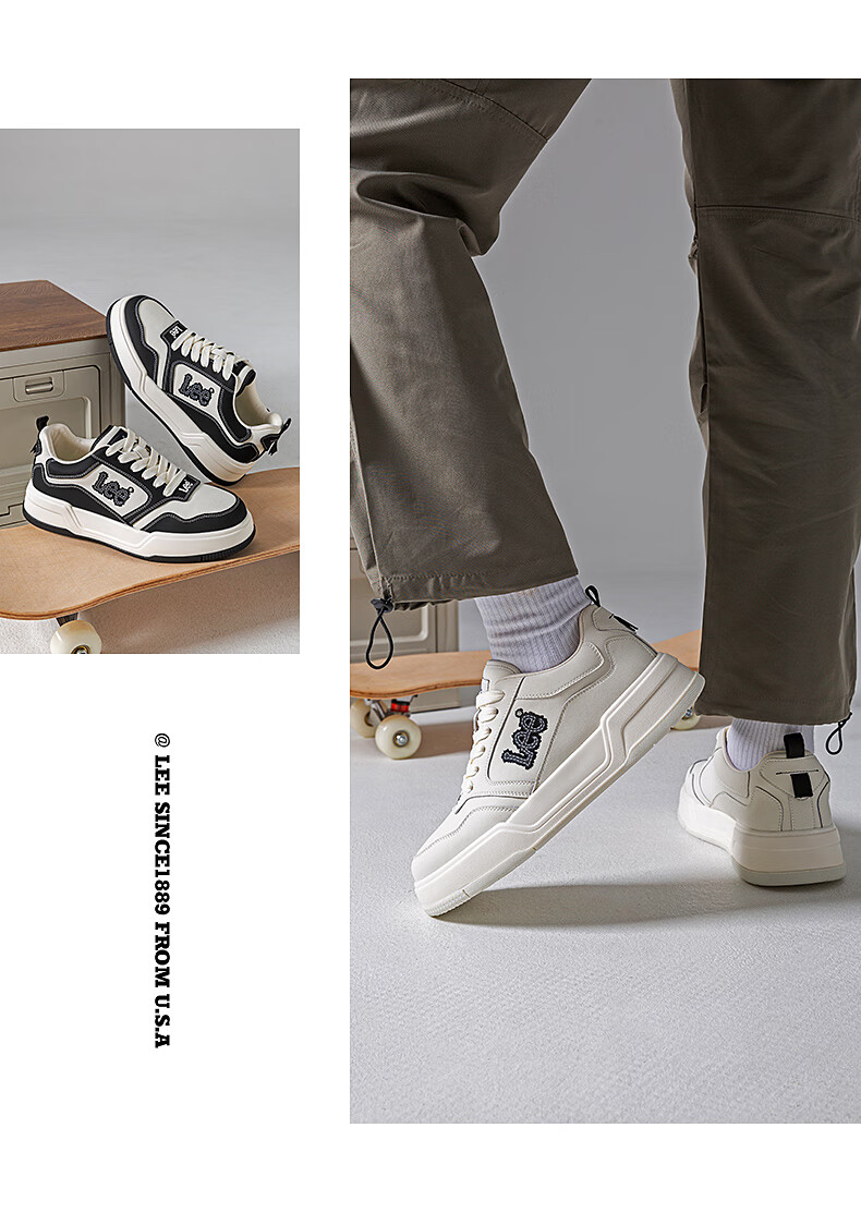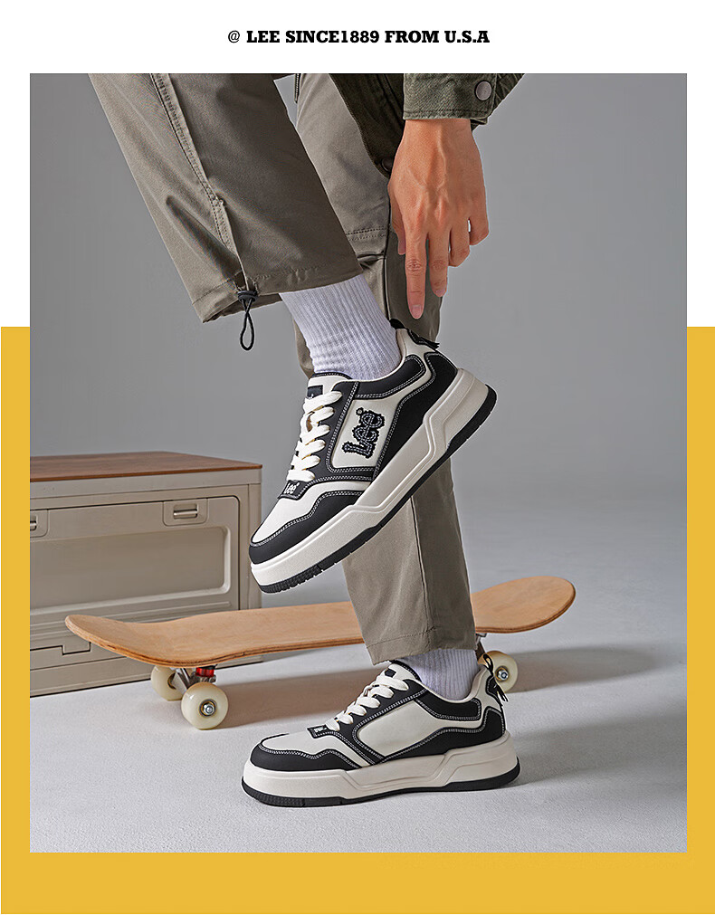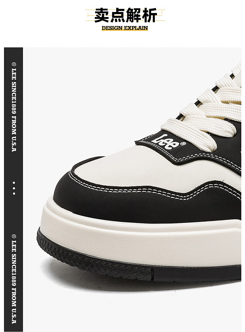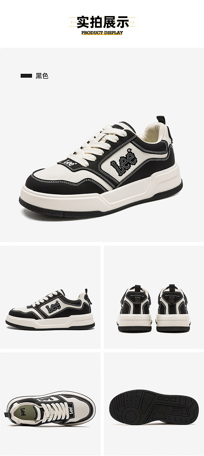 Lee男鞋复古潮流鞋子黑白熊猫板鞋百搭小白鞋男士休闲鞋厚底运动鞋男 黑色 41 【偏大/请拍小一码】