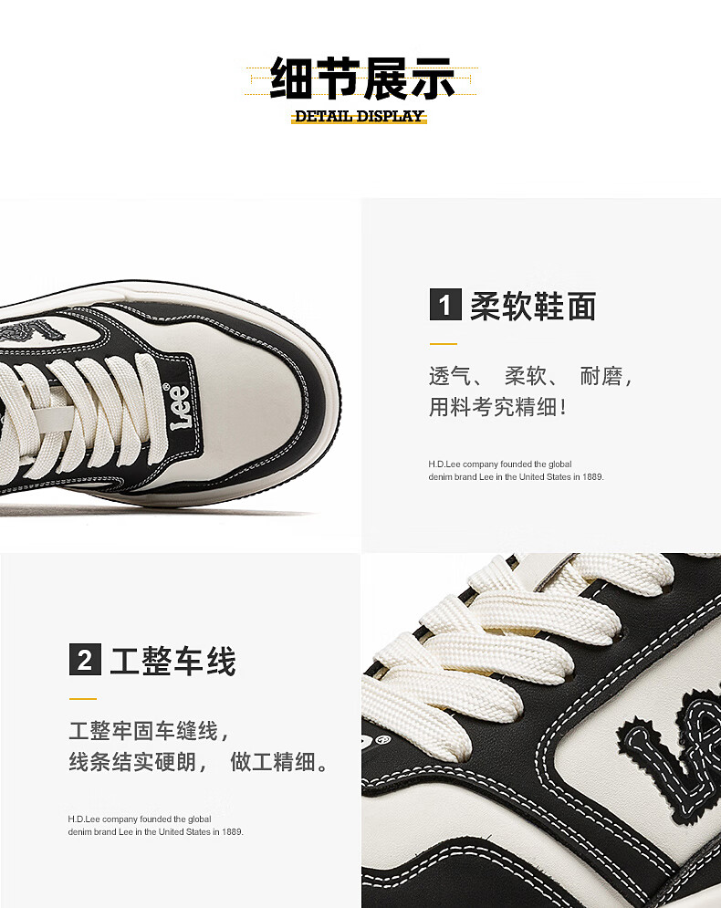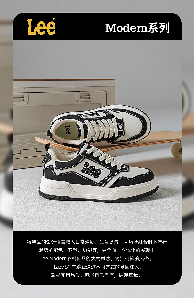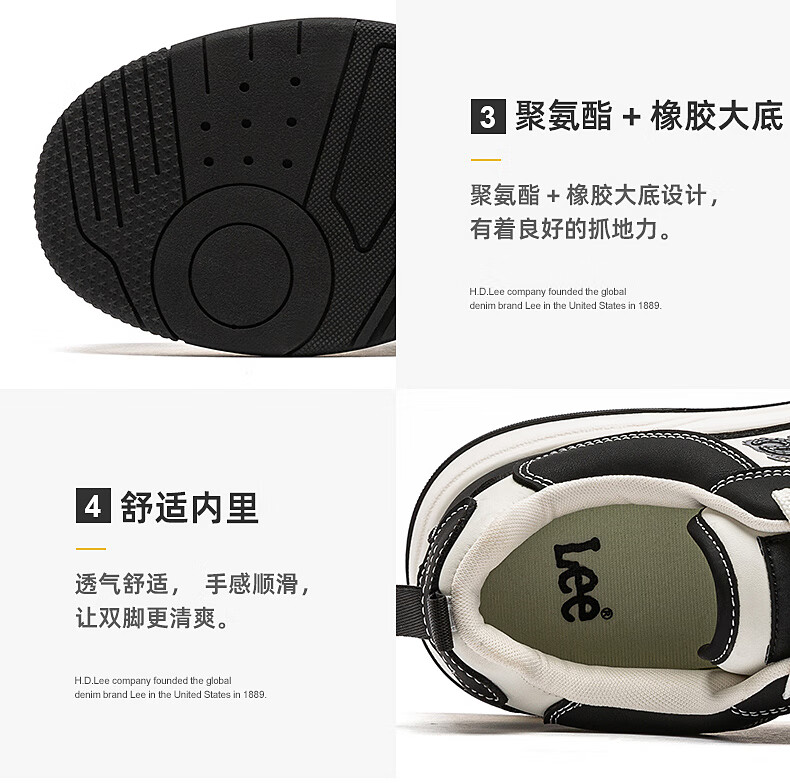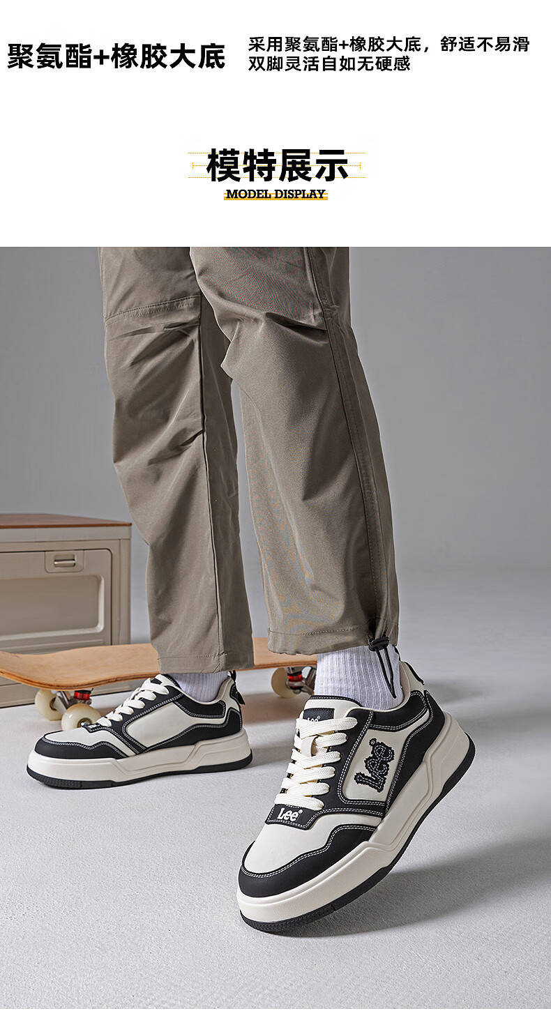 Lee男鞋复古潮流鞋子黑白熊猫板鞋百搭小白鞋男士休闲鞋厚底运动鞋男 黑色 41 【偏大/请拍小一码】