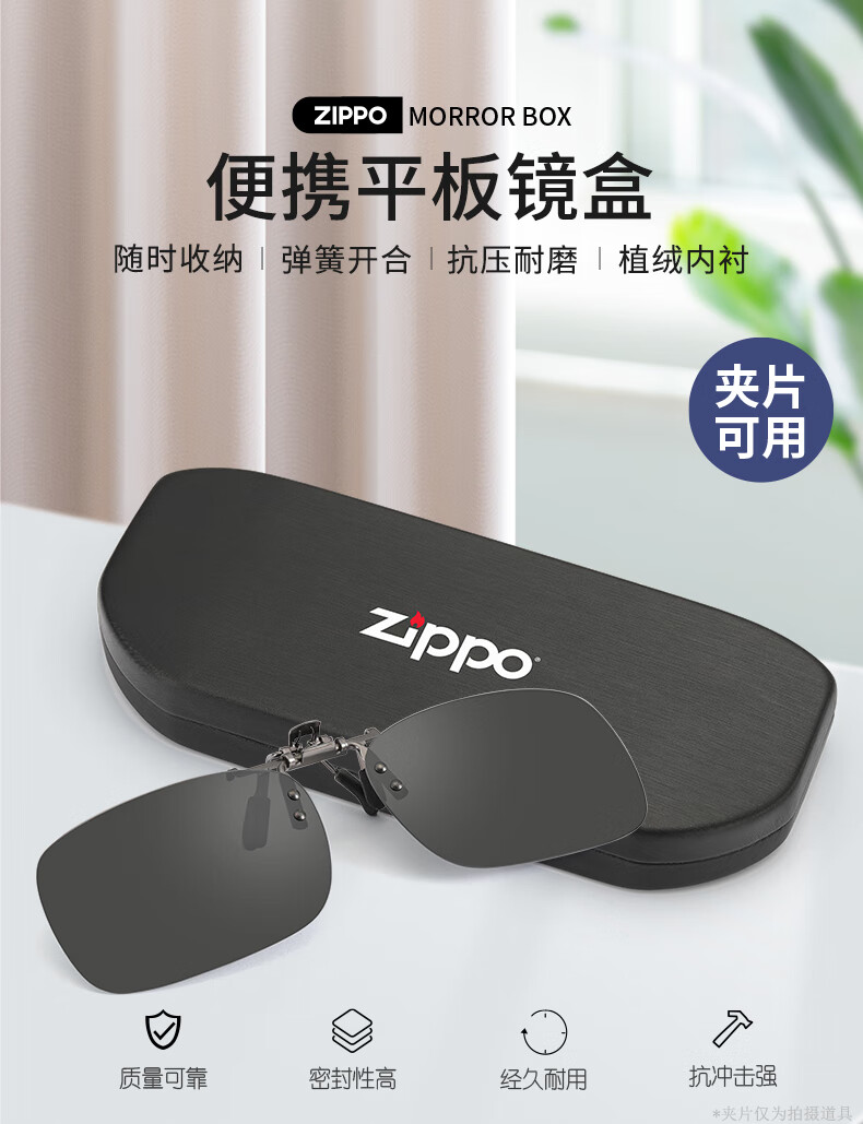 ZIPPO美国超薄便携近视太阳镜夹片磁吸套镜金属皮革抗压眼镜盒 9800