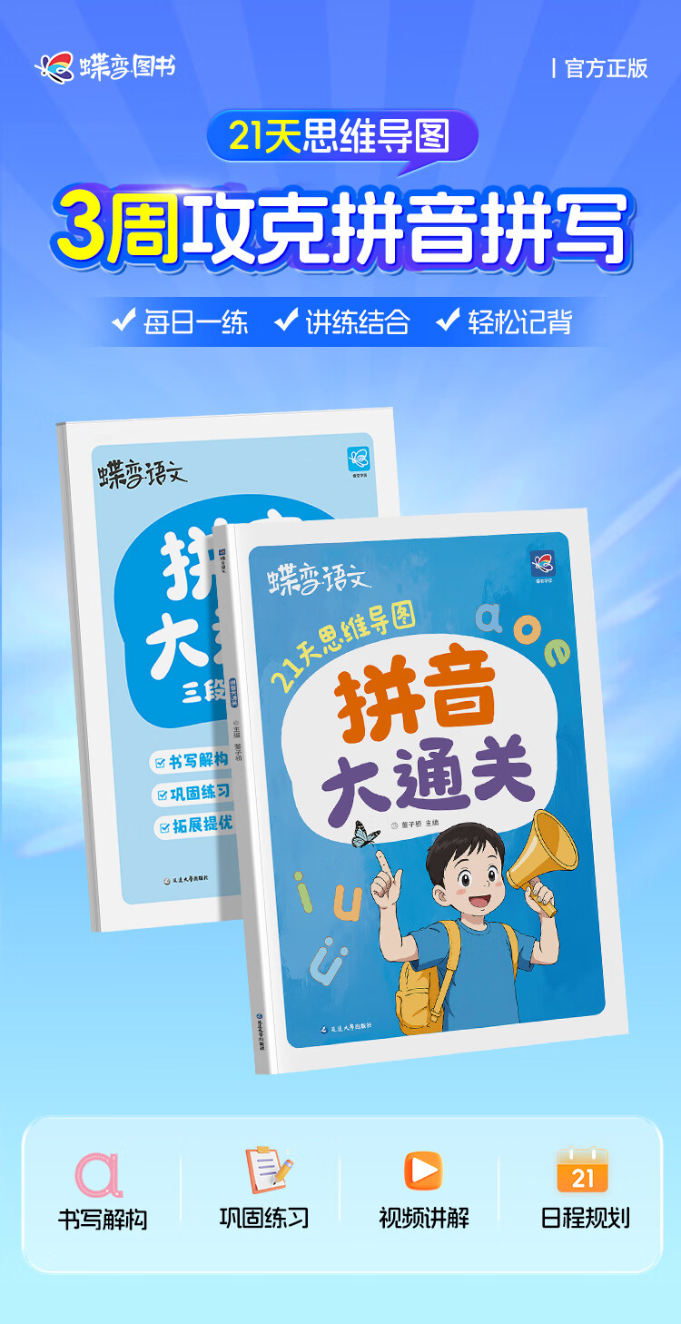 蝶变学园 幼小衔接拼音专项训练 3-8岁幼小衔接拼音拼读训练神器 21天思维导图拼音大通关 拼音练习册拼音本拼写本一年级学前早教启蒙 全国通用