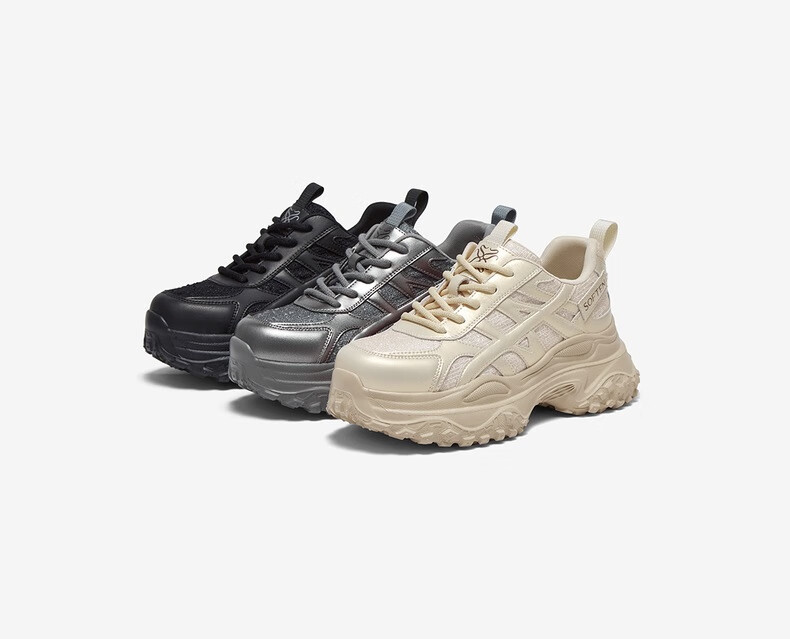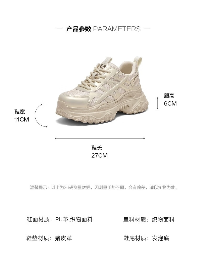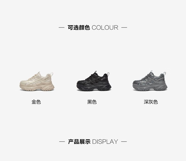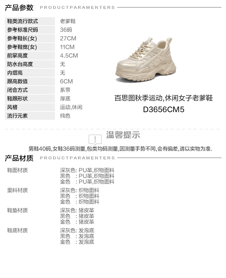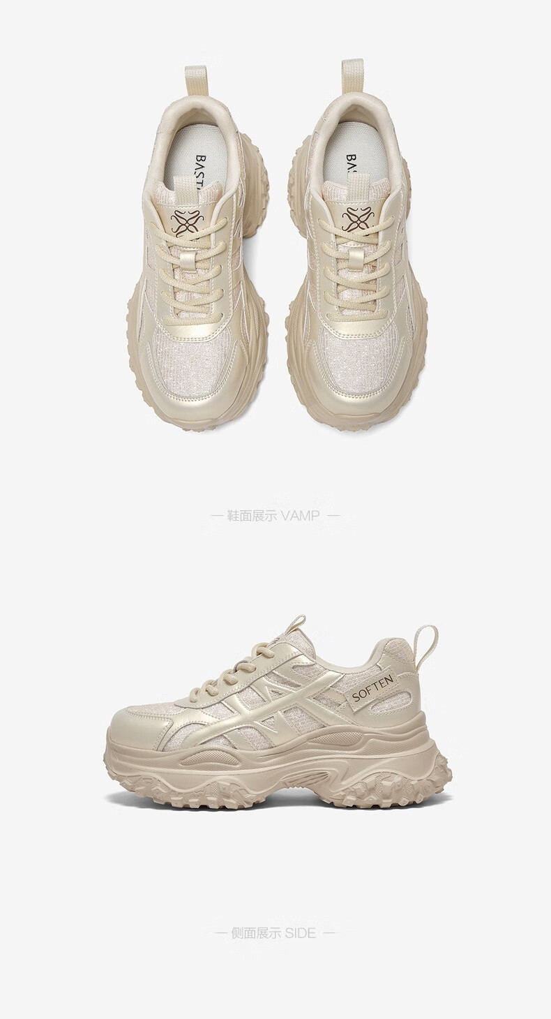 百思图2025秋季新款老爹鞋时尚休闲运动厚底增高女鞋鞋D3656CM5 金色 37
