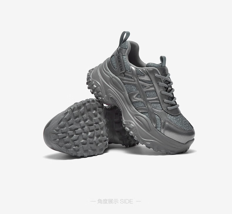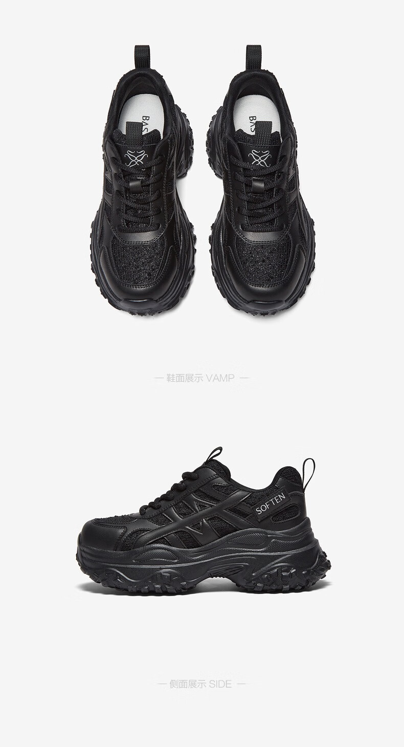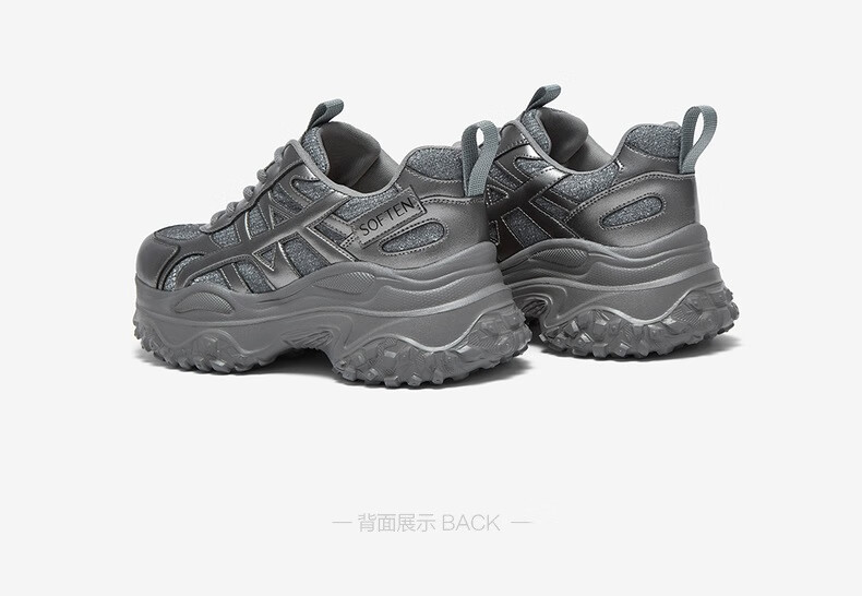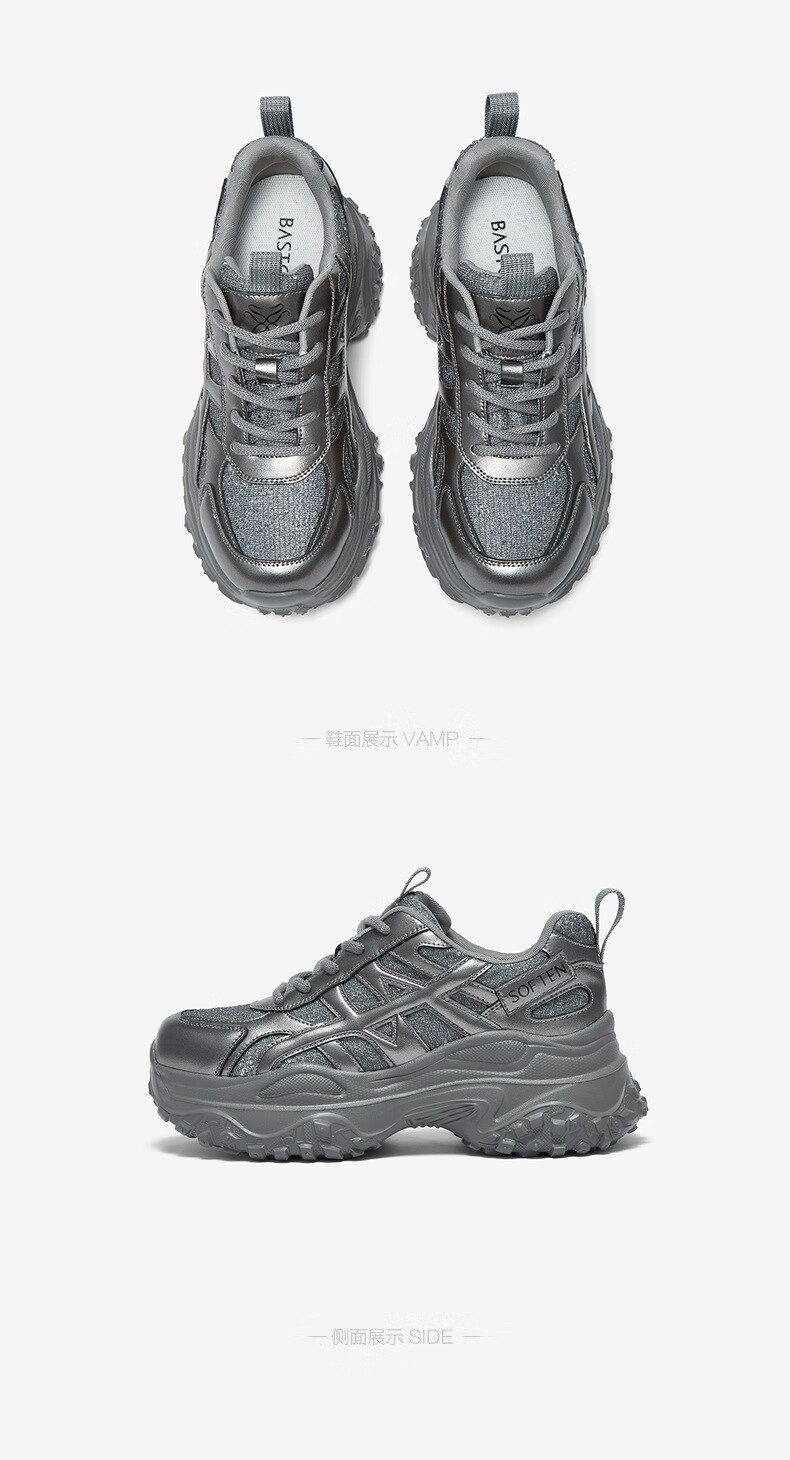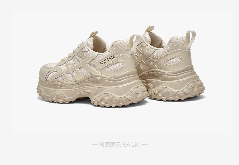 百思图2025秋季新款老爹鞋时尚休闲运动厚底增高女鞋鞋D3656CM5 金色 37