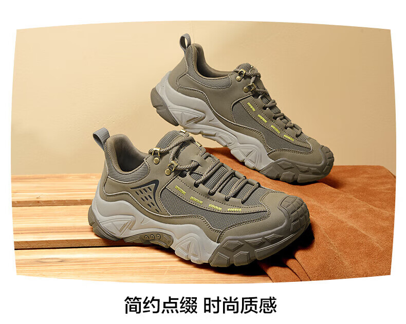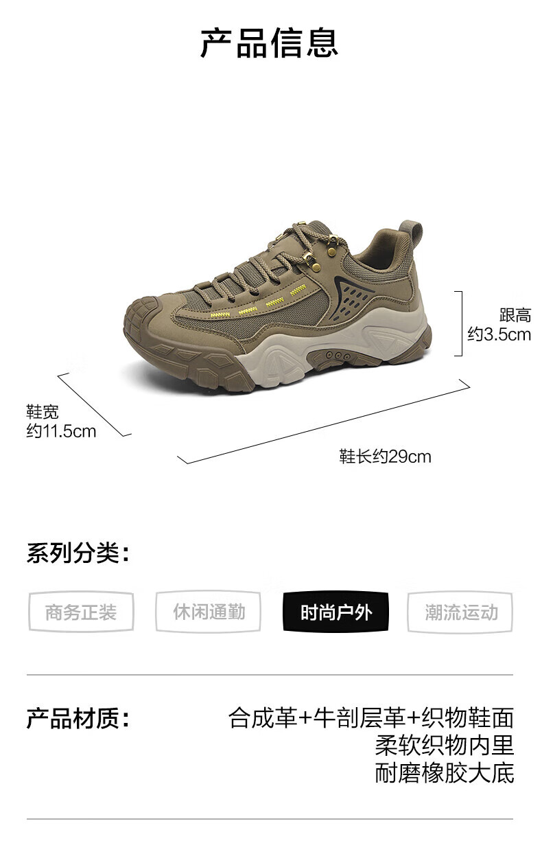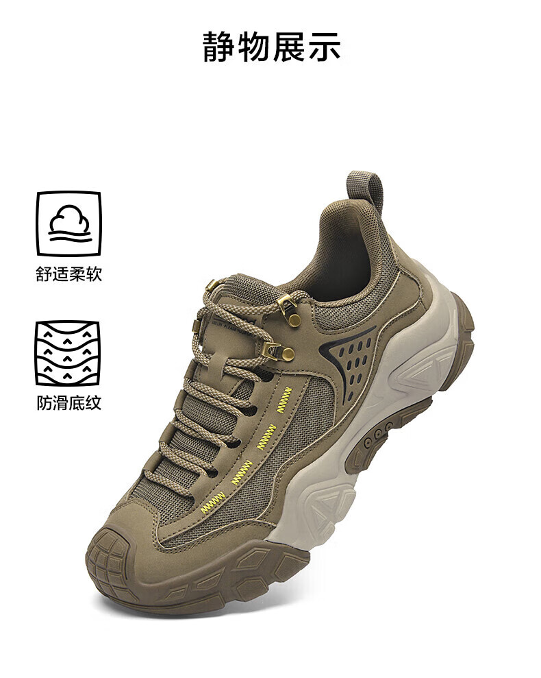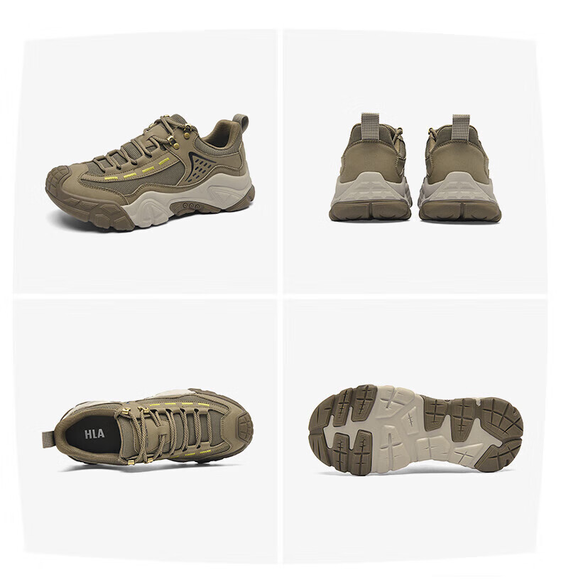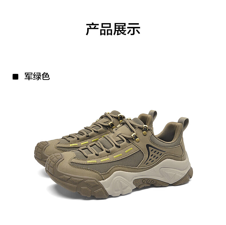 海澜之家(HLA)男鞋2025秋季新款时尚高街透气工装鞋舒适柔软防滑拼接休闲鞋 军绿色 38