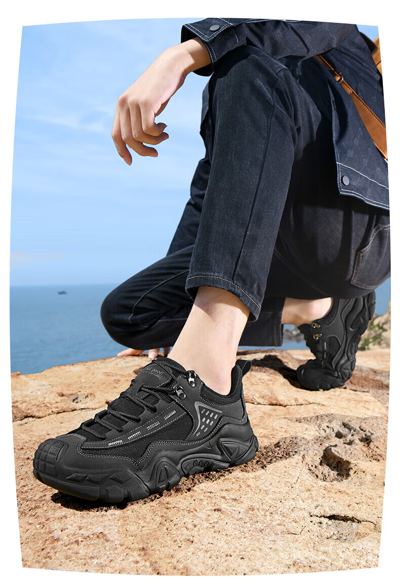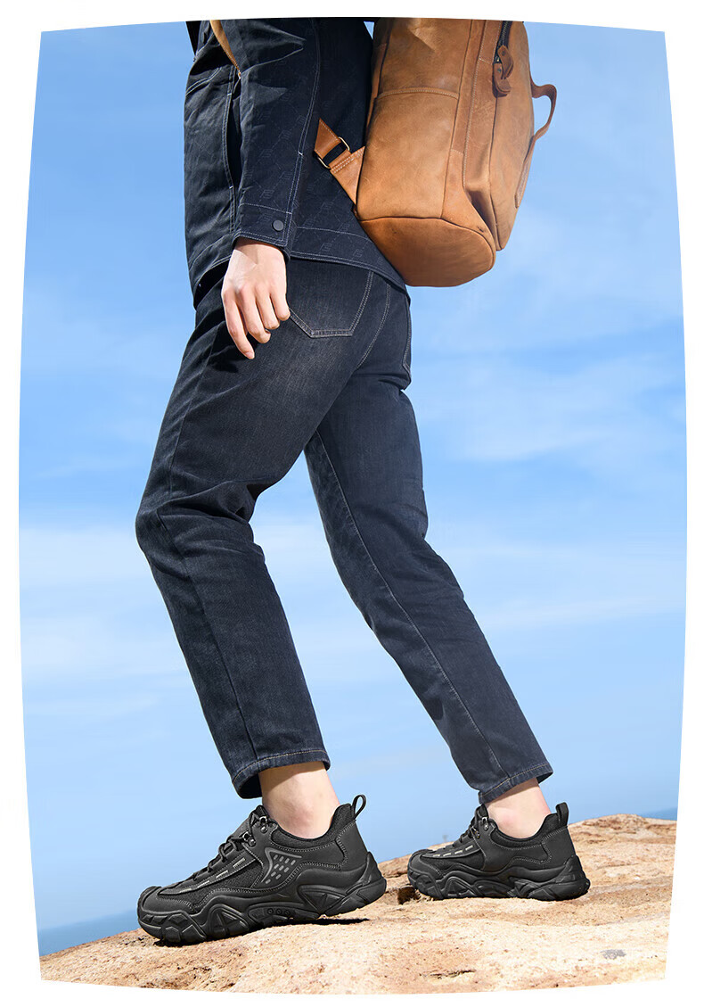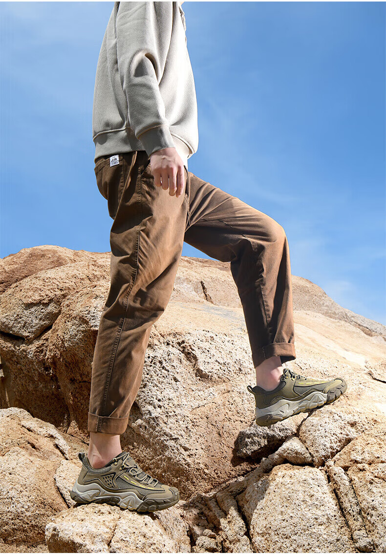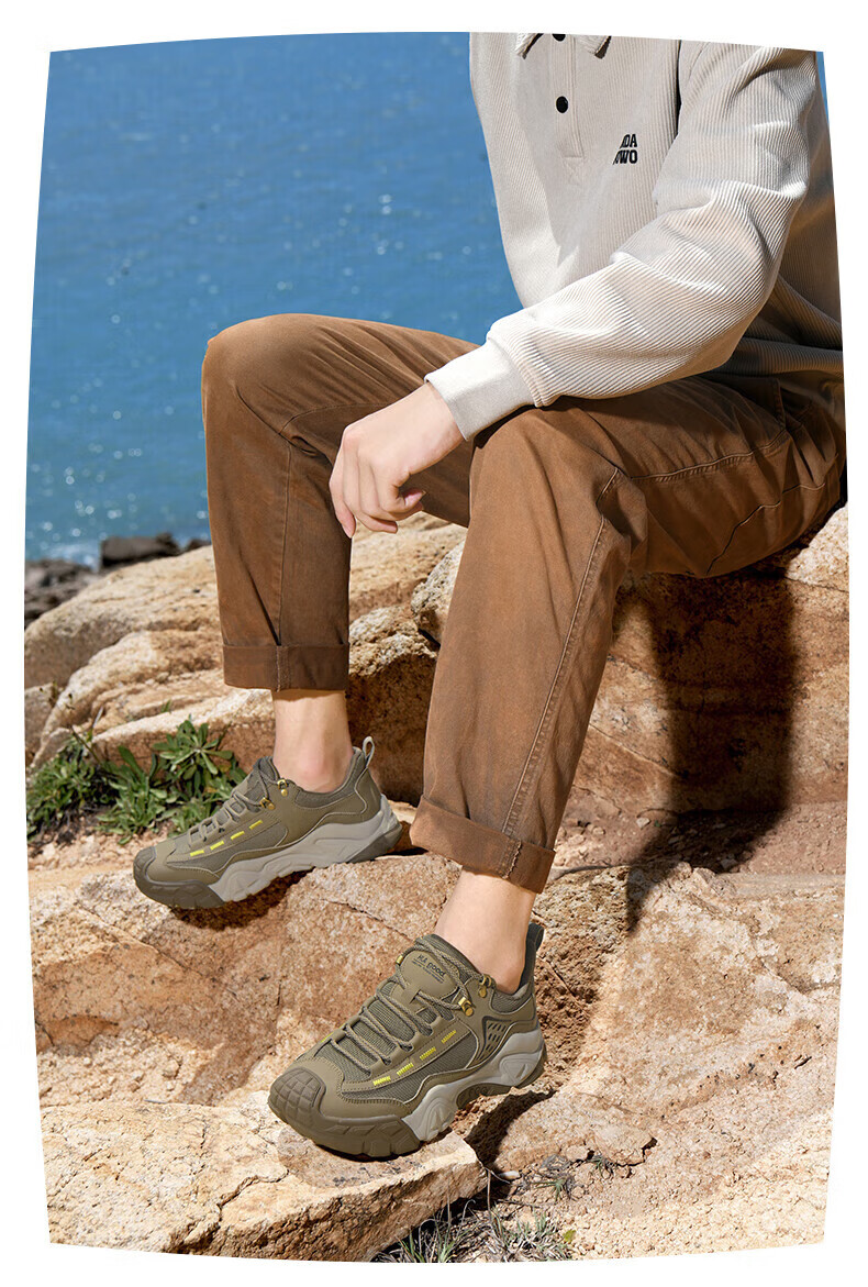 海澜之家(HLA)男鞋2025秋季新款时尚高街透气工装鞋舒适柔软防滑拼接休闲鞋 军绿色 38
