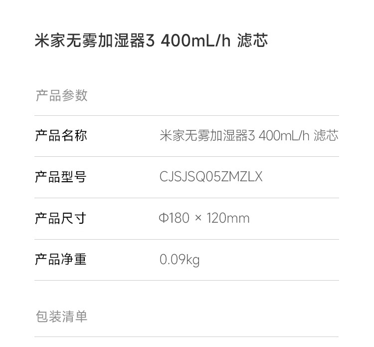 米家无雾加湿器3 400 mL-h 滤芯 米家无雾加湿器3 400 mL-h 滤芯