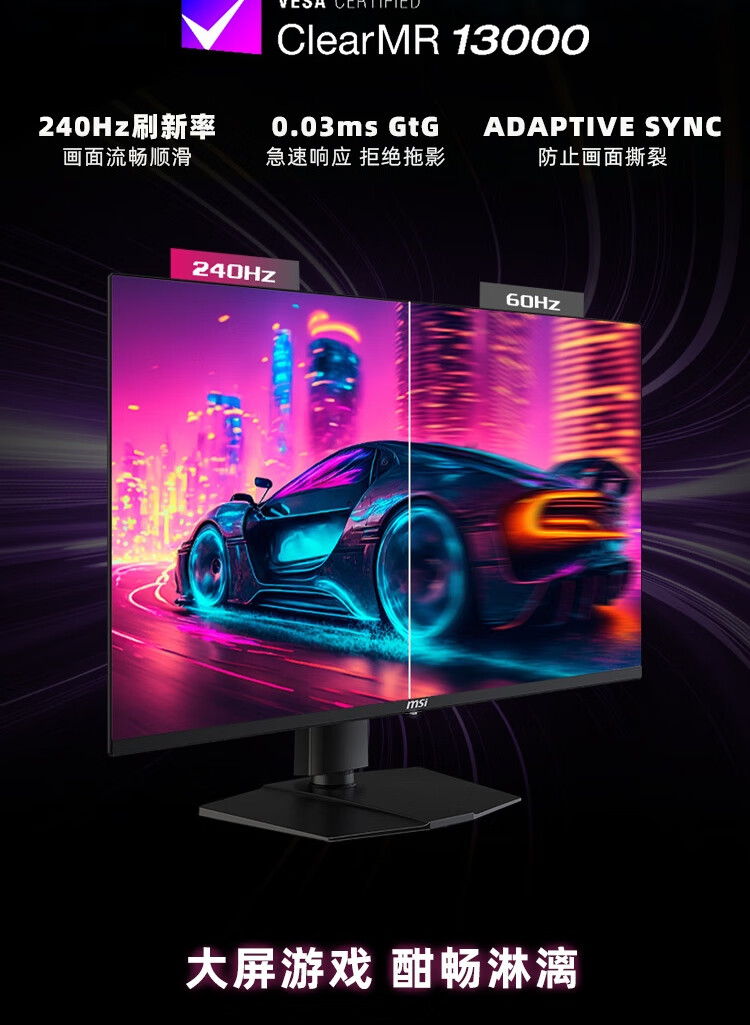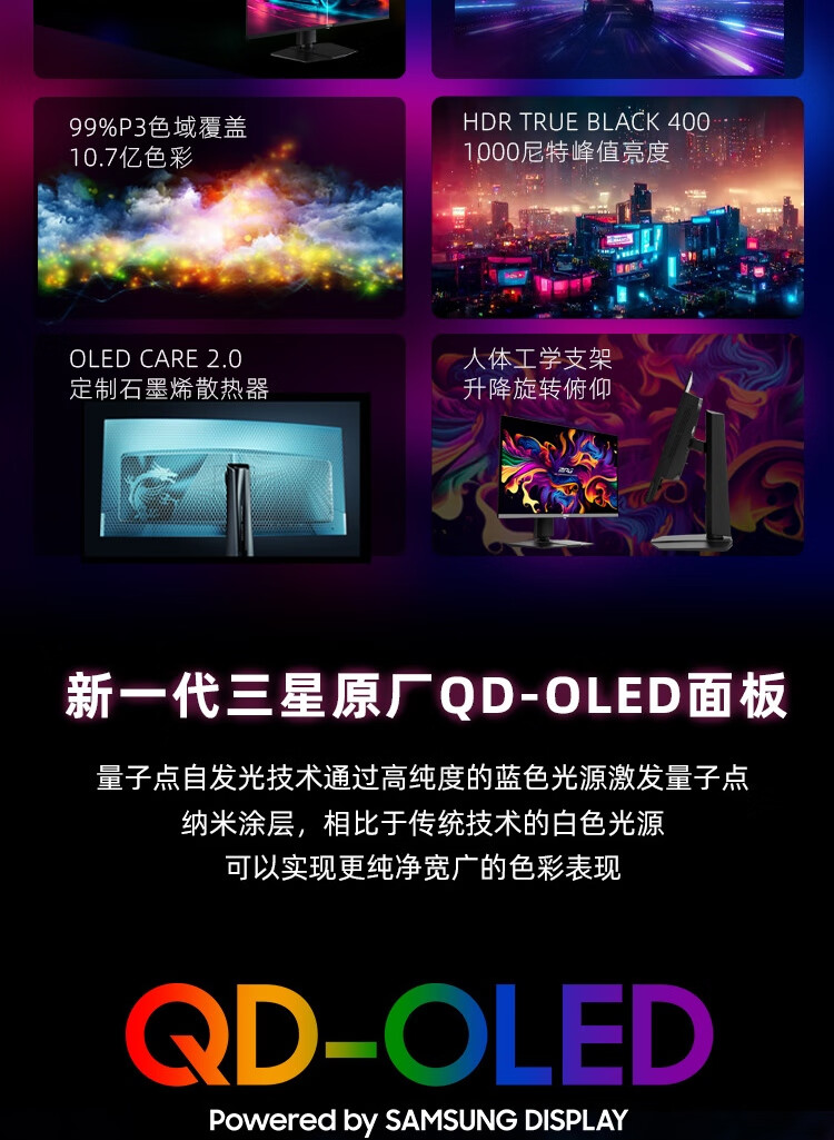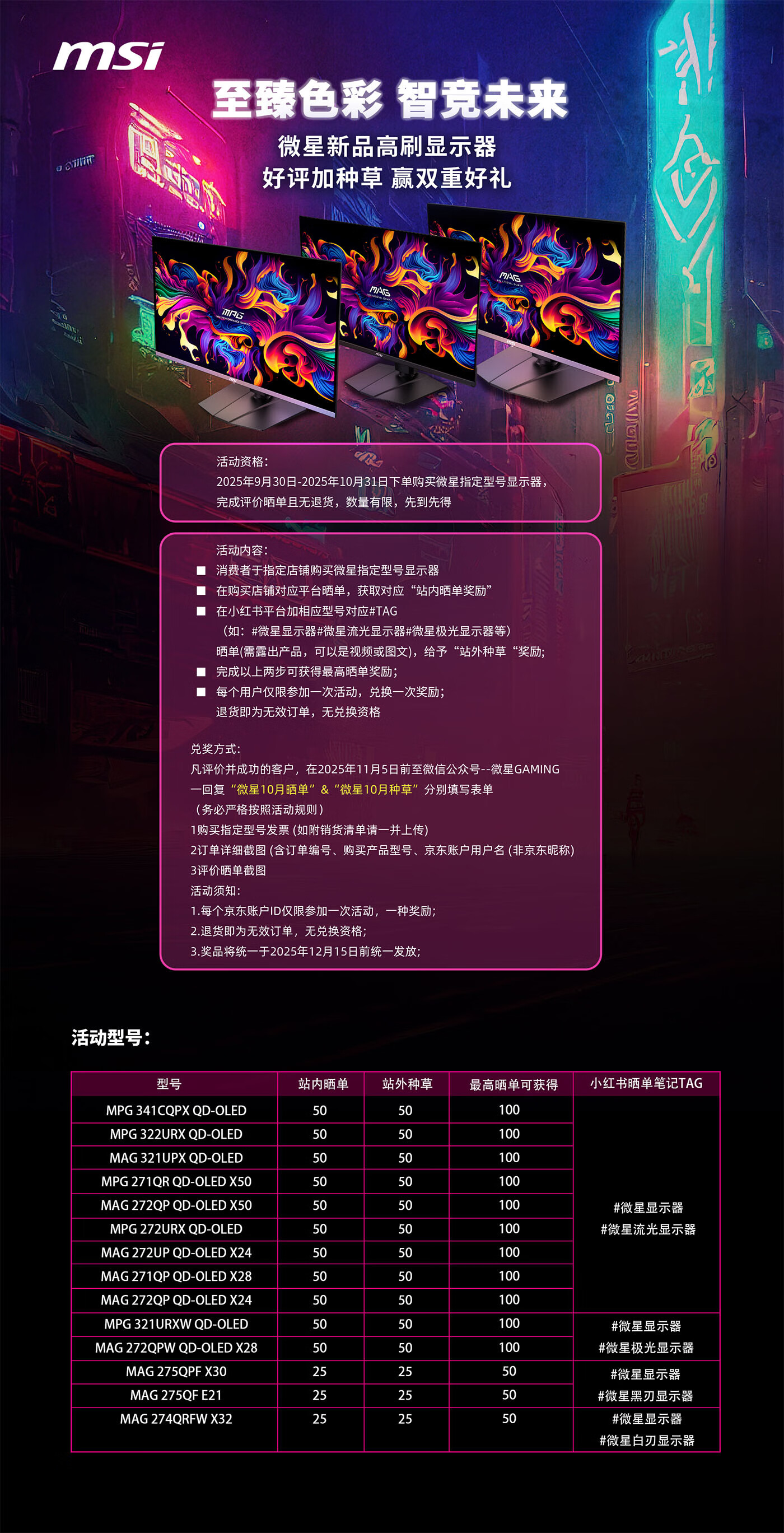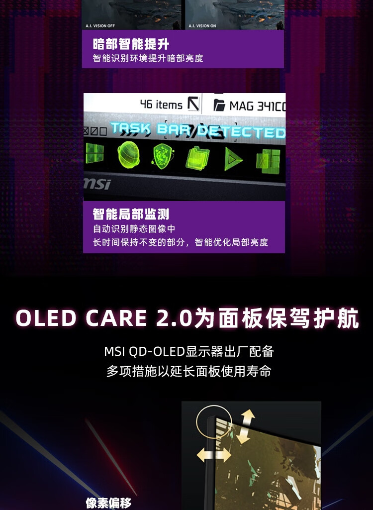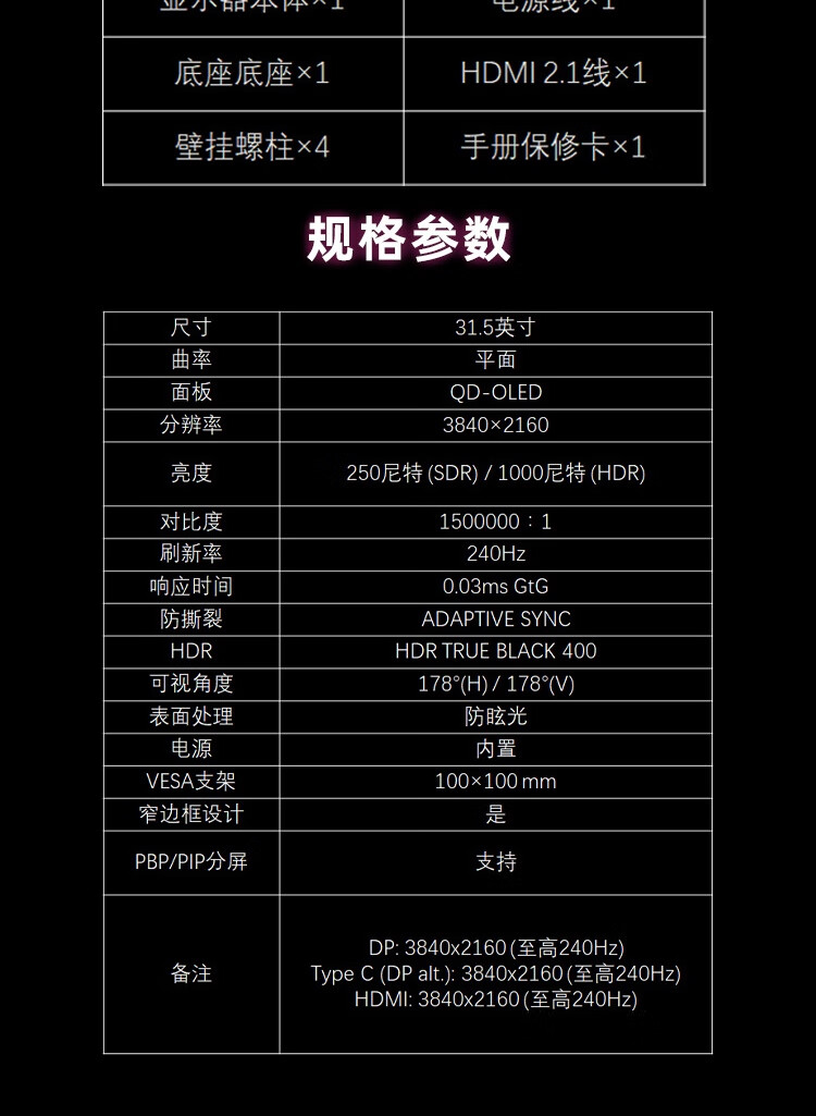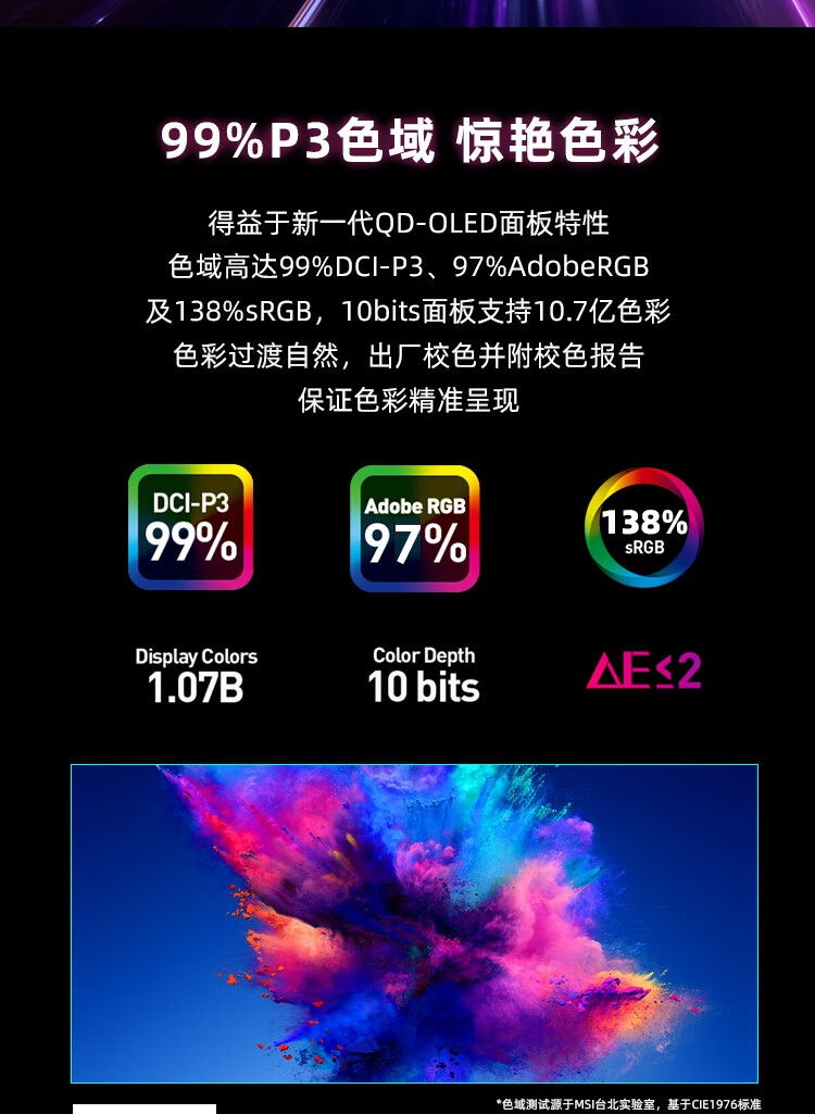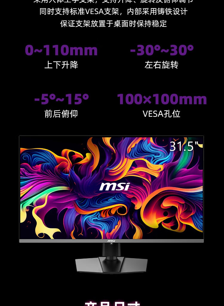 微星(MSI)31.5英寸 4K 量子点 OLED 240Hz 0.03ms(GTG) HDR400 游戏电竞显示器屏 MAG 321UPX QD-OLED