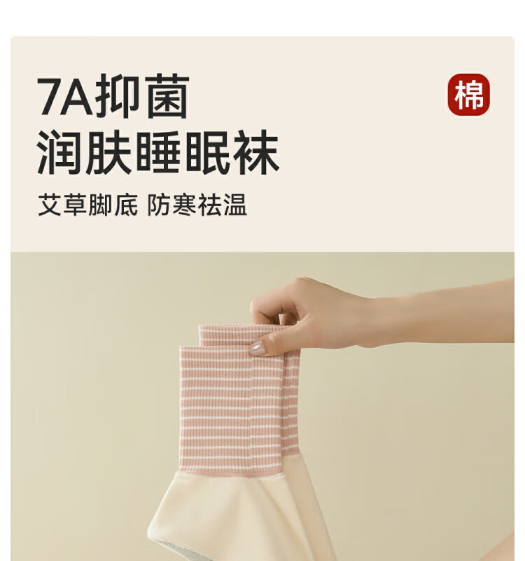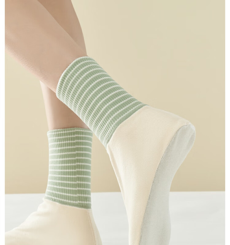 睡觉穿的袜子秋季艾草空调袜睡眠专用护脚保暖居家地板袜套 混色 【2双装】绿色+卡其 2双 均码 舒心睡眠/夏季空调袜
