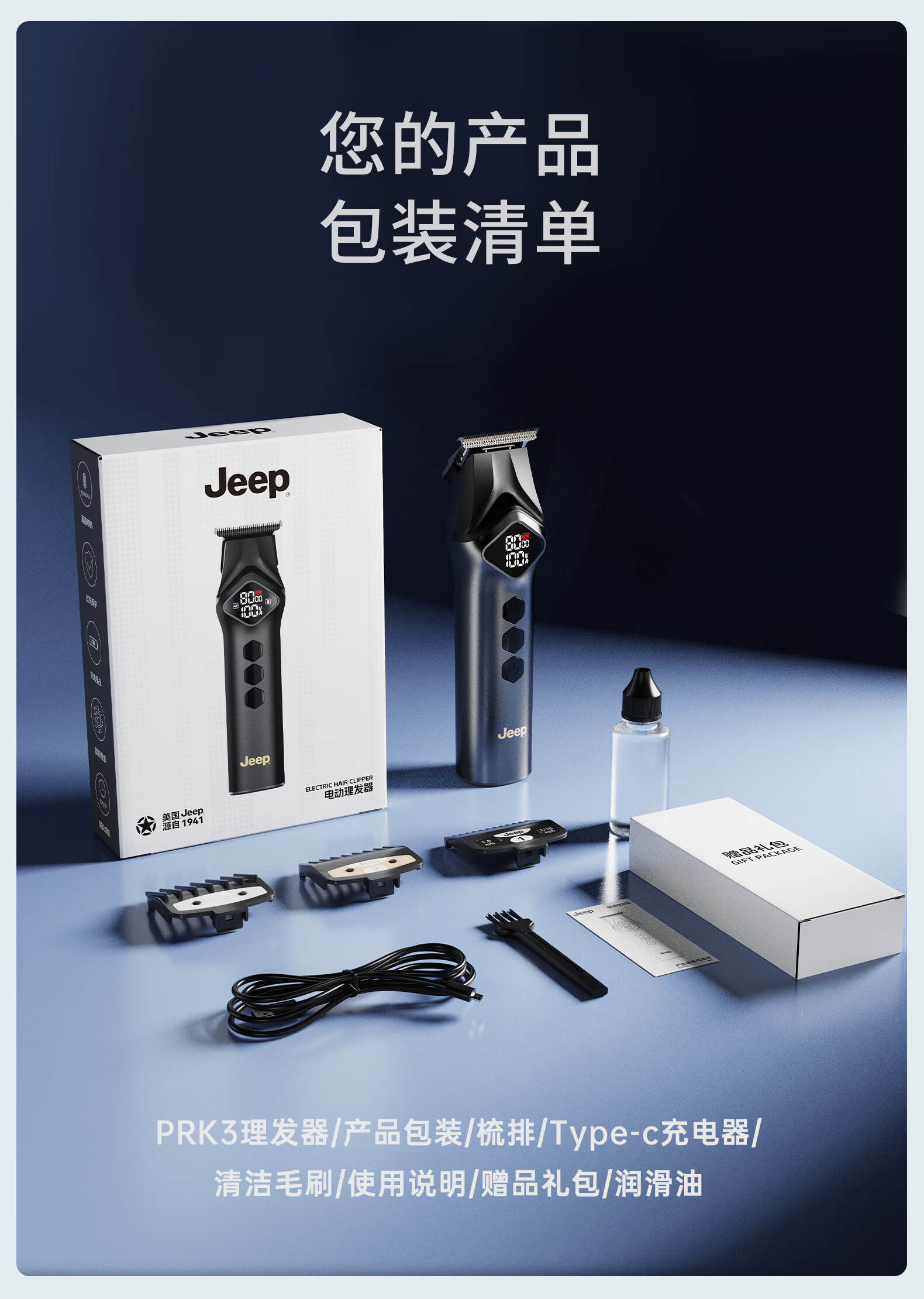 JEEP吉普家用理发器全家通用理发剪推光头神器