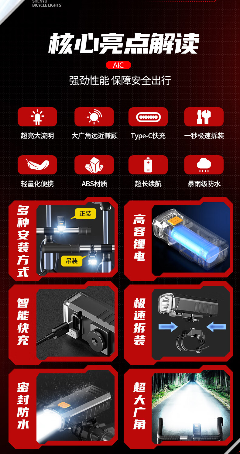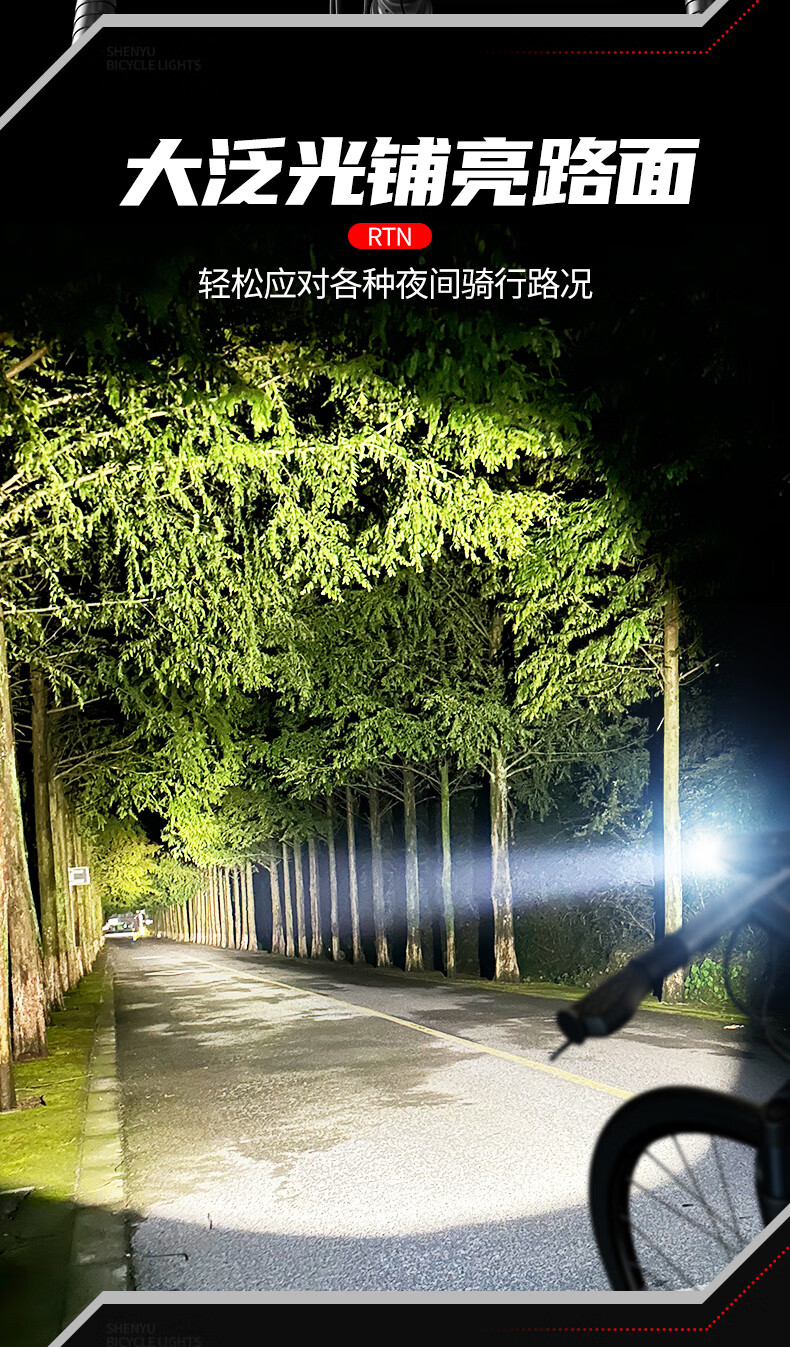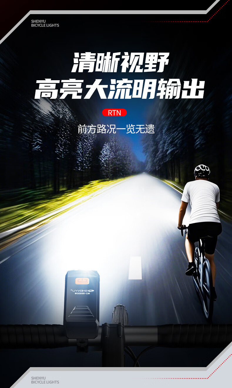 神鱼(SHENYU)自行车夜骑灯山地自行车前灯通用型便携夜骑专用灯强光充电车前灯 豪华99800W-极亮前灯/三档调节