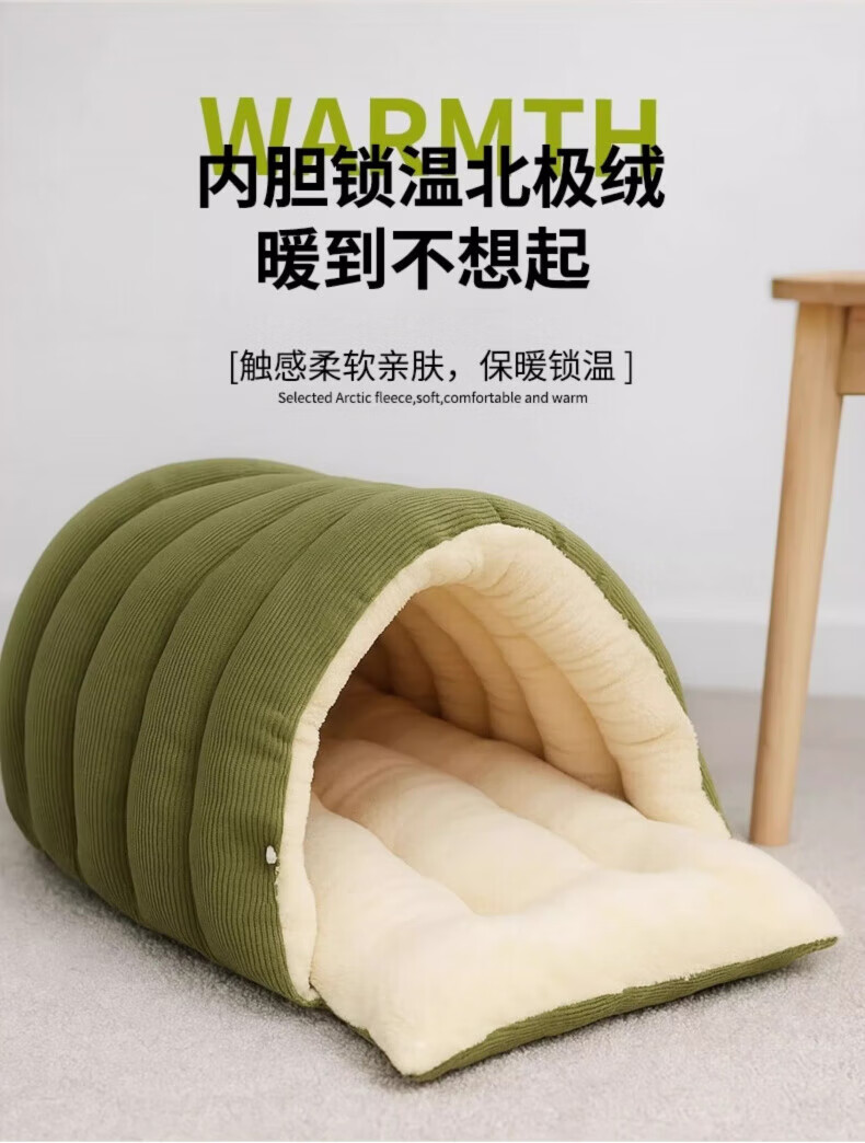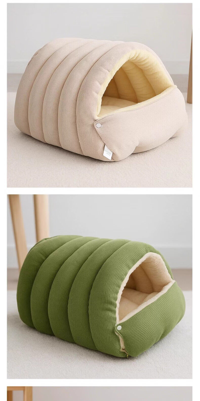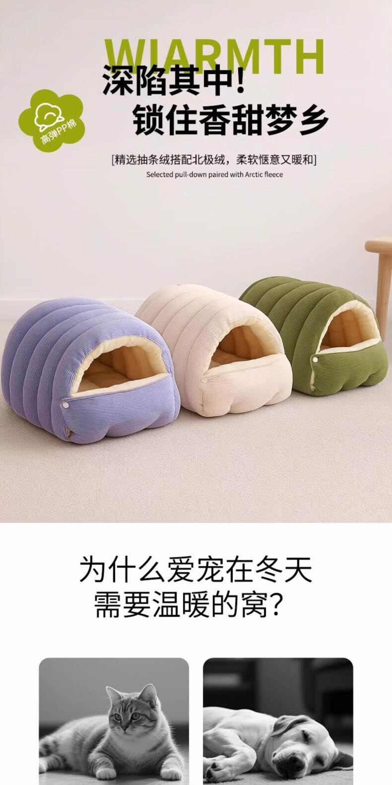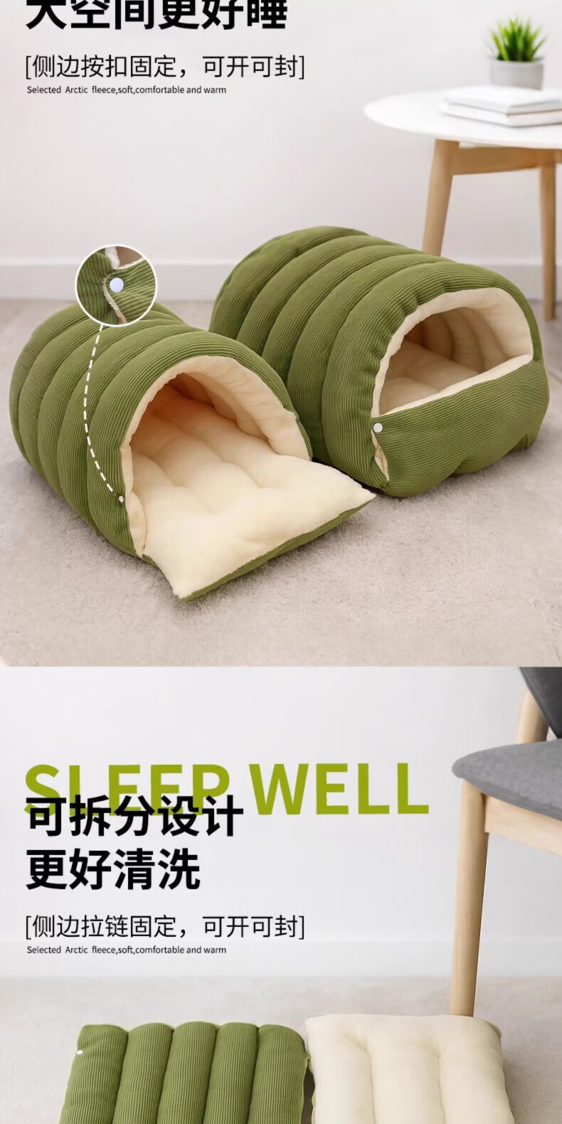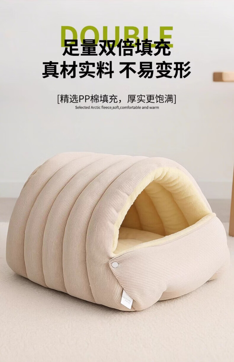 AILUKI日本高端猫窝冬季加厚保暖可拆洗封闭式猫屋宠物安全感睡袋猫狗 浅米色【抽条绒封闭窝】中号(45*30*19cm)