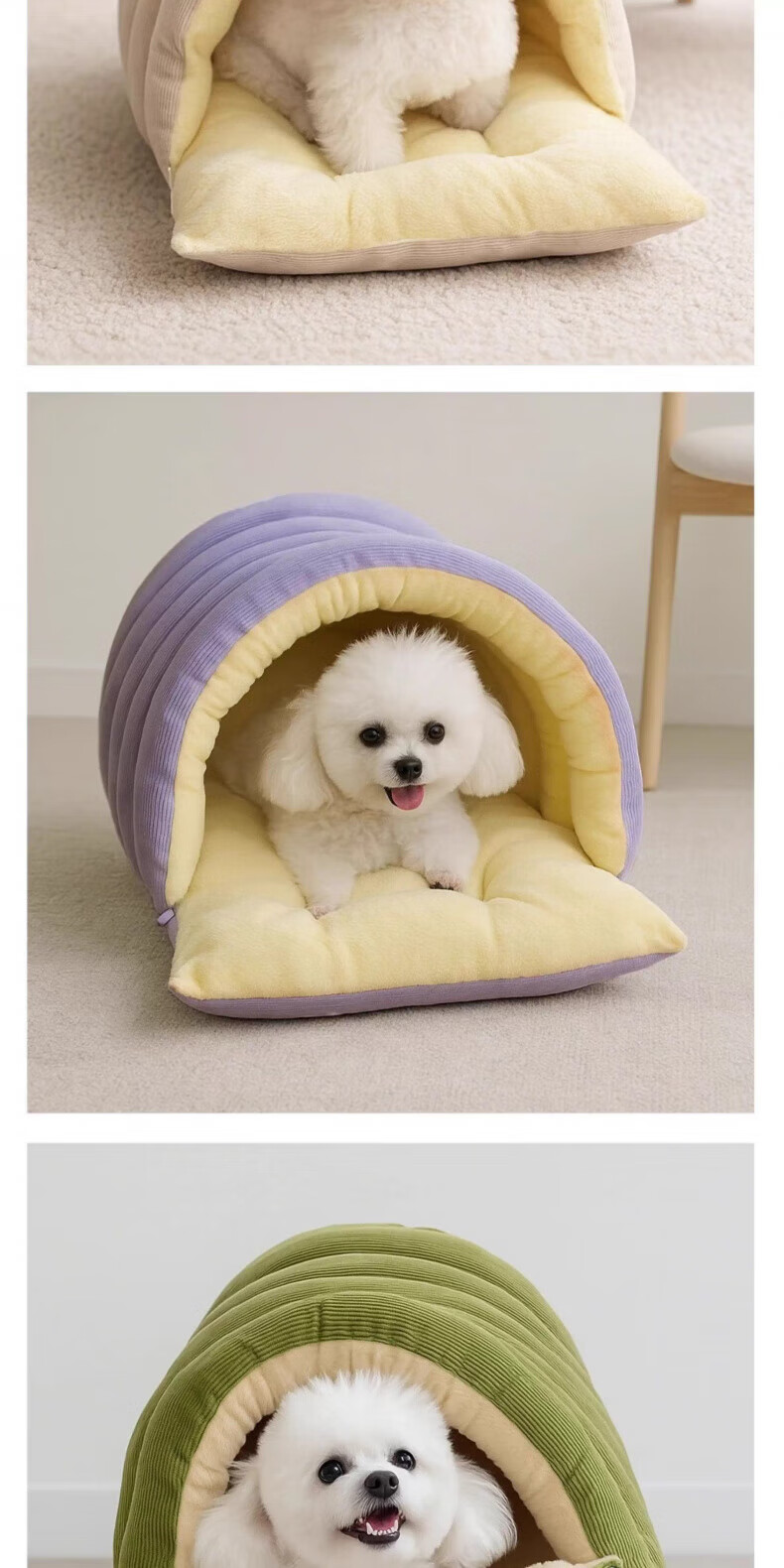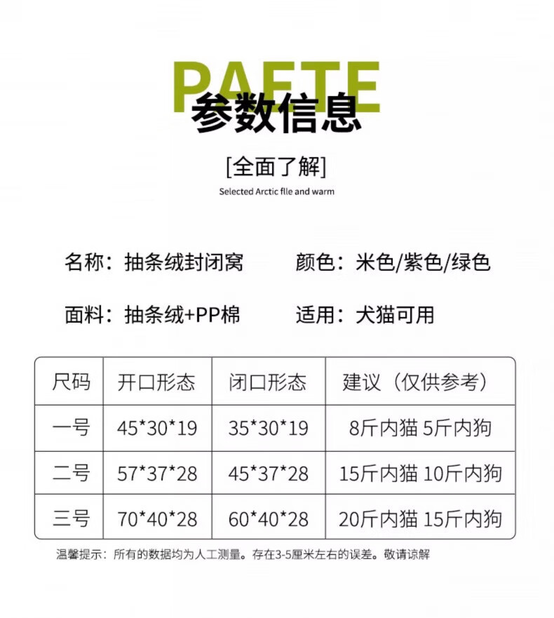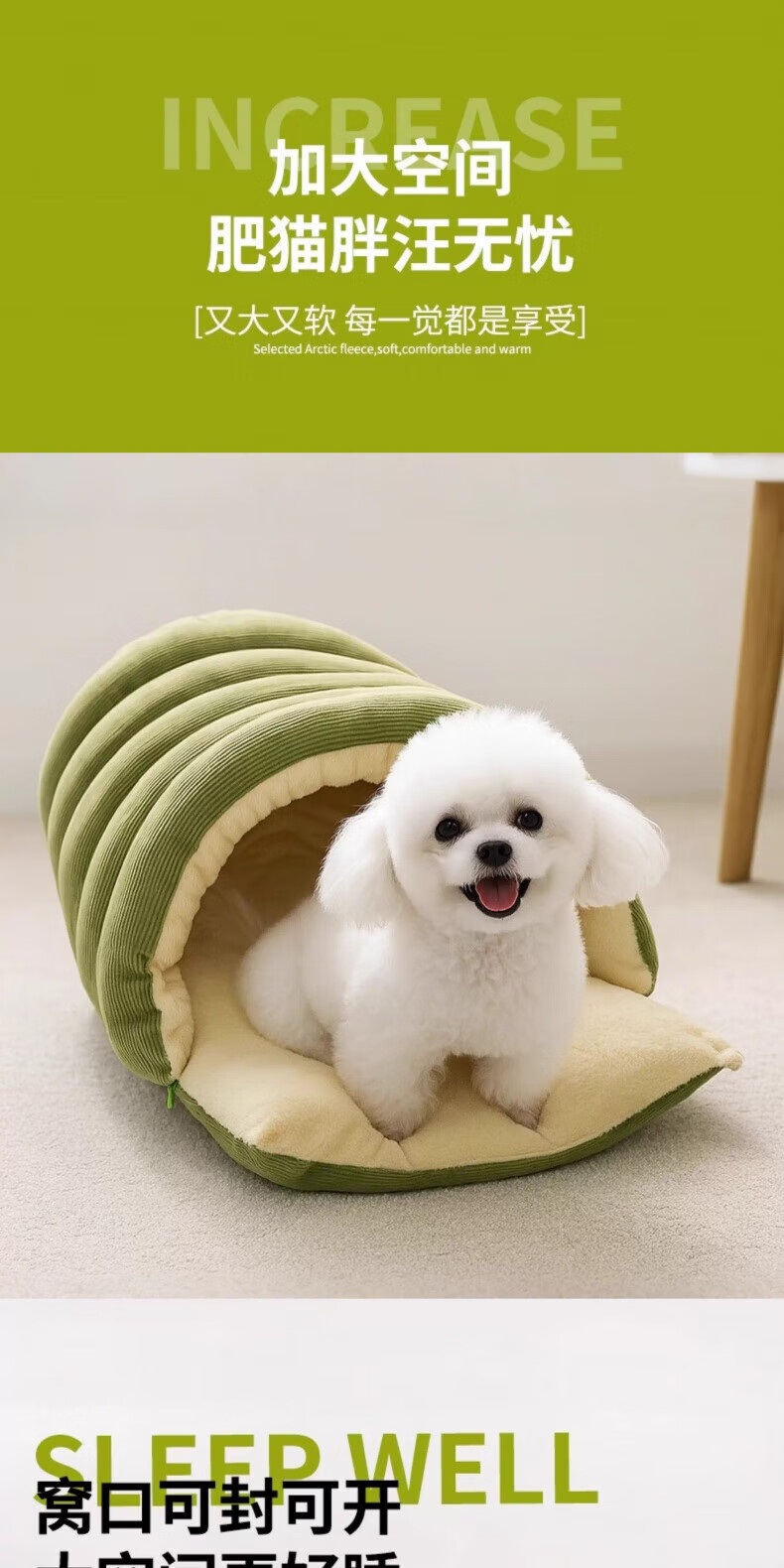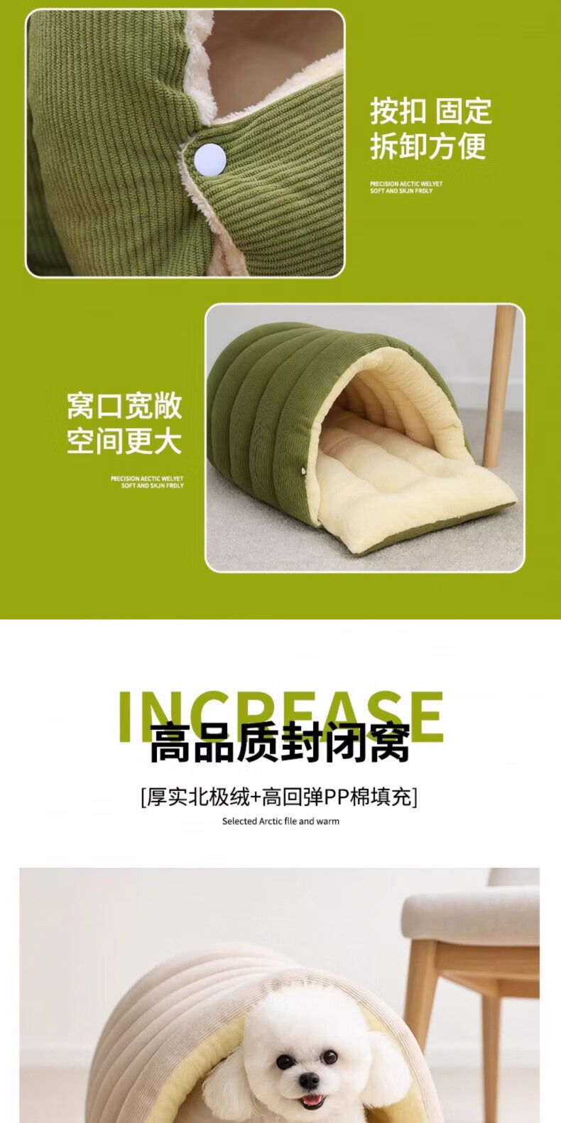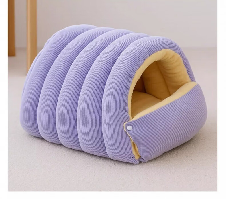 AILUKI日本高端猫窝冬季加厚保暖可拆洗封闭式猫屋宠物安全感睡袋猫狗 浅米色【抽条绒封闭窝】中号(45*30*19cm)