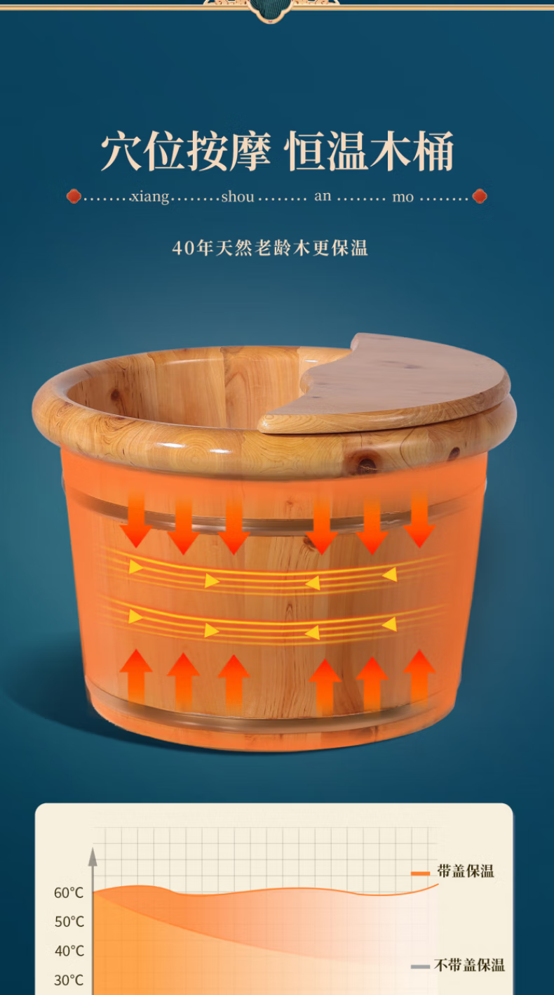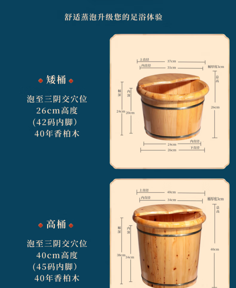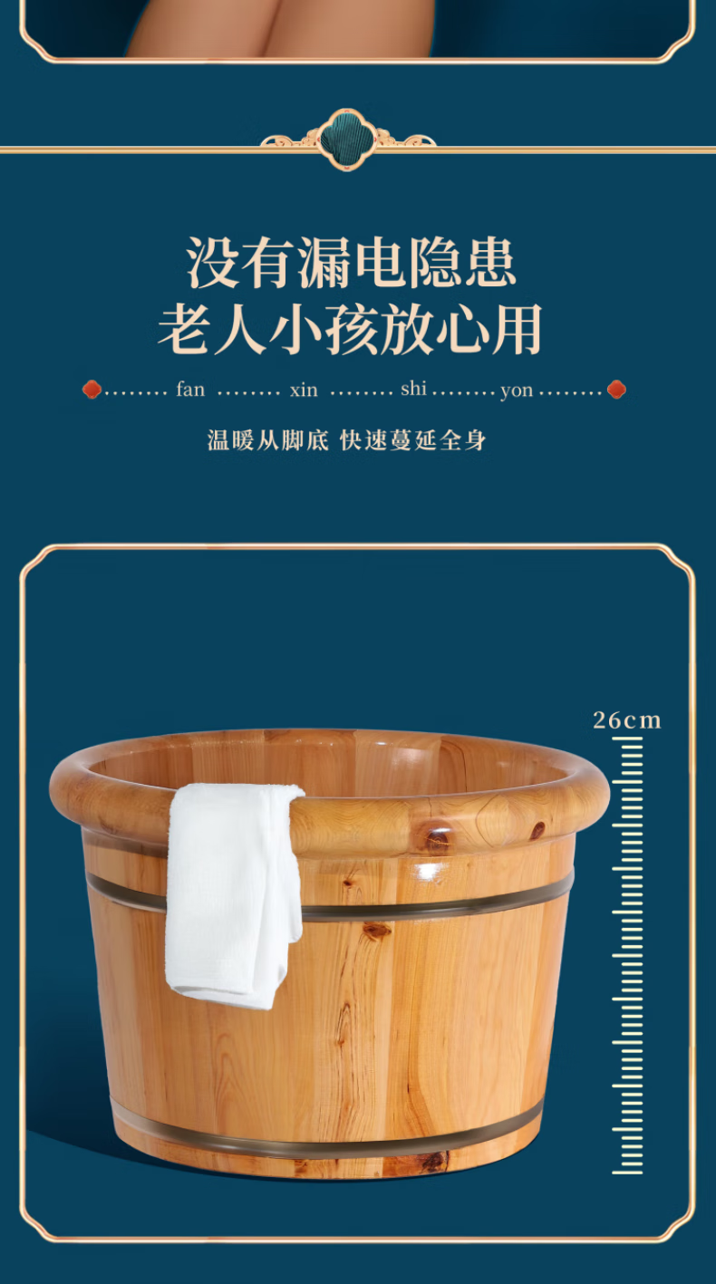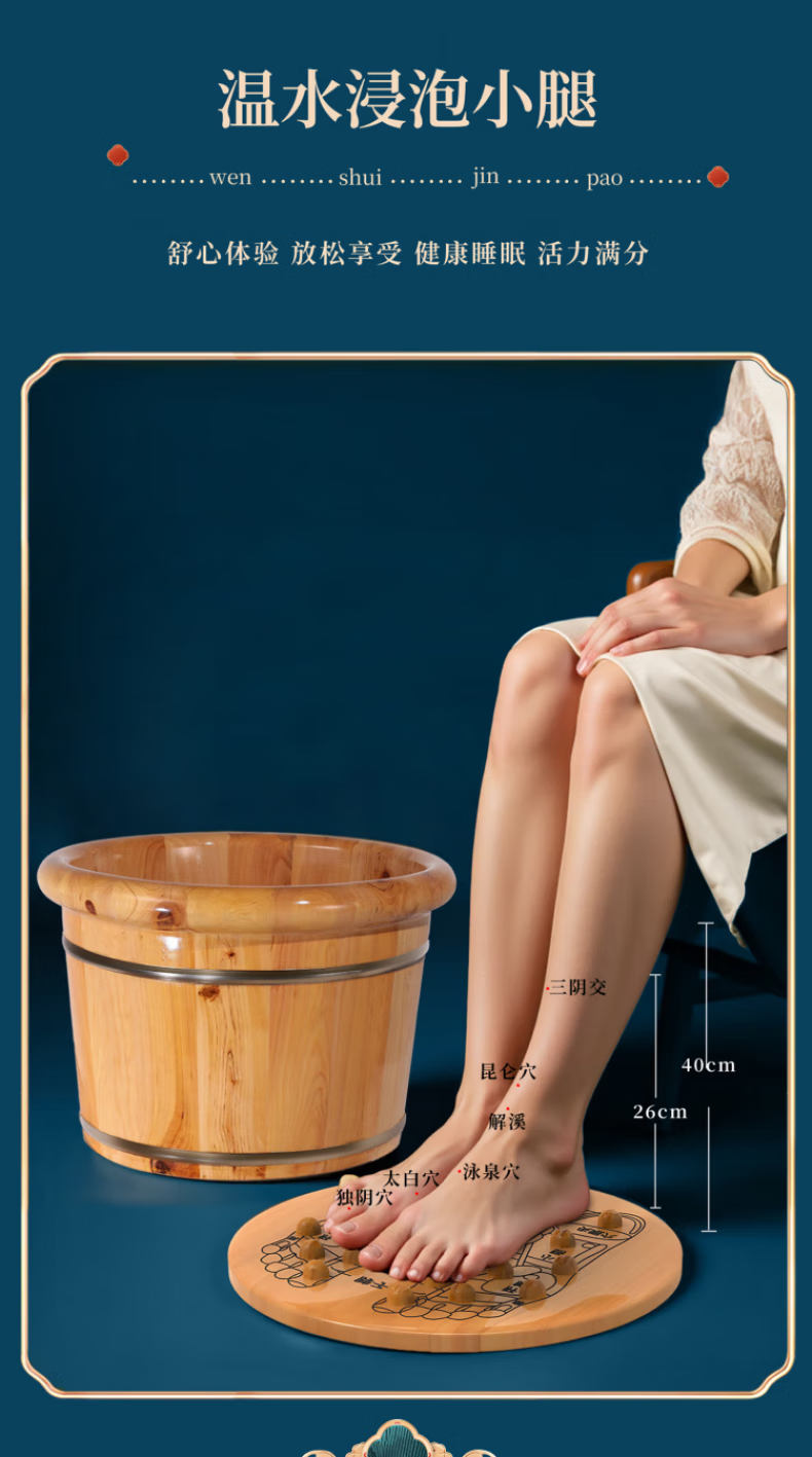 DEATKN德国高端中医养生泡脚桶家用木桶香柏木按摩足浴桶过小腿保温 26cm无盖+穴位按摩(42码内脚)